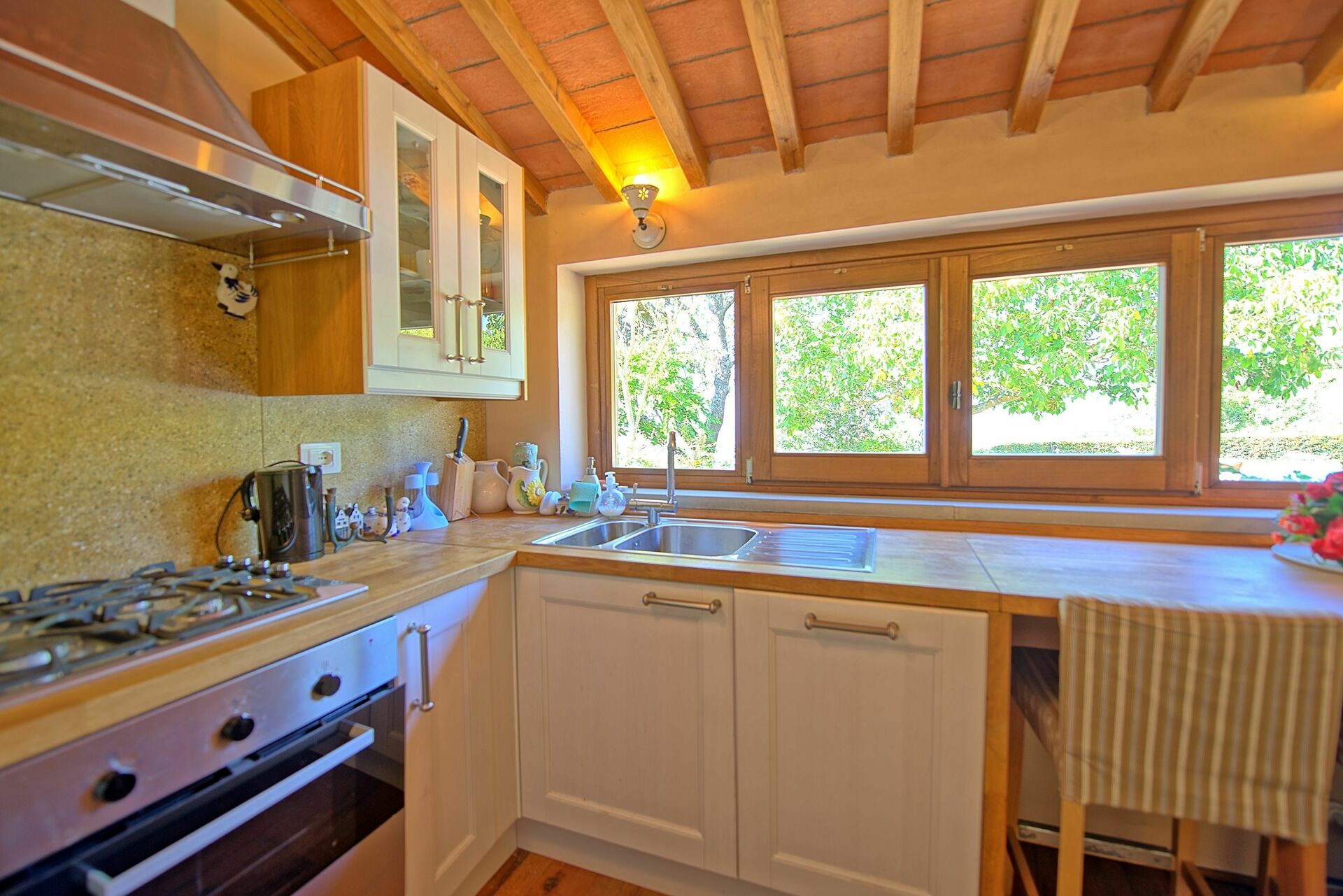 Afstanden: Antria met winkels op 2 km. Arezzo met allerlei winkels en een treinstation op 12 km, de charmante stad Cortona ligt op 40 km, Florence op 70 km, Rome op 150 km.