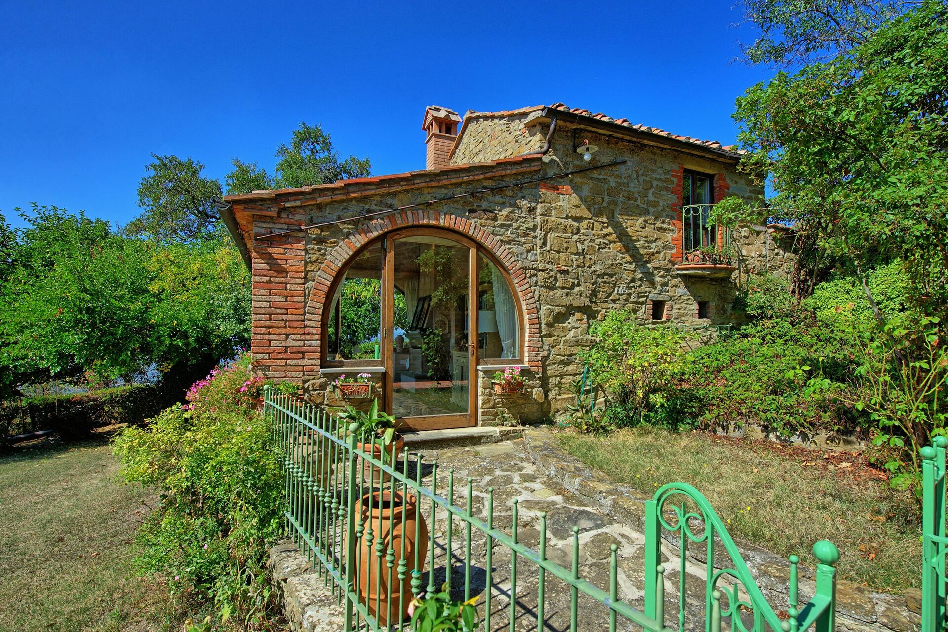 Mooi klein vrijstaand huis liggend in een rustige en panoramische positie in de heuvels rond de stad Arezzo. Het huis is recent gerestaureerd( Maart 2012) en heeft een uitnodigende en romantische sfeer en is comfortabel gemeubileerd. De eigenaar woont in de villa naast het kleine huis op circa 10 meter afstand. Buiten kunnen de gasten relaxen in de goed onderhouden tuin met een mooi zwembad en een tennisbaan.