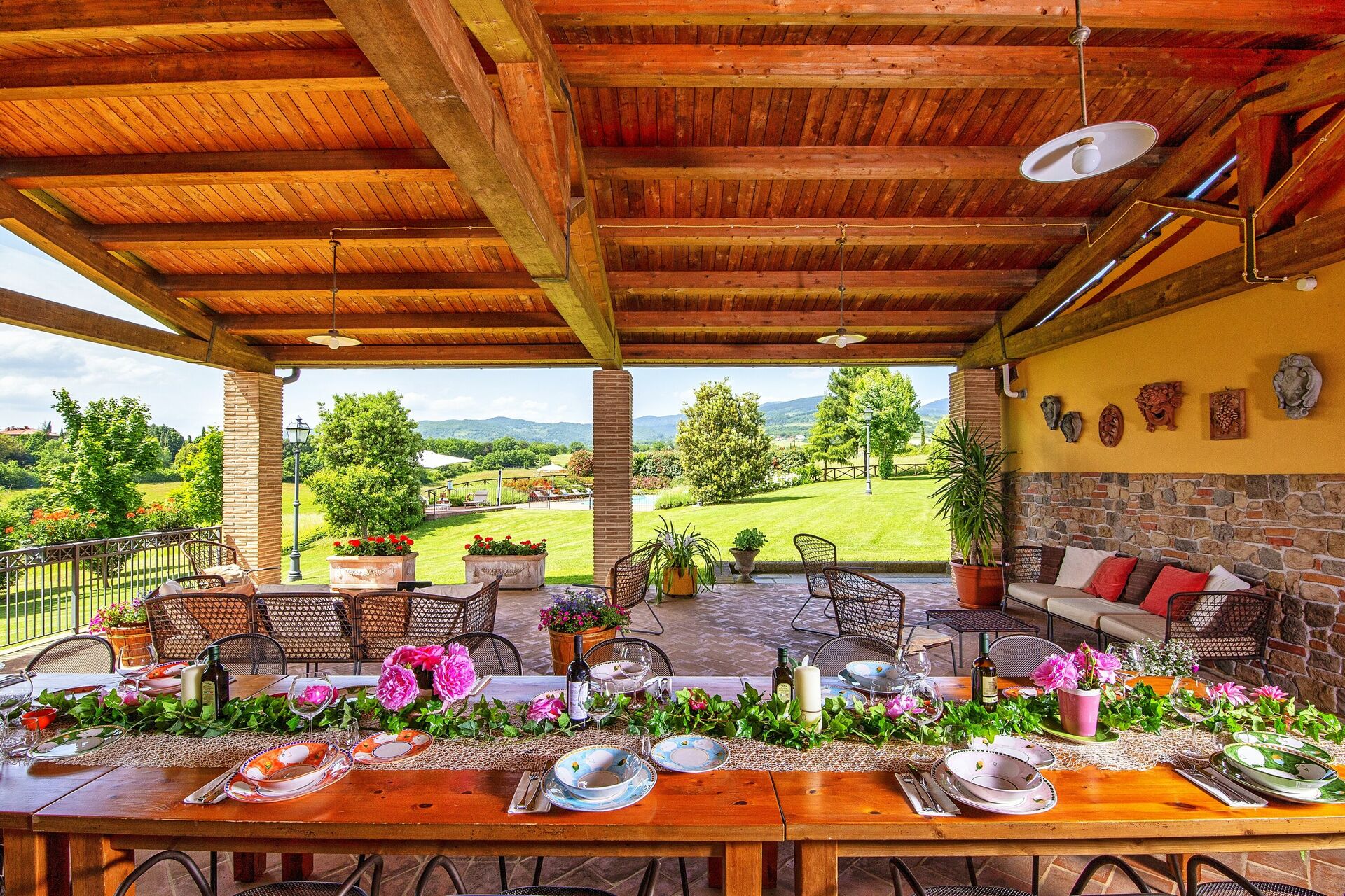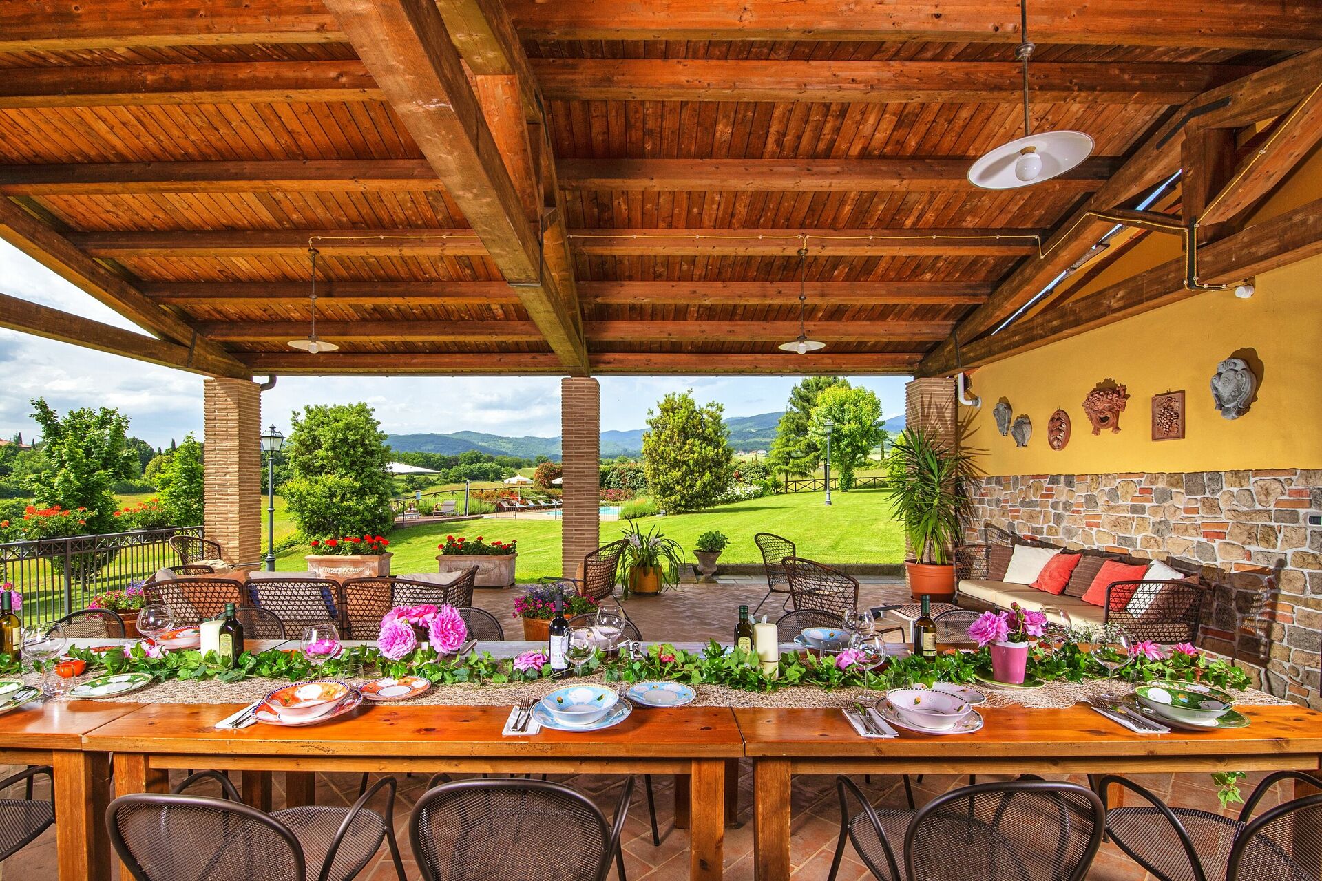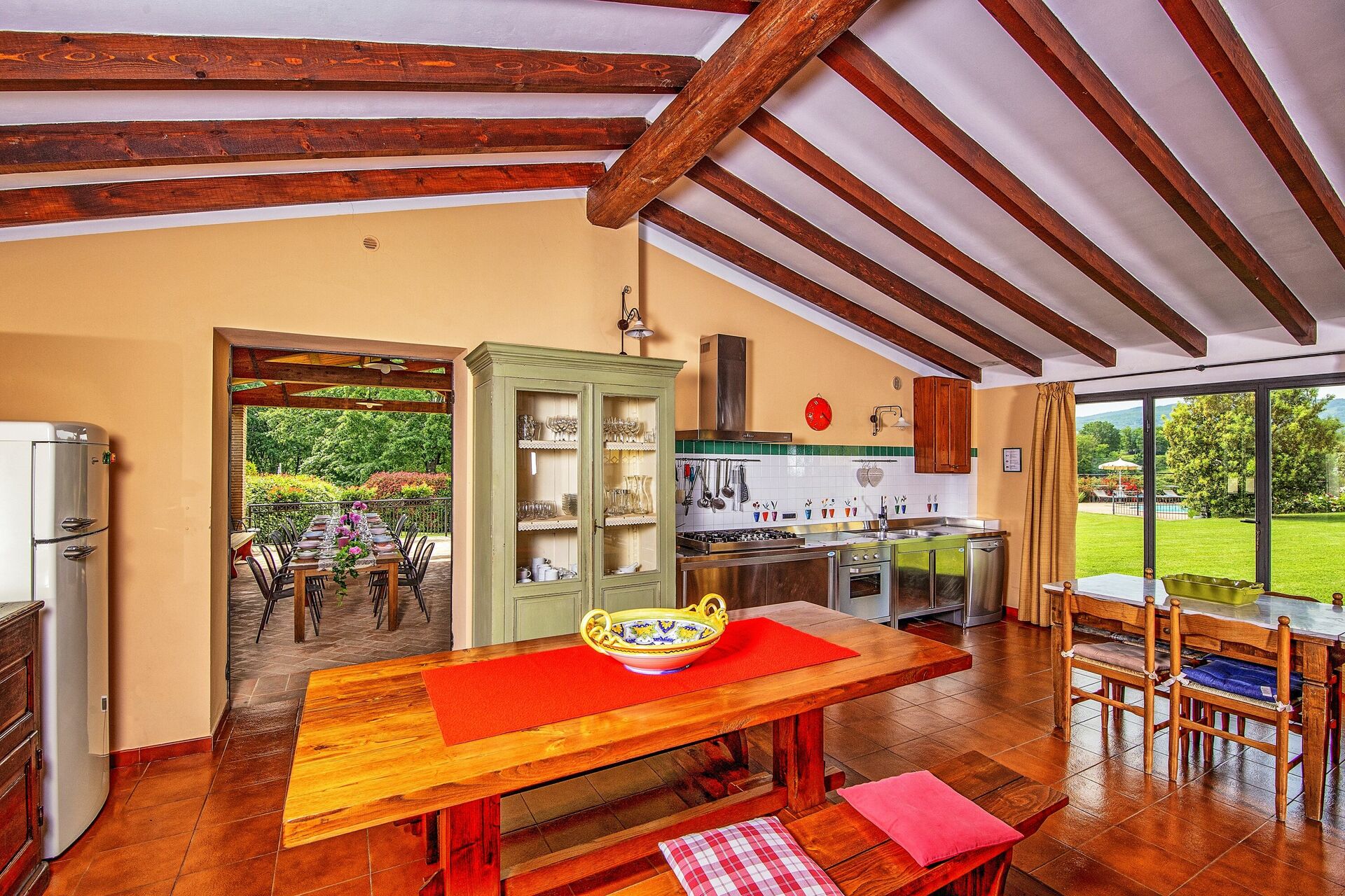 Perfectie locatie in alle opzichten. Uitgestrekt landgoed tot onze beschikking, waar iedereen kon doen wat hij wilde. Eigen zwembad, eigen bos om in te wandelen, eigen tennisbaan. Grote houtoven om zelf pizza's te maken. De tafels zijn voorzien van marmer platen zodat je zelf je pizza's kunt uitrollen. Uitermate ruim opgezette ruimte waar grote groep mensen samen vakantie kunnen houden. Winkels niet verder van het complex.