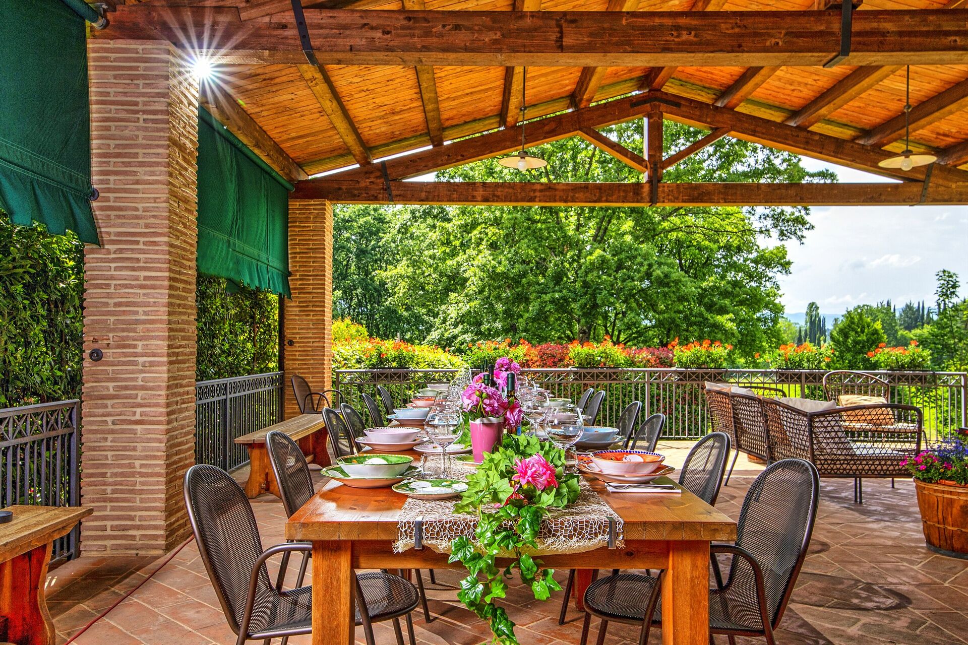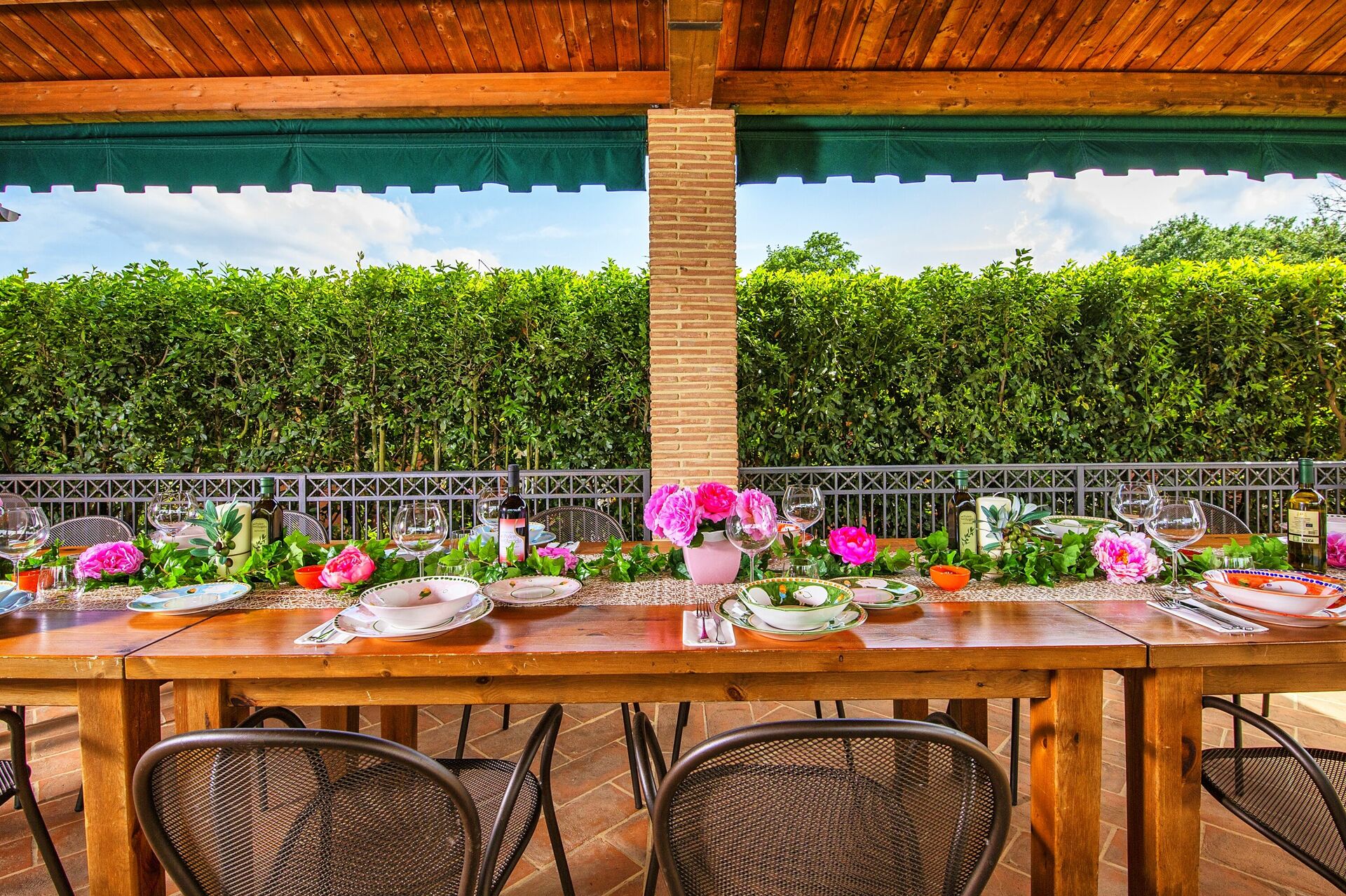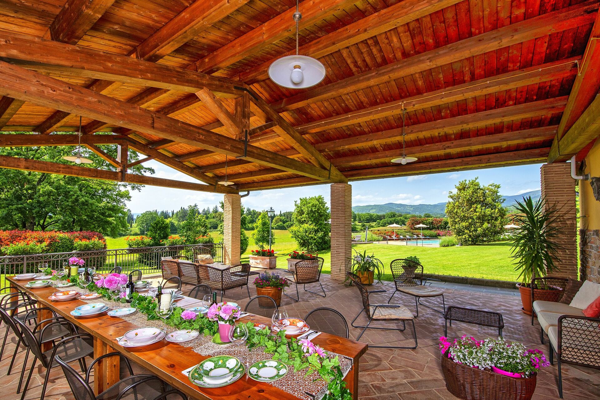 Perfectie locatie in alle opzichten. Uitgestrekt landgoed tot onze beschikking, waar iedereen kon doen wat hij wilde. Eigen zwembad, eigen bos om in te wandelen, eigen tennisbaan. Grote houtoven om zelf pizza's te maken. De tafels zijn voorzien van marmer platen zodat je zelf je pizza's kunt uitrollen. Uitermate ruim opgezette ruimte waar grote groep mensen samen vakantie kunnen houden. Winkels niet verder van het complex.