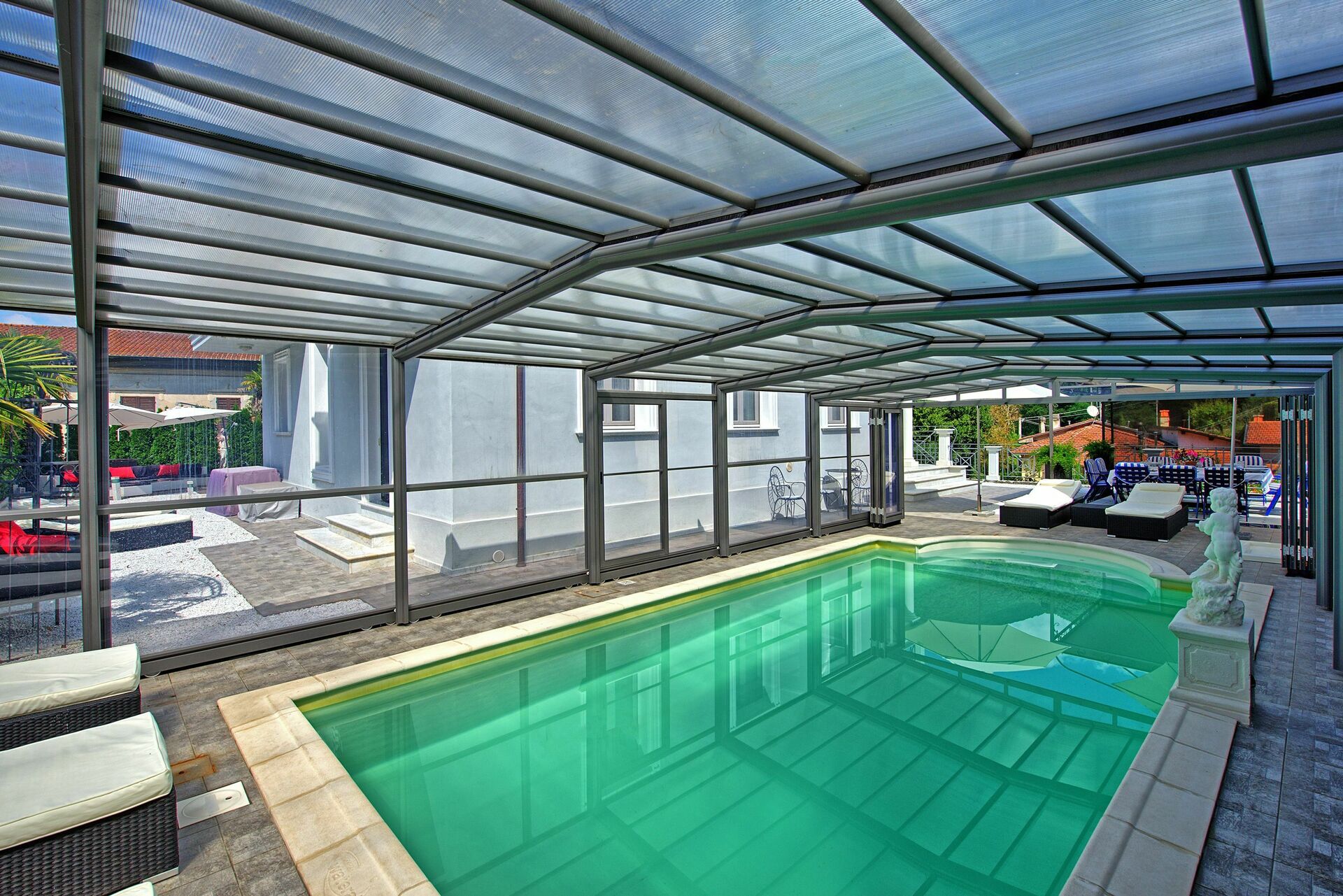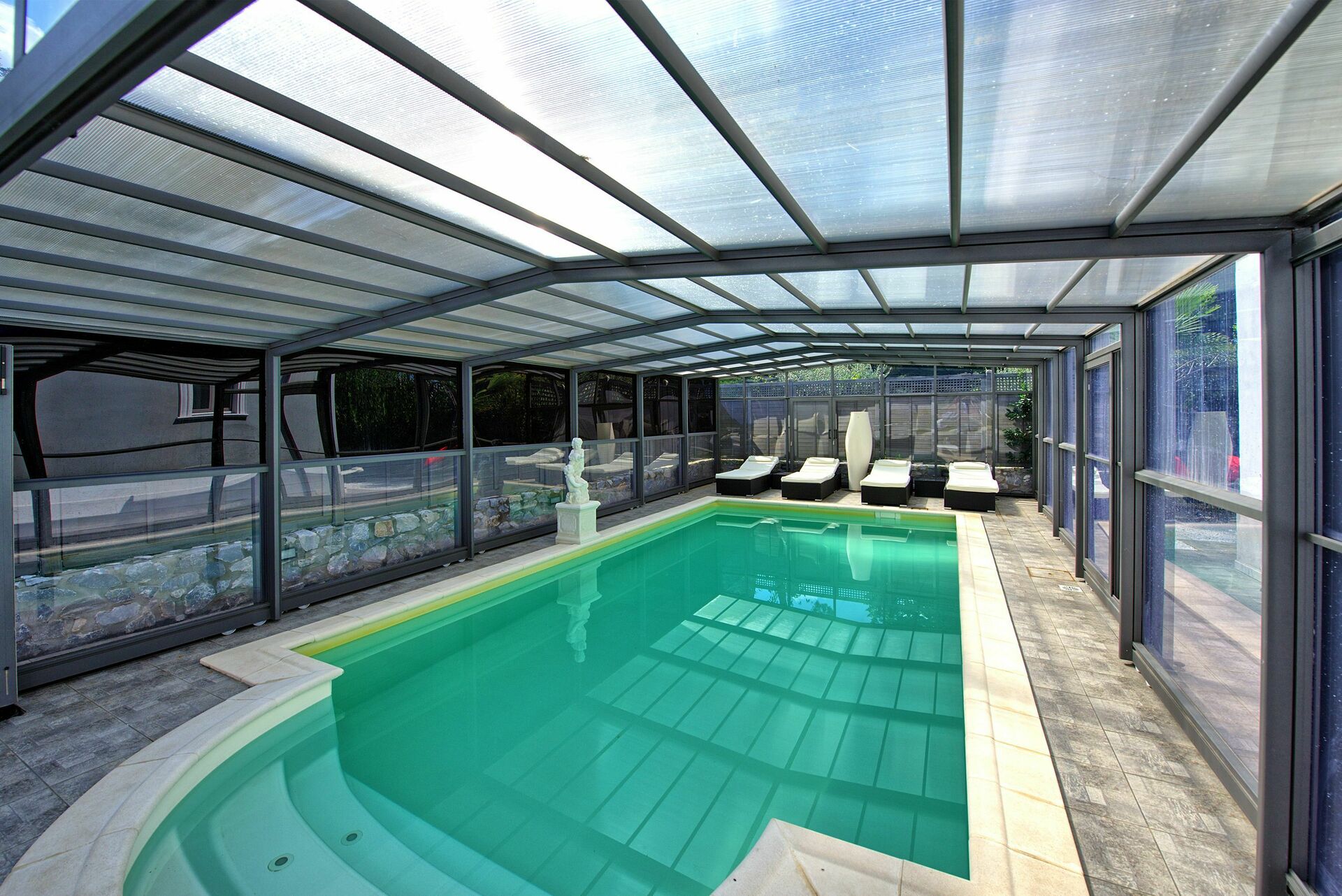 Het zwembad is voorzien van een automatisch te sluiten overkapping, die het zwemmen in de koelere periodes mei en september nog aangenaam maakt.
