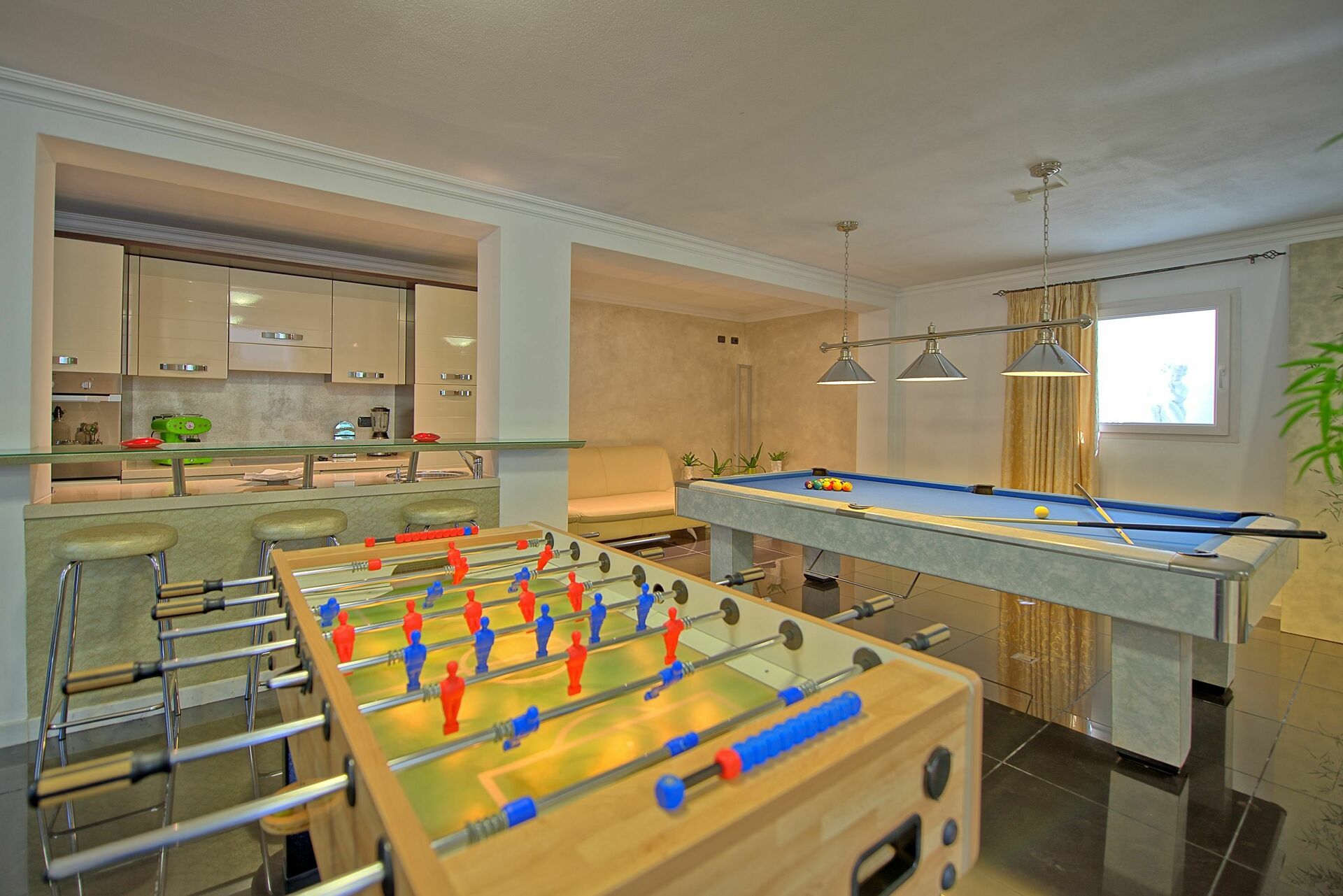 Ein absolutes Highlight ist der Keller mit Billardtisch und Entertainment inkl. Grossbild TV.