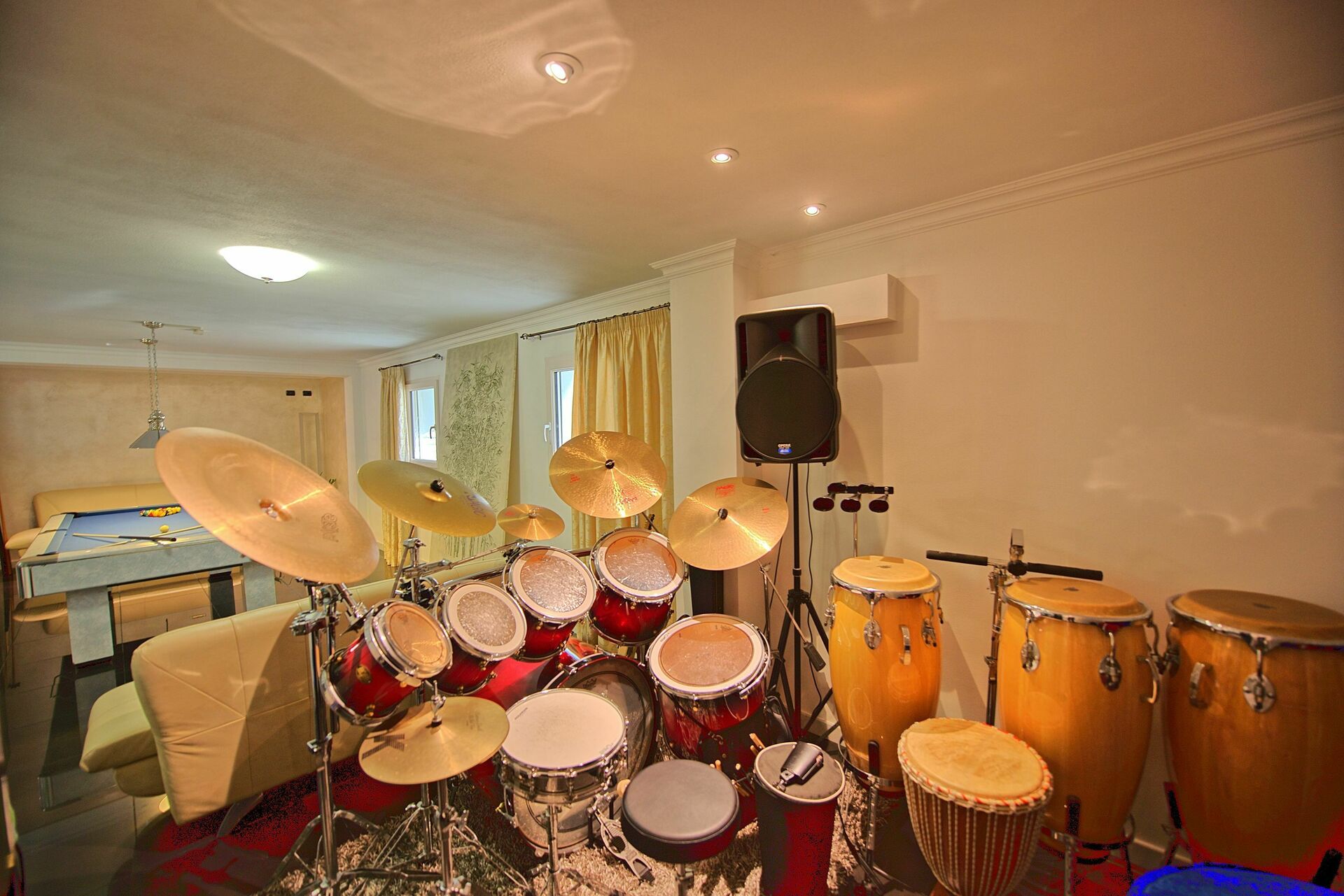 Behalve de aandacht die is betracht bij de inrichting van de villa, is ook zeer veel aandacht geschonken aan het multimediale aspect van de inrichting: via Bluetooth kan men met de smartphone, of met zijn tablet zijn eigen muziek in het hele huis afspelen en daarvan genieten. Op een mooi groot beeldscherm en een goed stereosysteem, kan men films bekijken zoals in de bioscoop en in een oefenruimte kan men op professioneel slagwerk spelen, een keyboard, microfoons en er is een karaoke installatie aanwezig. In een speelzaal is er een biljart en een tafelvoetbalspel.