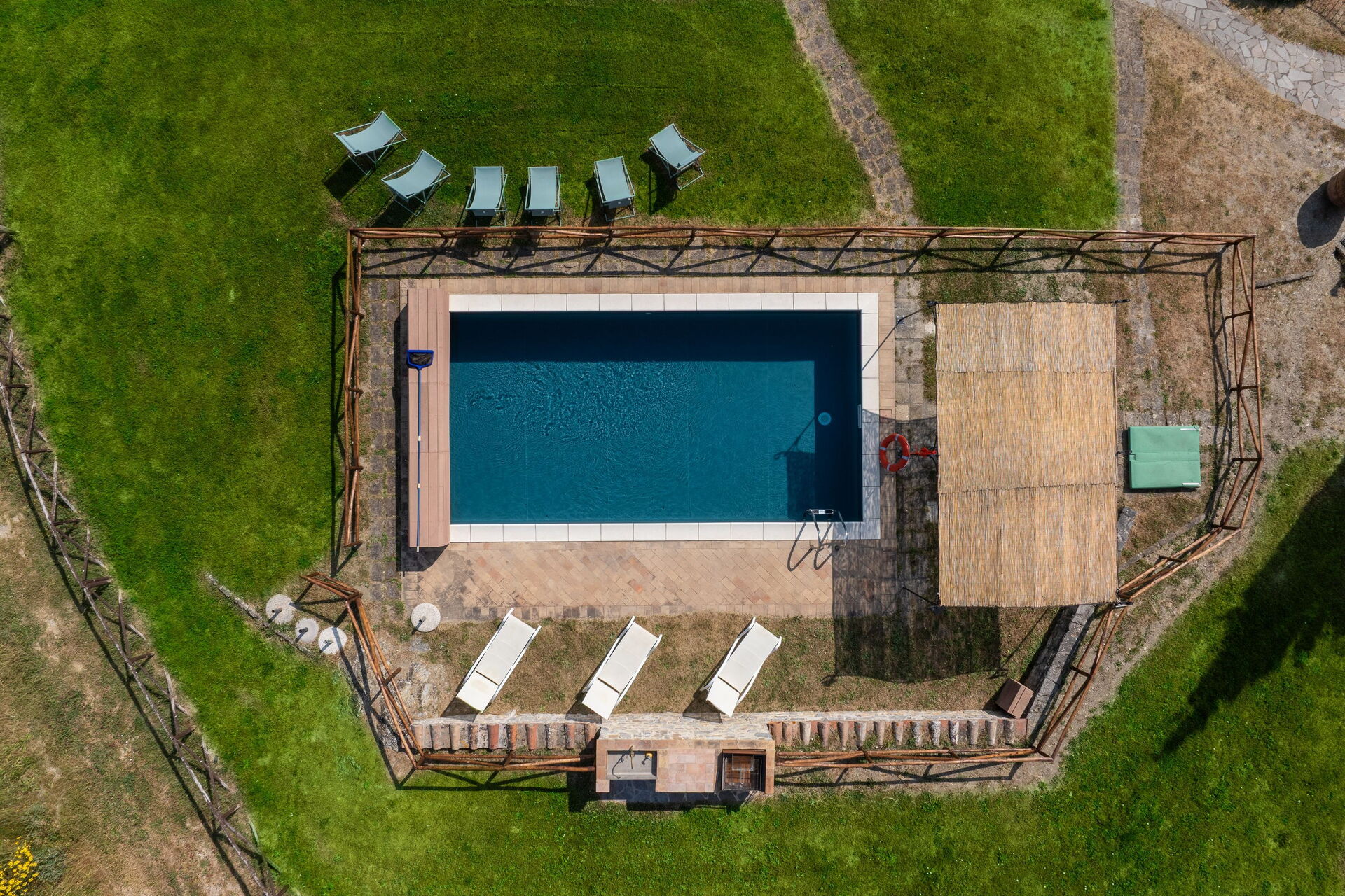 Magnifique maison perdue au milieu de la campagne toscane. Lieu d'une grande tranquillité où l'on croise des biches, des faons, des lièvres, des faisans,... La piscine était belle, peut-être un peu froide. Nous avons passé une semaine qui restera longtemps dans nos mémoires.