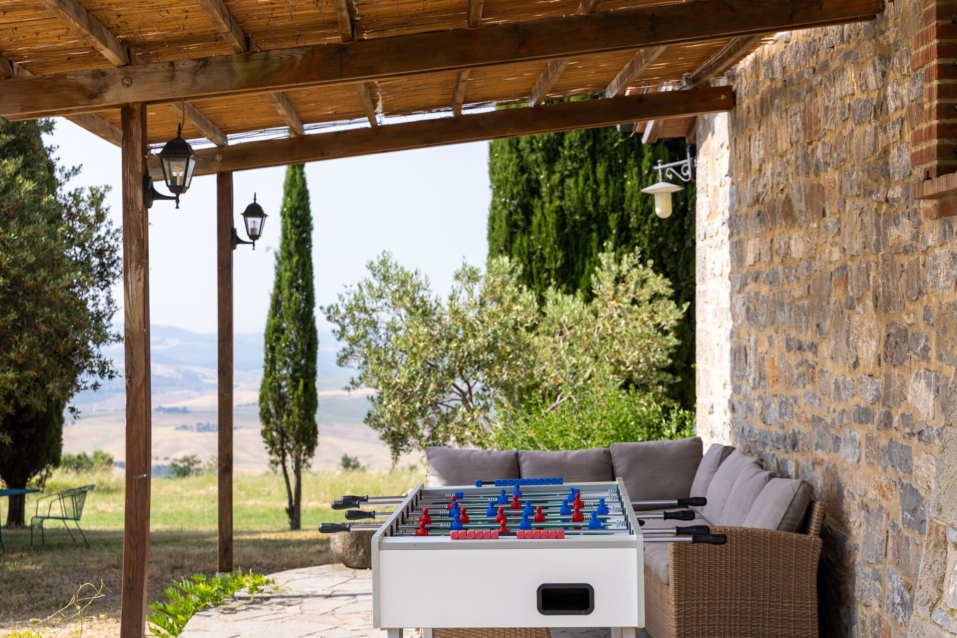 This house is perfect for a large group of people looking forward to sunbathing or chatting while enjoying a glass of wine at sunset. The owner was very accommodating and promptly solved any issues that came up during our stay. The house is off road and finding grocery stores is a challenge. Recommended for an off-grid experience. Lovely to watch deers and foxes running through the fields in front of the house. Stunning view. Not the cheapest option but for many reasons! Looking forward to coming back next year! And also thanks to the Posarelli team for your support throughout the booking process! Riccardo