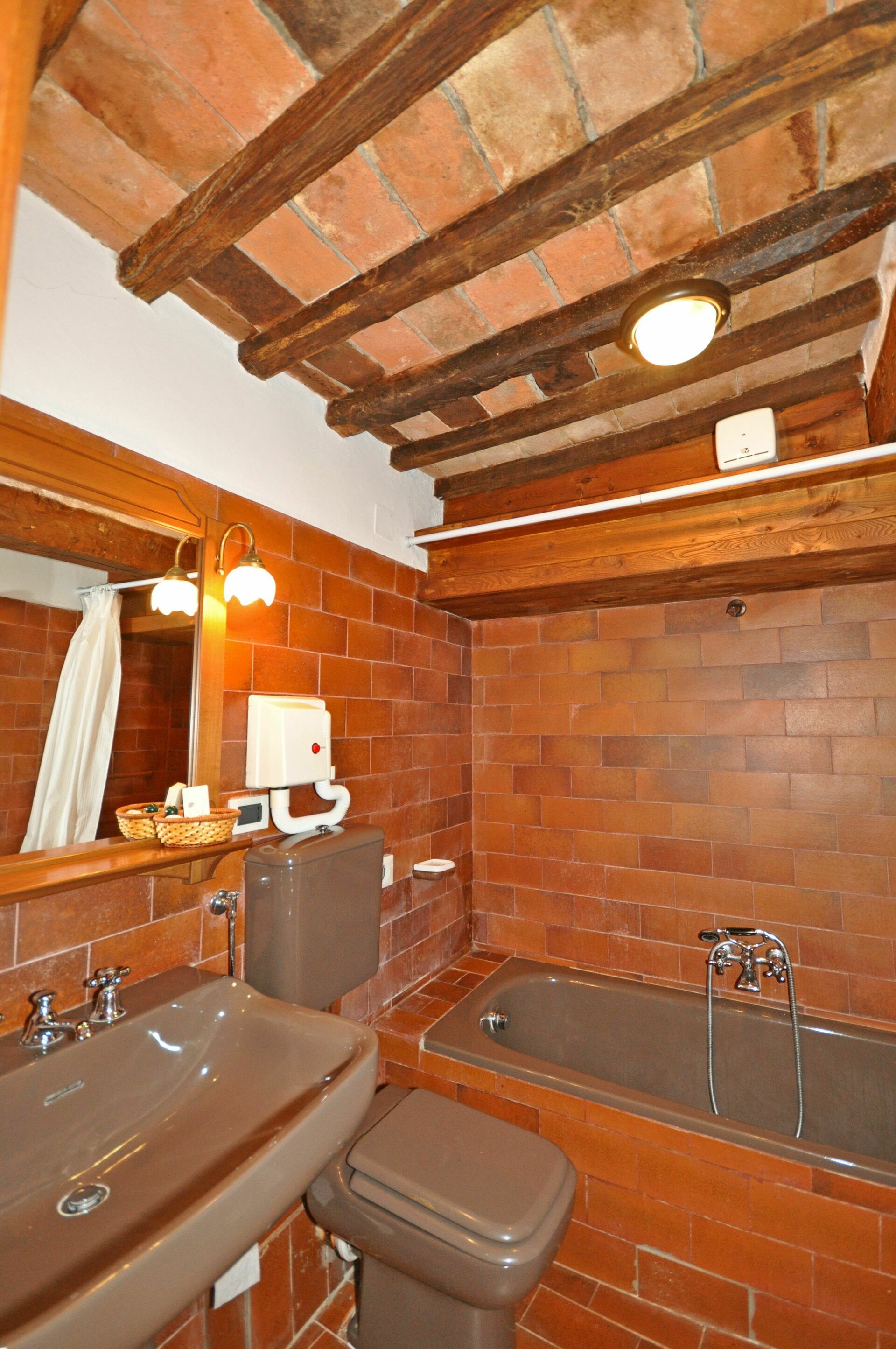 1° verdieping: eetkeuken (oven, 2 elektrische kookplaten), badkamer met bad (haardroger).