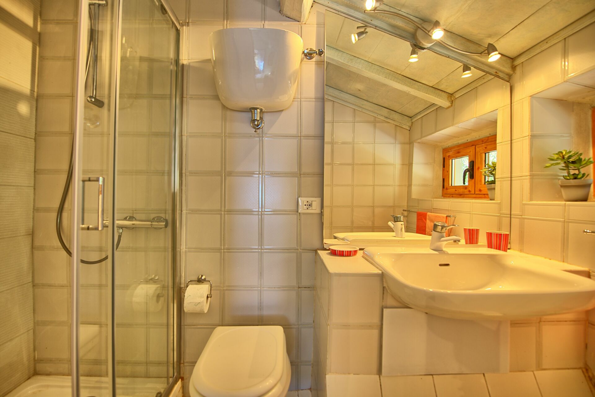 Eerste verdieping: een kleine woonkamer met slaapbank voor twee personen, slaapkamer met tweepersoonsbed (airconditioning), badkamer met douche, slaapkamer met 2 eenpersoonsbedden (airconditioning) en een eigen badkamer met douche.