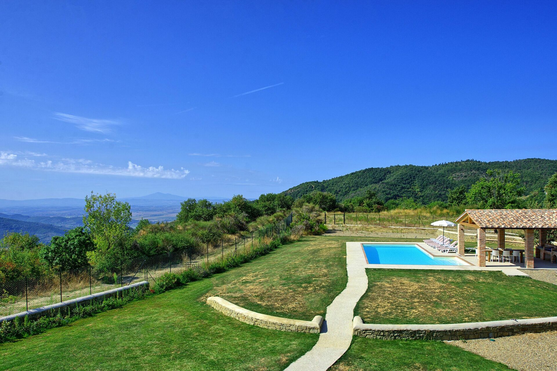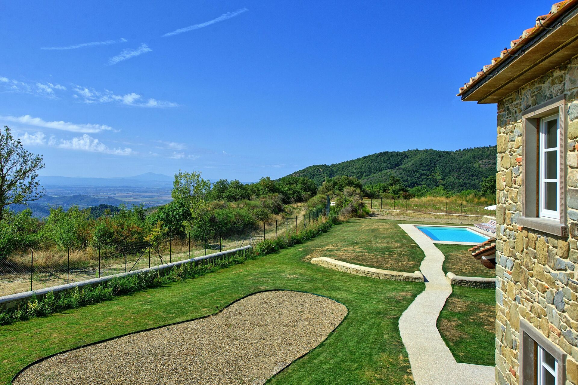 Heel mooie vakantievilla in Toscane met een privé zwembad dichtbij Castiglion Fiorentino, tussen de historische steden Cortona en Arezzo. Het huis is afgebouwd in 2018 en biedt een zeer comfortabele inrichting en mooie buitenruimtes.