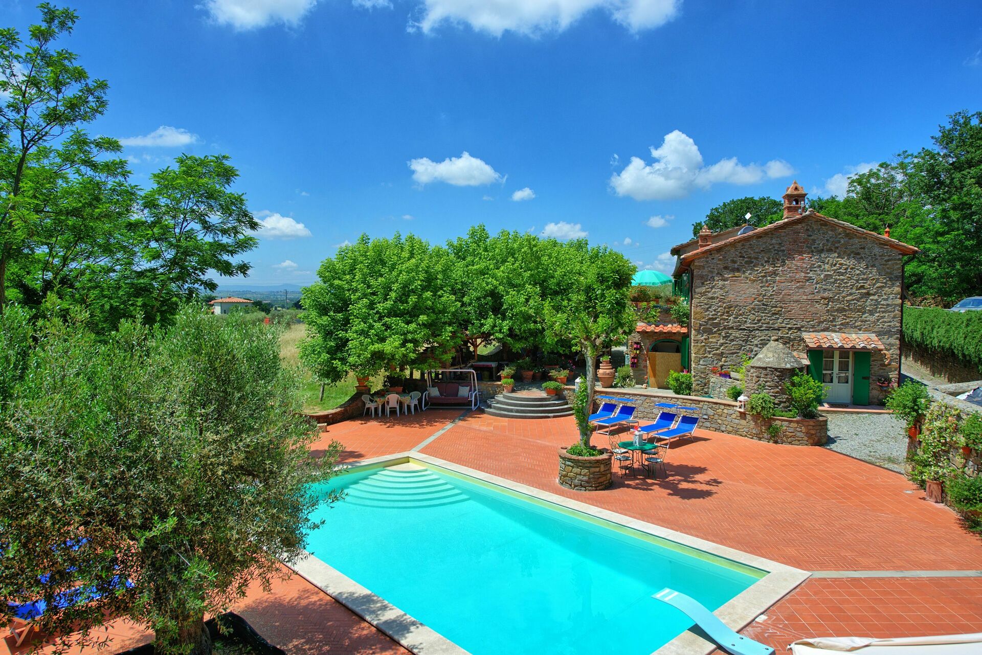 De villa heeft een panoramische en rustige ligging, ondergedompeld in het landschap maar tegelijkertijd dichtbij de mooie stad Cortona en bij alle belangrijke steden van Toscane en Umbrië: Montepulciano, Siena, Florence, Assisi, Perugia, Montalcino en het meer van Trasimeno.