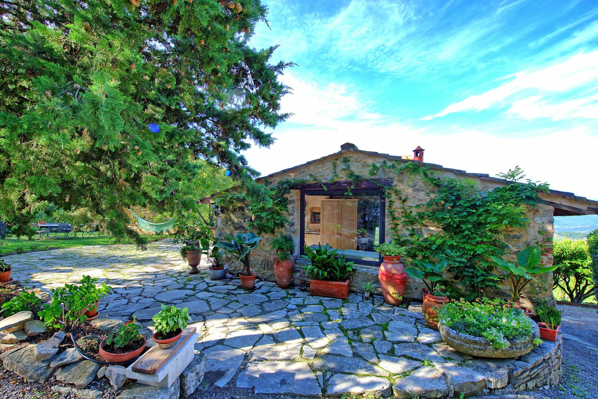 Villa Ancora is een charmante stenen schuur uit de 13e eeuw, gelegen op de hellingen van Monte Morello, met een adembenemend uitzicht over de vallei van Florence, op slechts 10 km afstand. De villa wordt omringd door 82.000 vierkante meter omheind terrein met fruitbomen, aromatische planten, weilanden en weelderige bossen vol eiken, sparren, cipressen en olijfbomen.