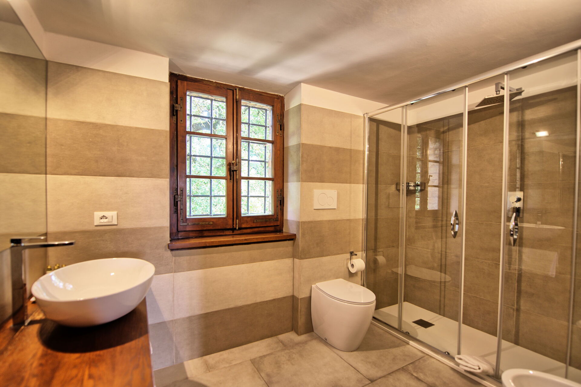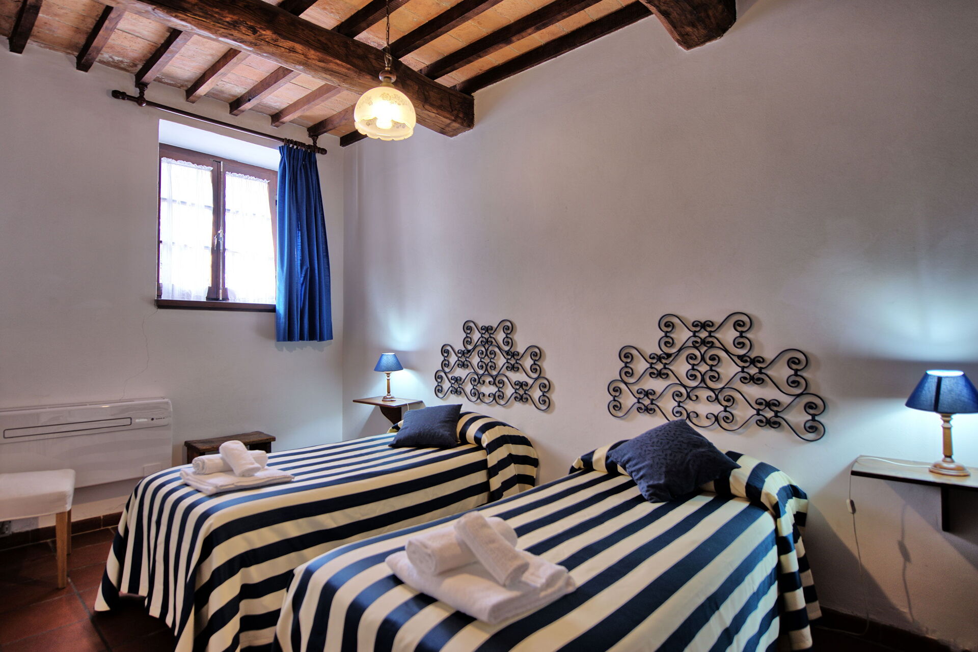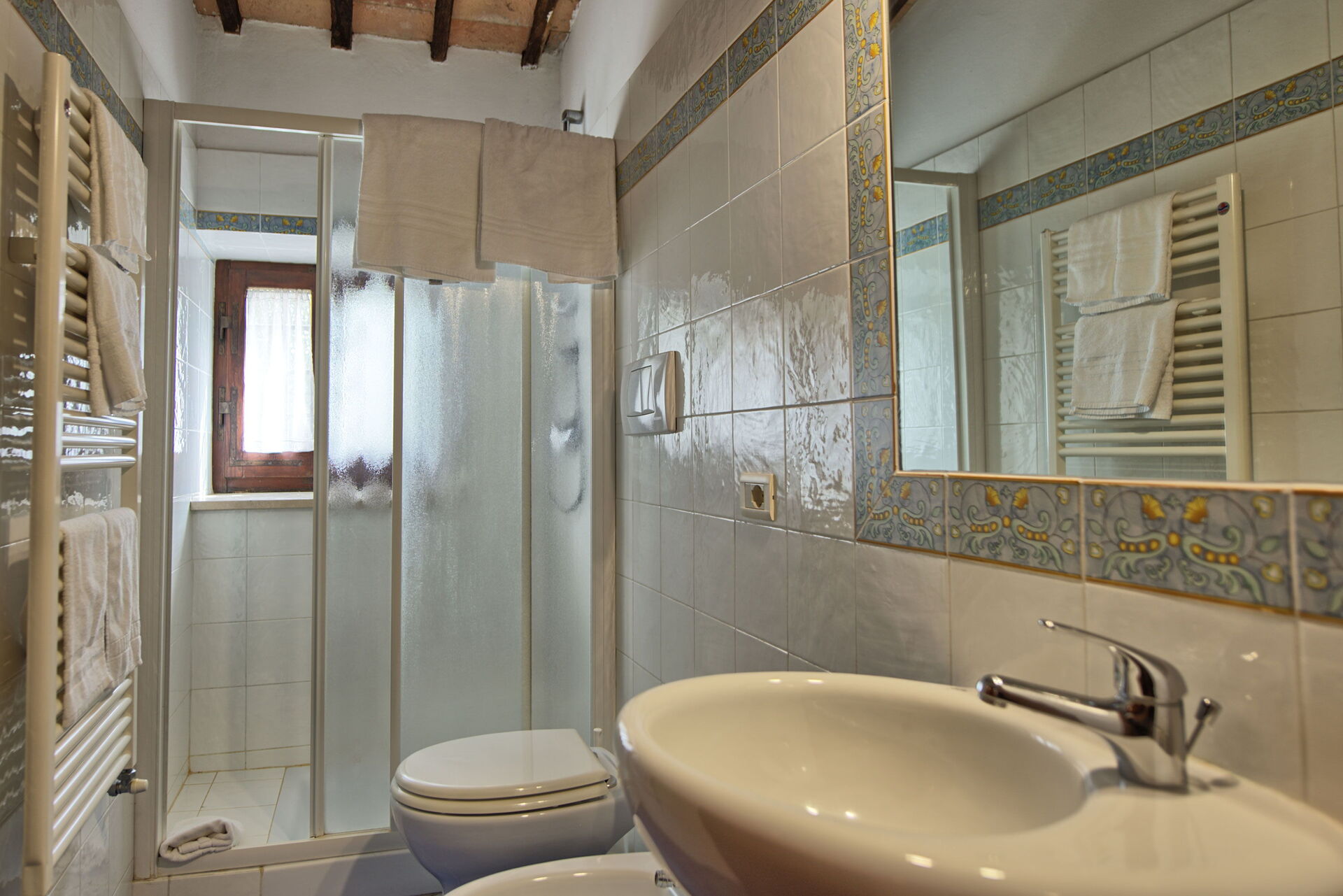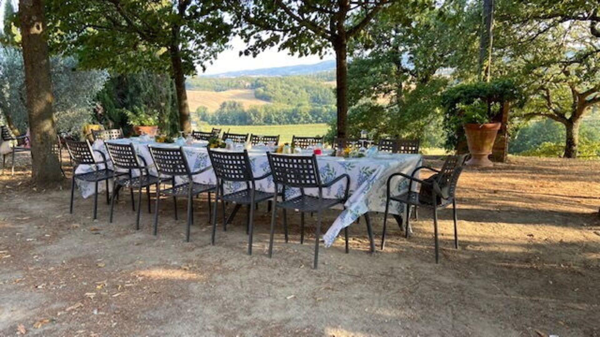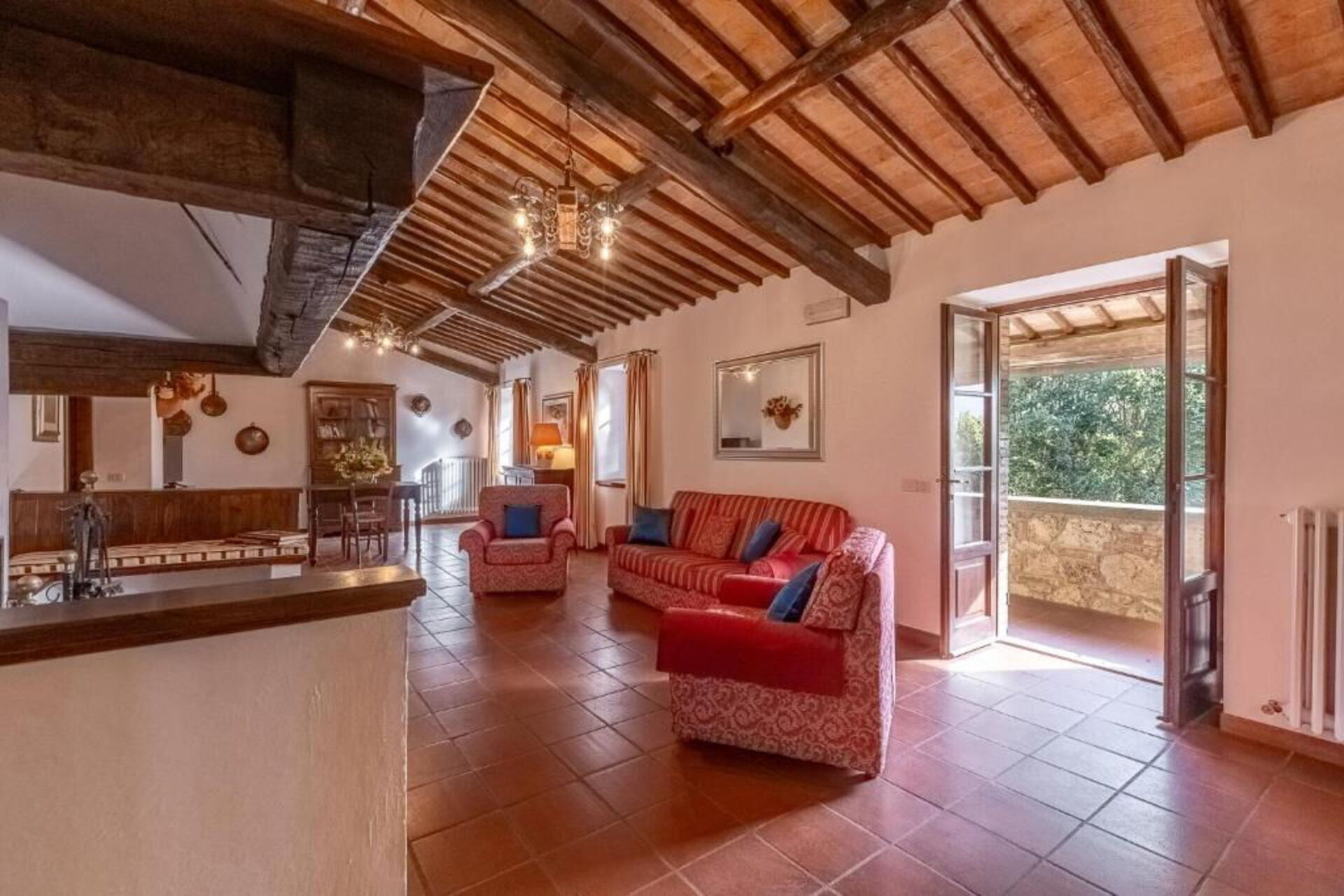Het stenen huis biedt een prachtig 360° uitzicht op het Toscaanse platteland. Het is zorgvuldig gerenoveerd met behoud van originele details zoals grote open haarden, terracotta vloeren en houten balkenplafonds.