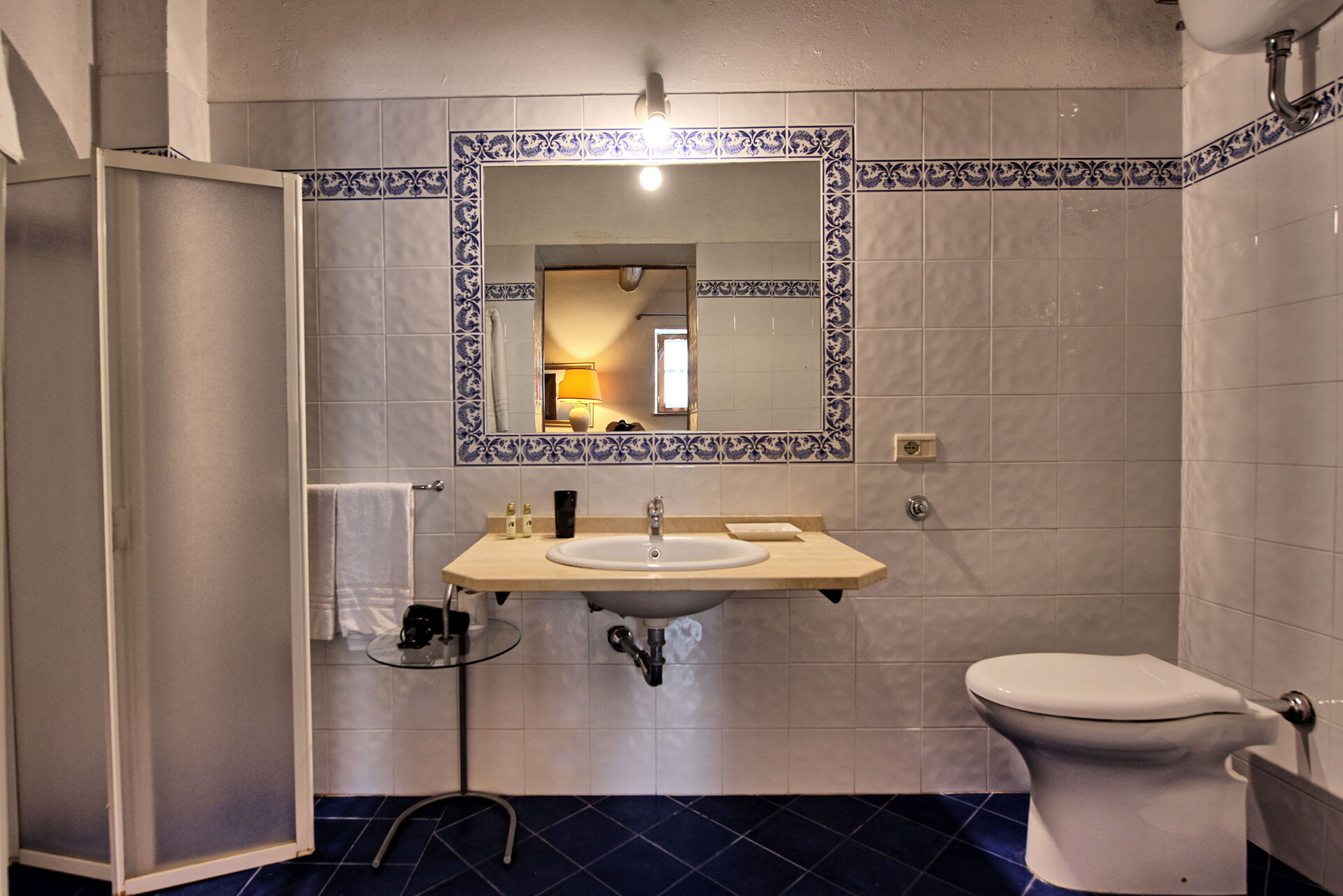 Tweede verdieping (in de toren met panoramisch uitzicht): slaapkamer met tweepersoonsbed met eigen badkamer met douche.