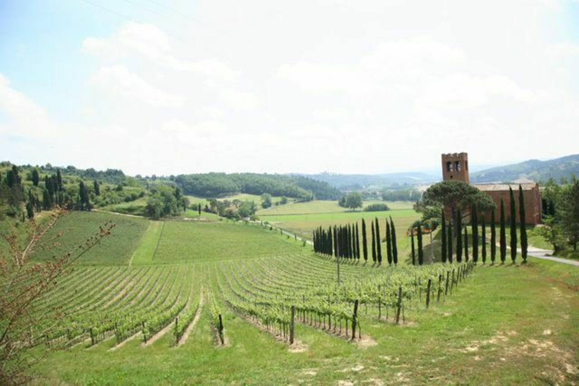 De villa ligt bovenaan een heuvel, omringd door het prachtige Toscaanse landschap met bossen, olijfgaarden en wijngaarden.