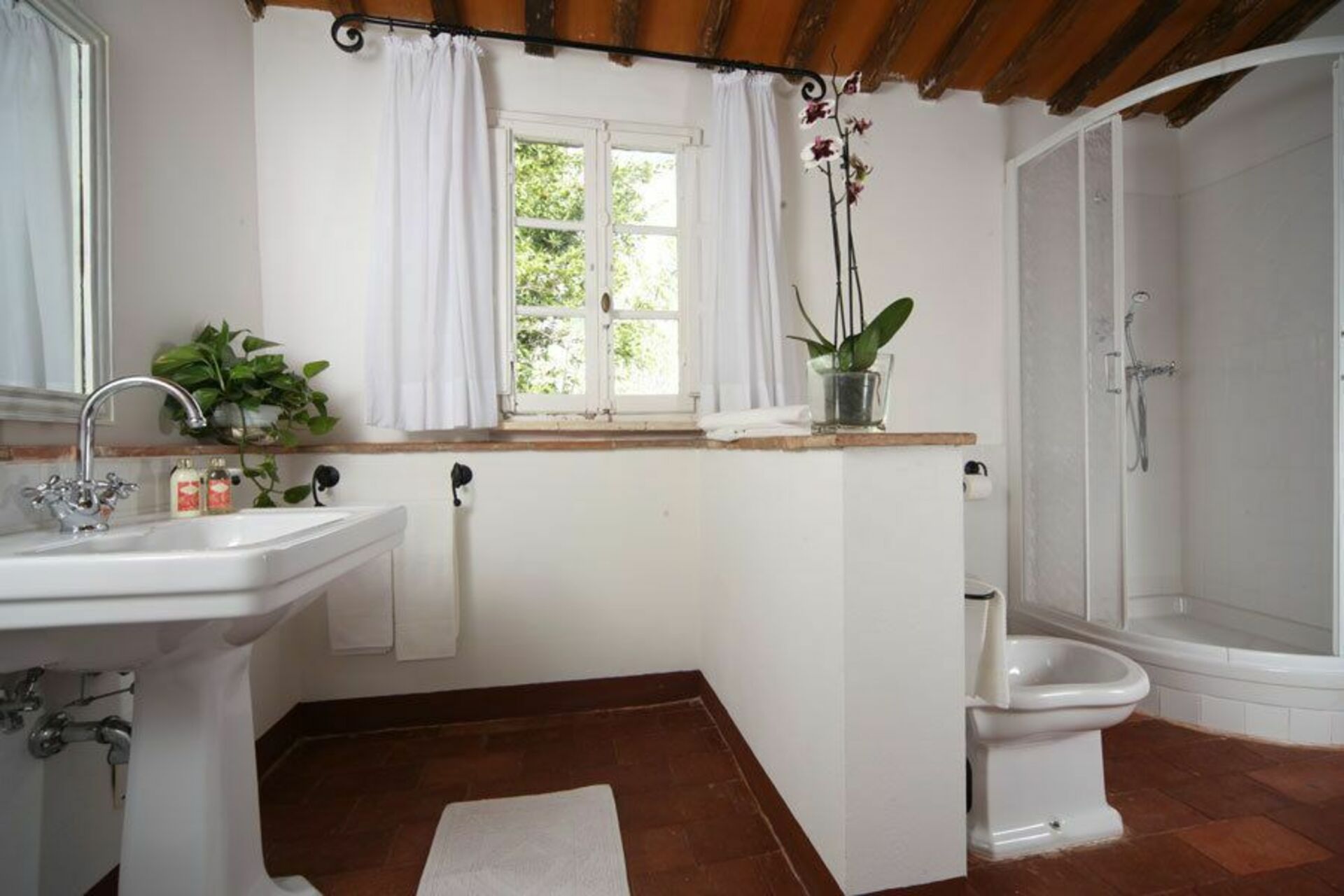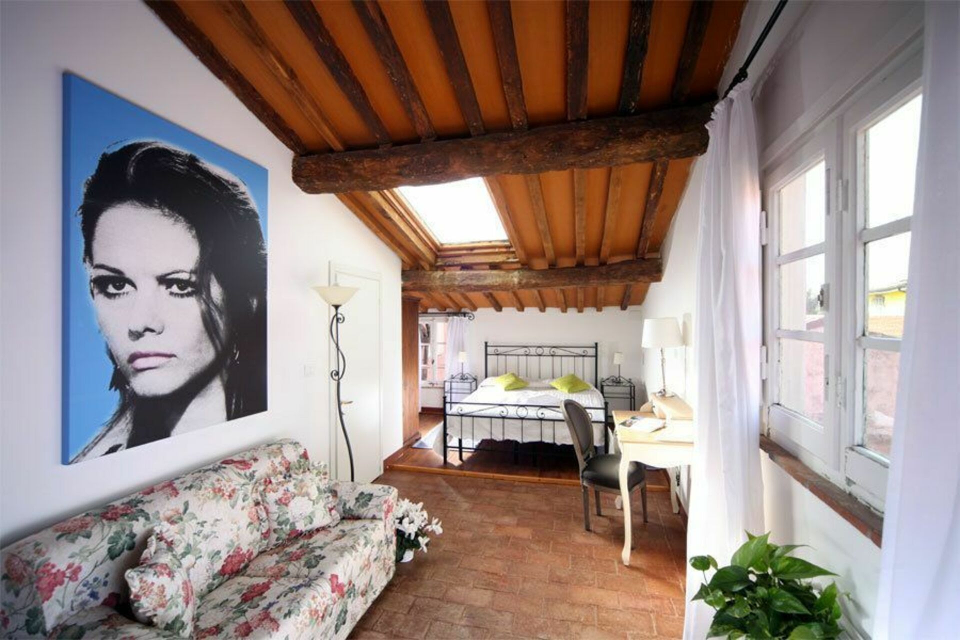 • Suite Claudia, met een tweepersoonsbed en een badkamer met douche.