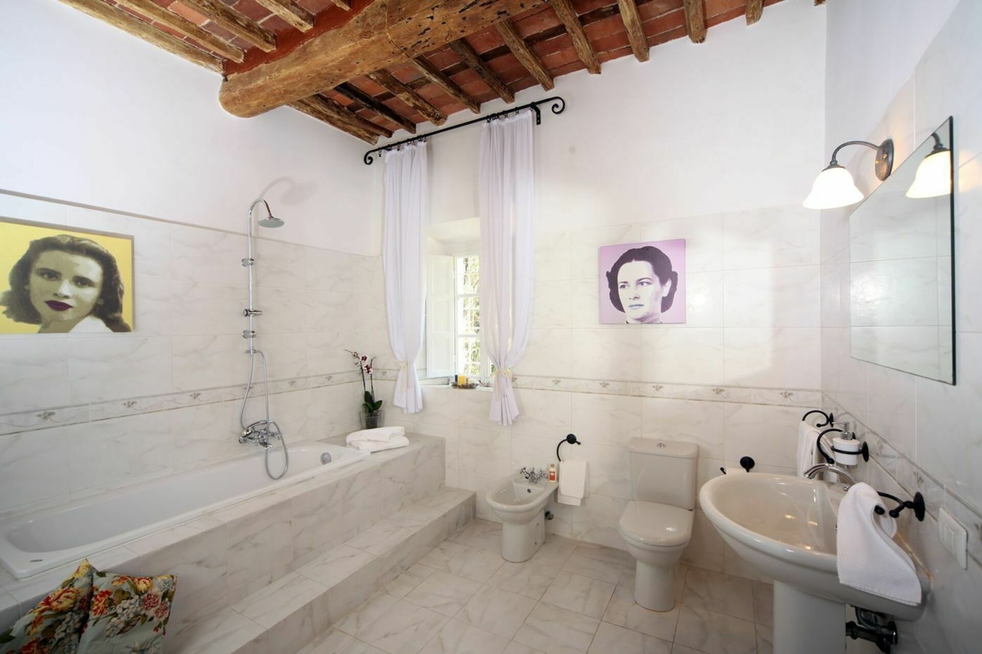 • Anna Suite met een tweepersoonsbed en een eenpersoonsbed, een badkamer met bad en kleedkamer.