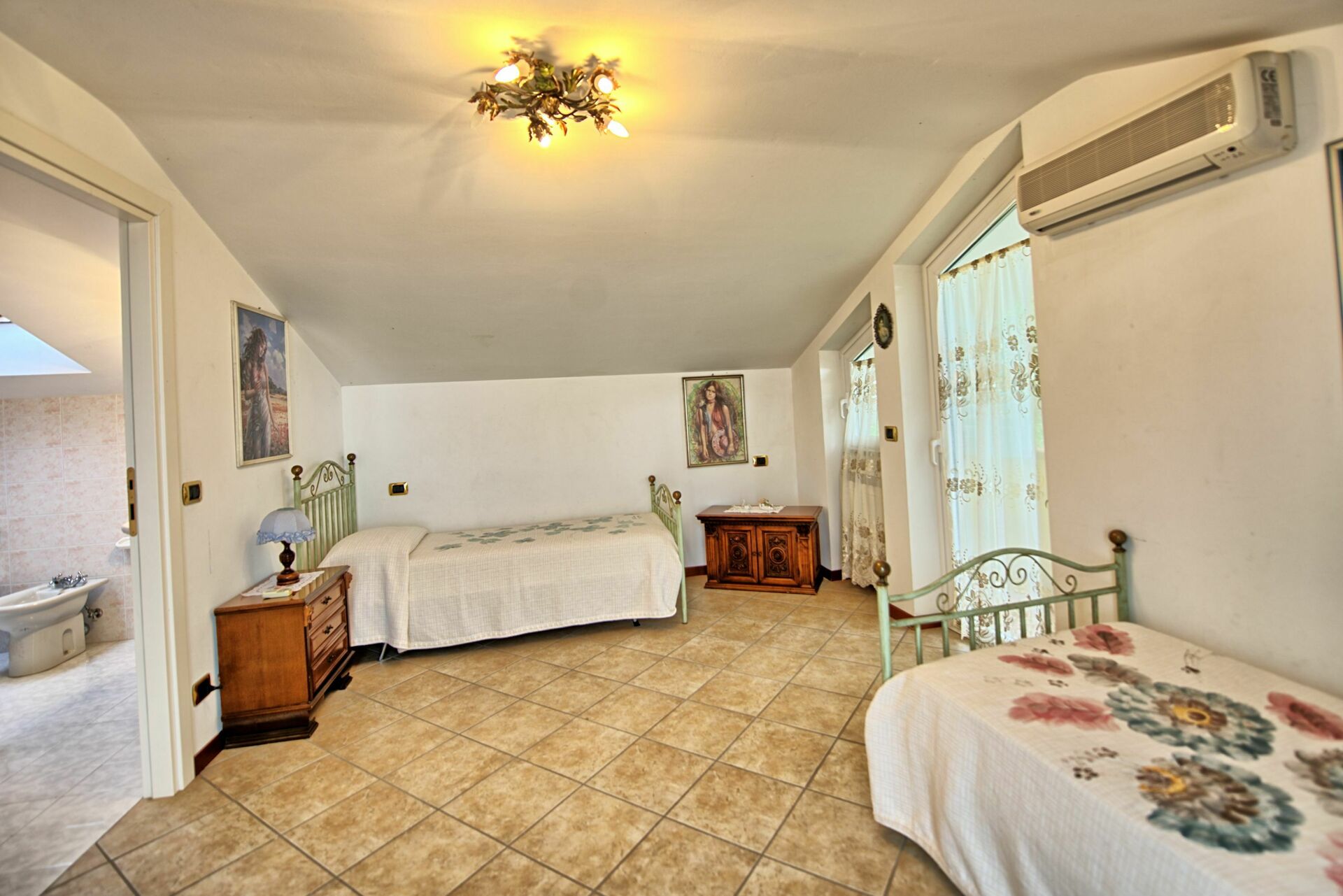 2e verdieping: slaapkamer met 2 eenpersoonsbedden en toegang naar een panoramisch terras, badkamer met hydro-massage douche, slaapkamer met een tweepersoonsbed en toegang tot een panoramische terras (hetzelfde terras als de voorgaande kamer), slaapkamer met tweepersoonsbed en privé badkamer met douche ( dit is een doorloopkamer naar de bovenverdieping, waar zich een andere slaapkamer bevindt. Teneinde optimale privacy is er een gordijn, zodat het bed en de badkamer niet zichtbaar zijn voor diegenen die naar de bovenverdieping gaan als het gesloten is.