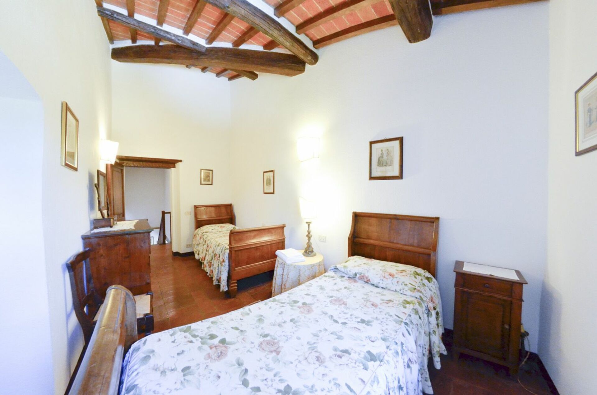 Eerste verdieping: tweepersoonsslaapkamer, slaapkamer met 2 eenpersoonsbedden, badkamer met douche.