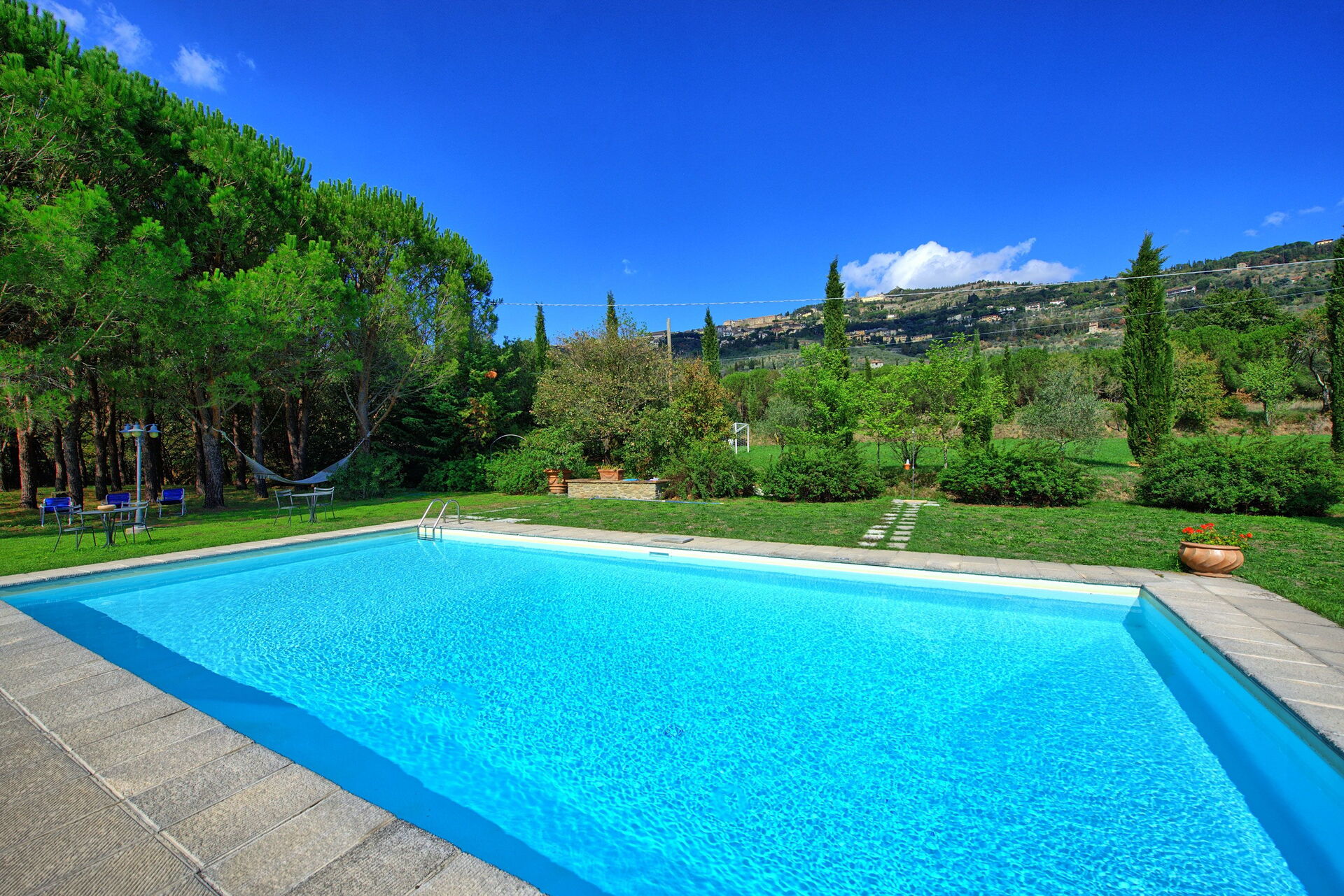 An old, country-style villa sympathetically restored in a quiet, private location within easy reach of Cortona and other sights. Nice pool and lots of outside space for relaxing, cooking (brick-built barbecue) and eating. We barely spent any time indoors except when sleep