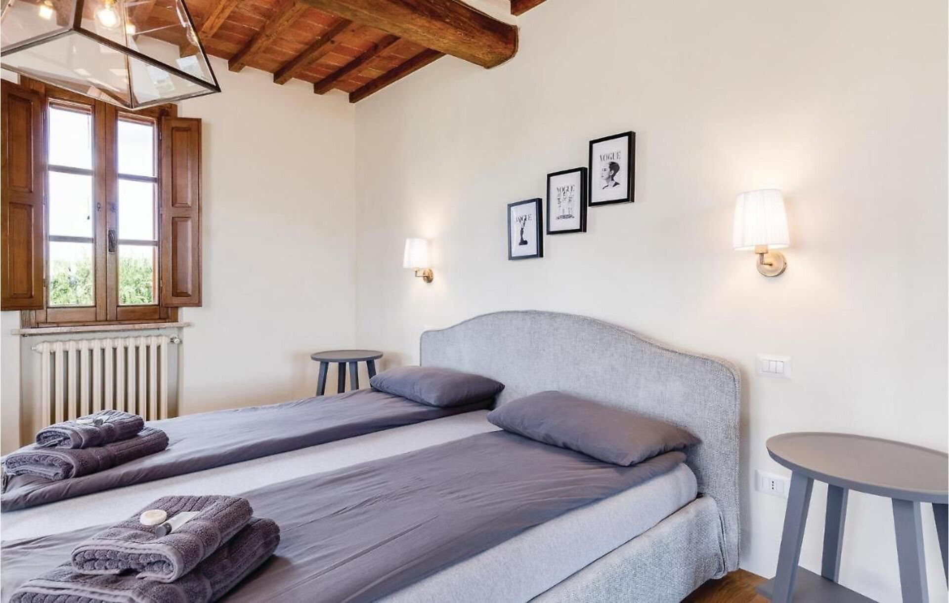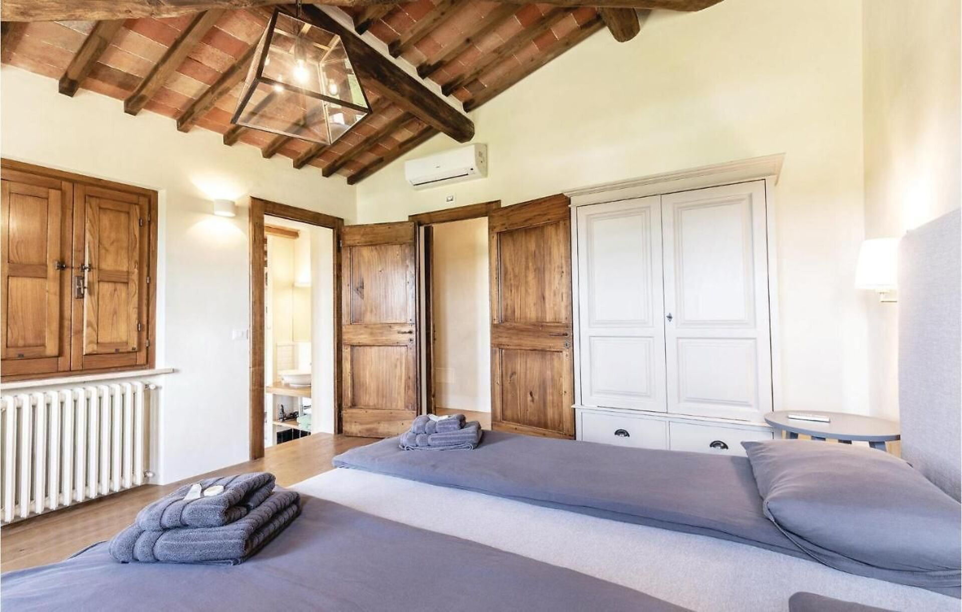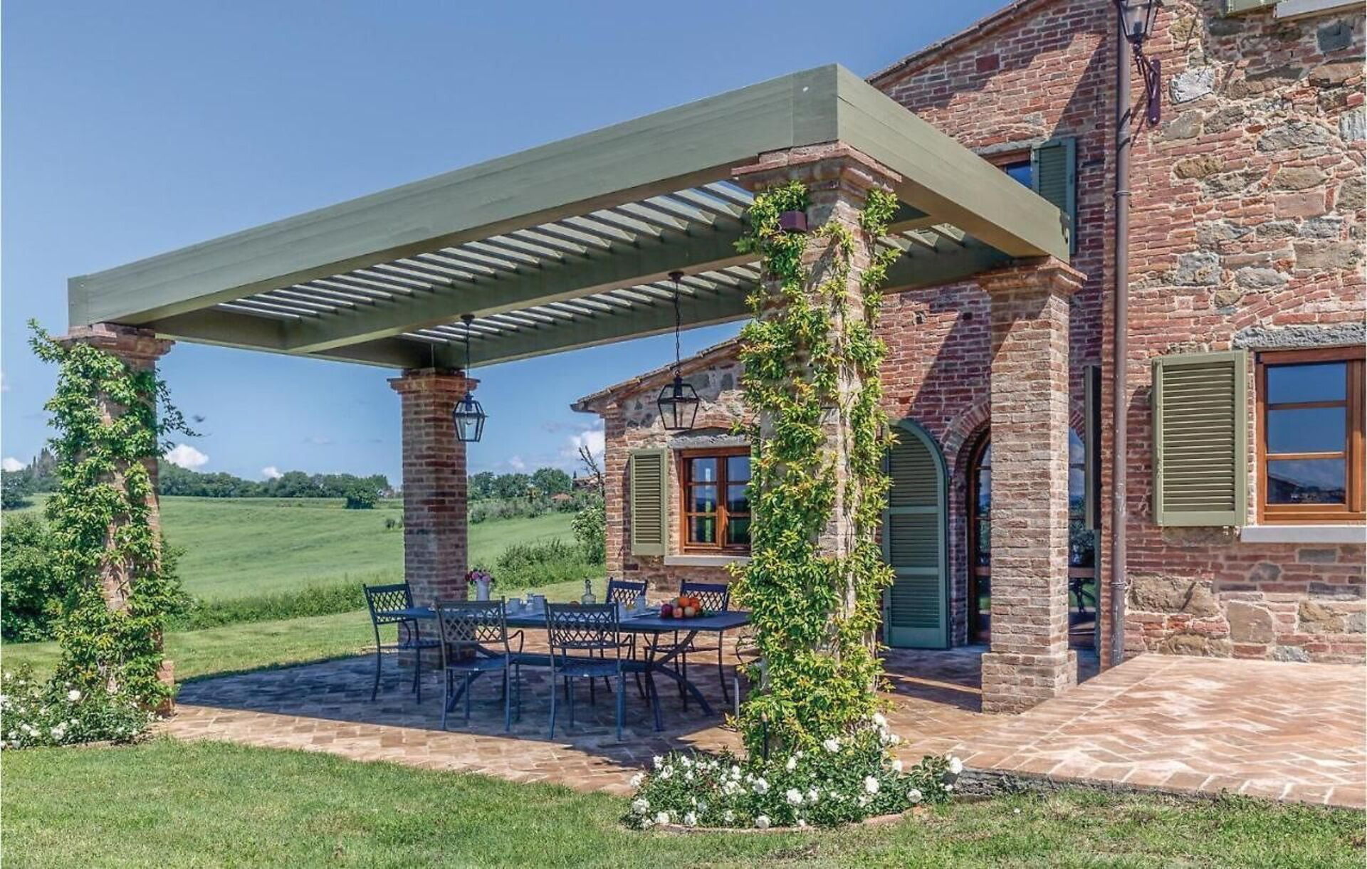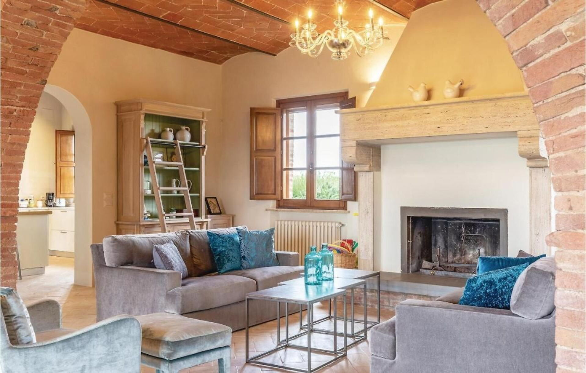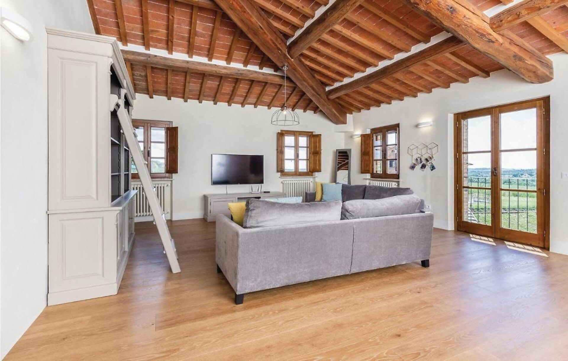 Outside on the grounds, there is a large, well tended garden with a stunning private pool and a sunbathing terrace with panoramic views: the perfect place to relax in the sun or cool off on sunny summer days, while enjoying the gorgeous Tuscan landscape. On the elegant terracotta terrace there is a lovely covered dining area with a table, chairs and barbecue for comfortable outdoor meals.