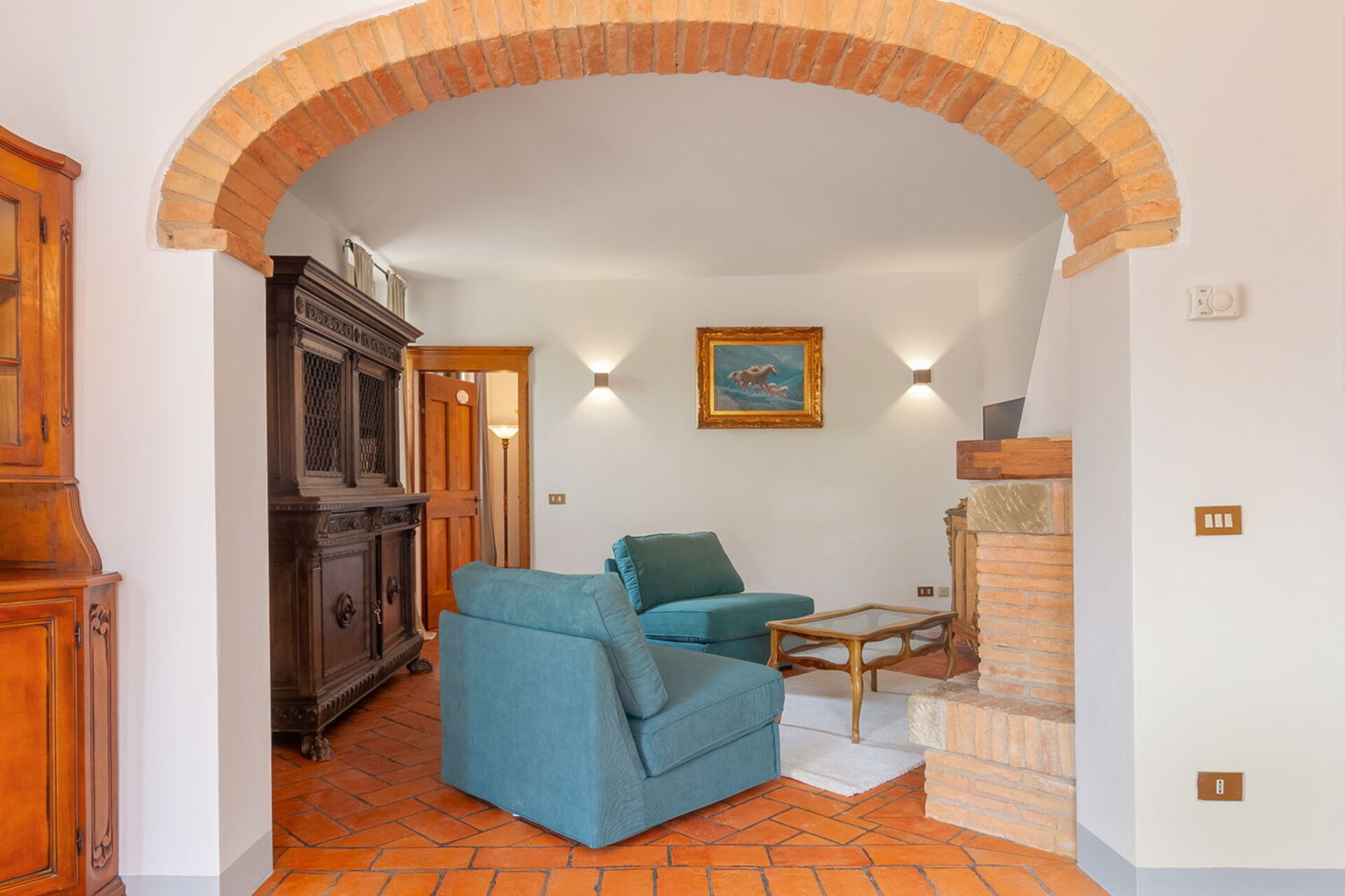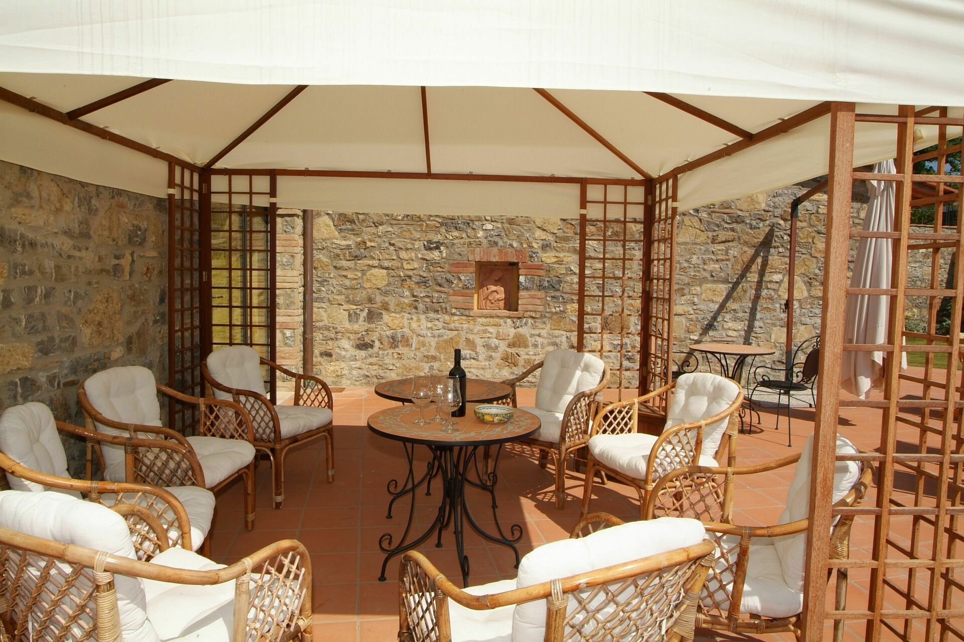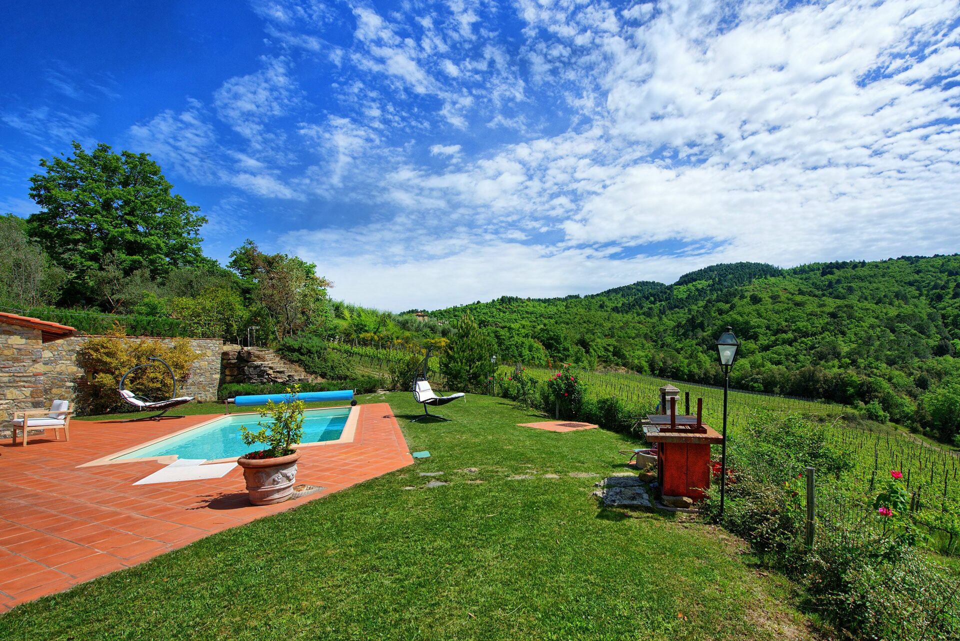 De villa maakt deel uit van een groot wijngoed waar Chianti Classico wijn geproduceerd wordt die men ook kan proeven.