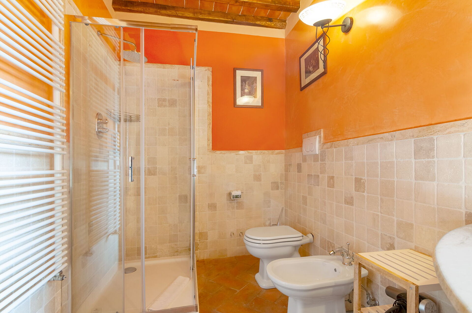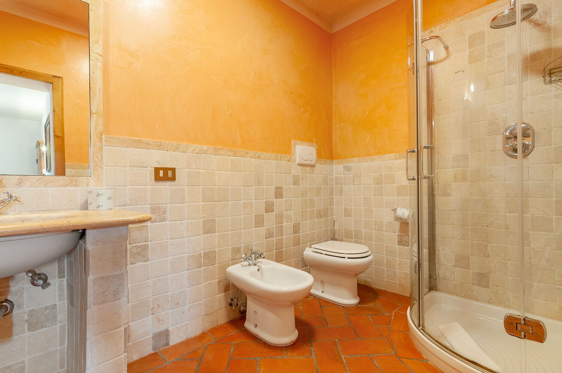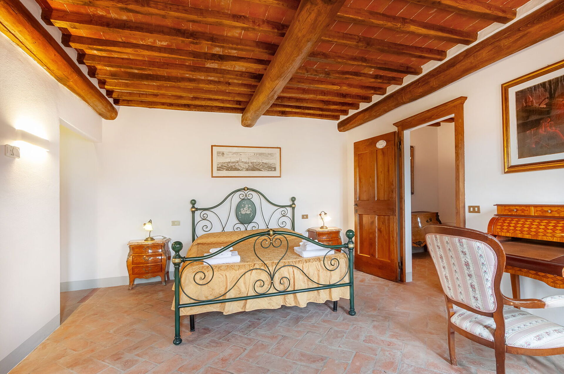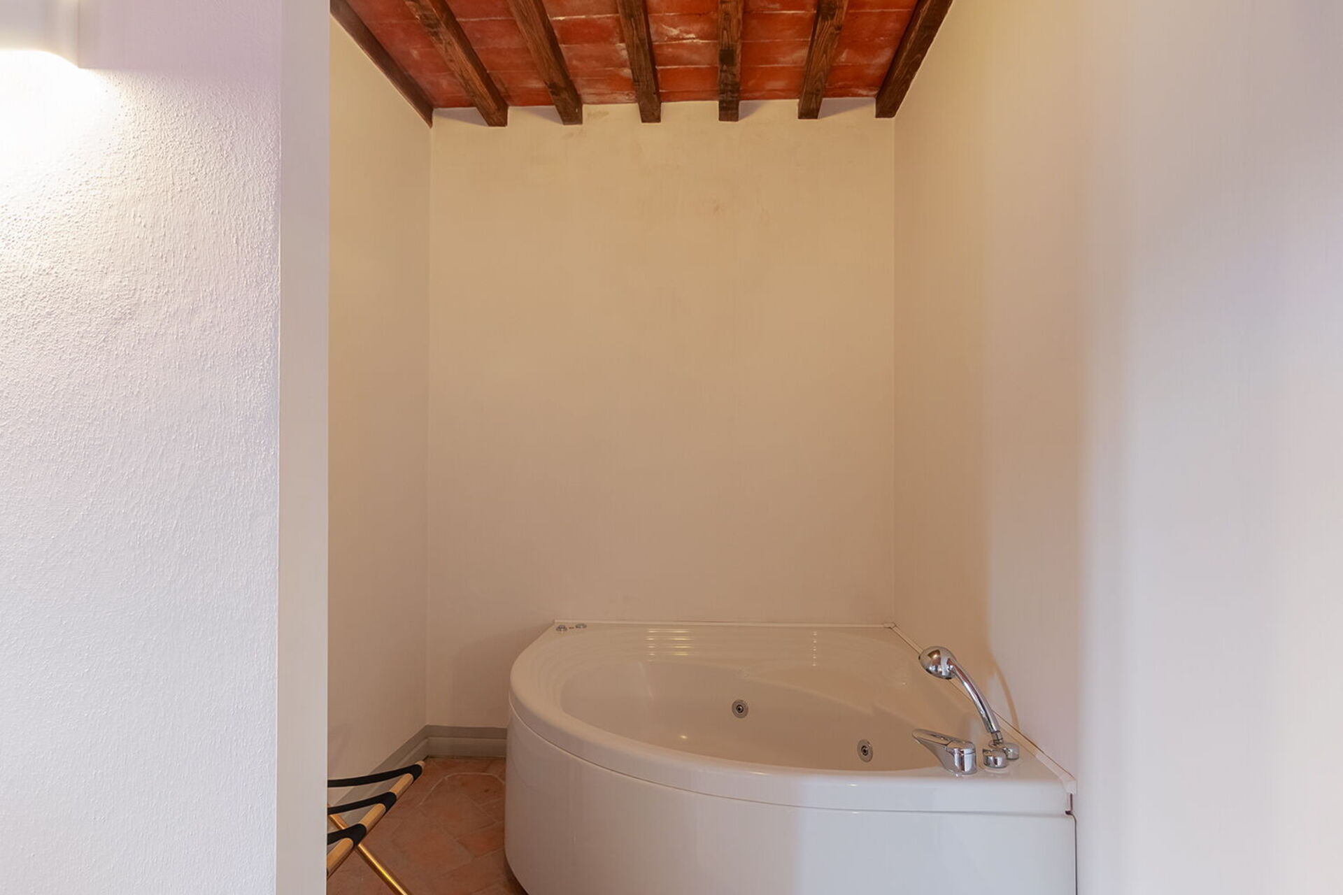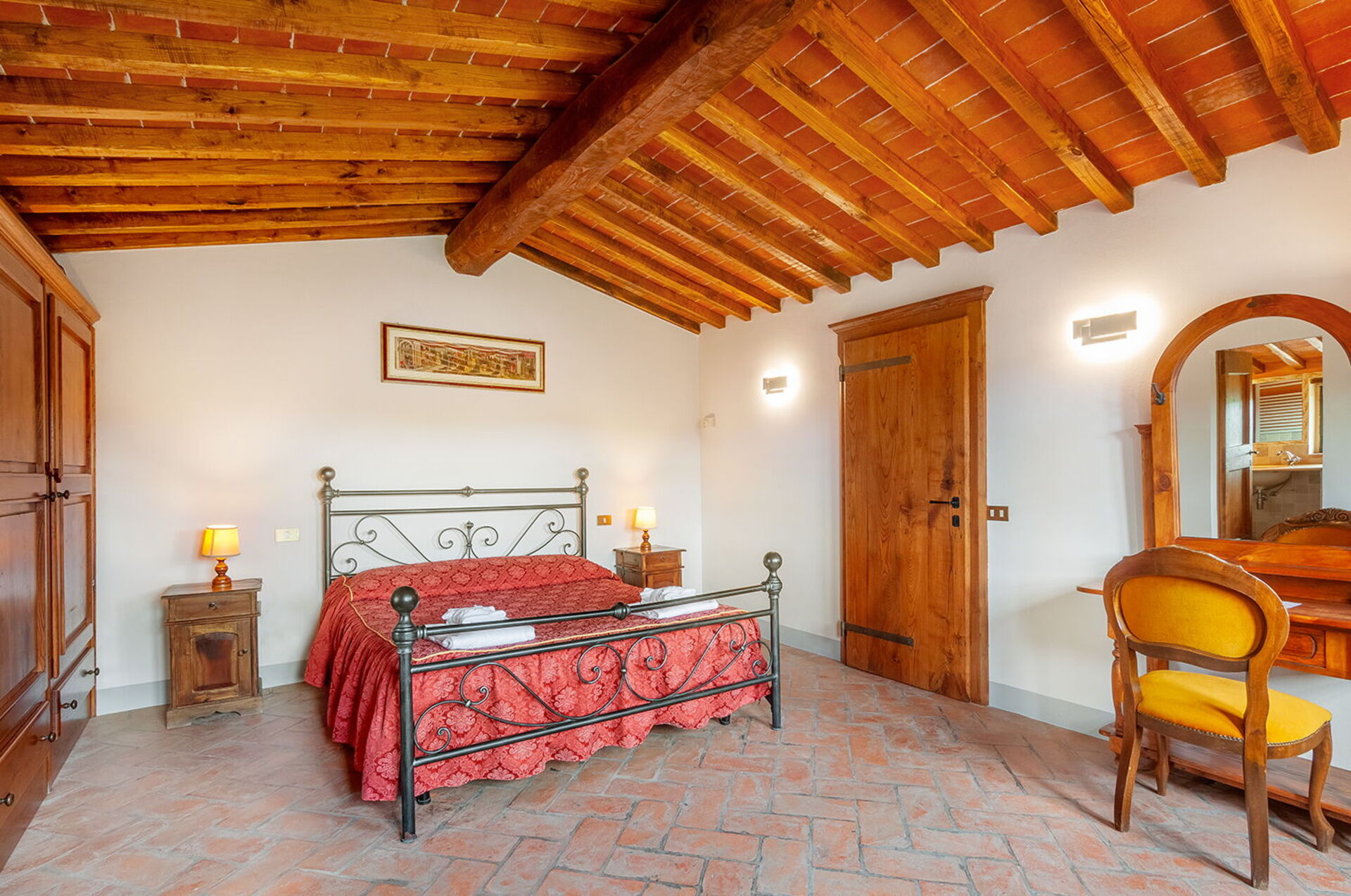 1° verdieping: slaapkamer met tweepersoonsbed met eigen badkamer met douche en jacuzzibad. Deze verdieping heeft toegang tot een prachtig terras met panoramisch uitzicht over het zwembad en de omliggende wijngaarden.