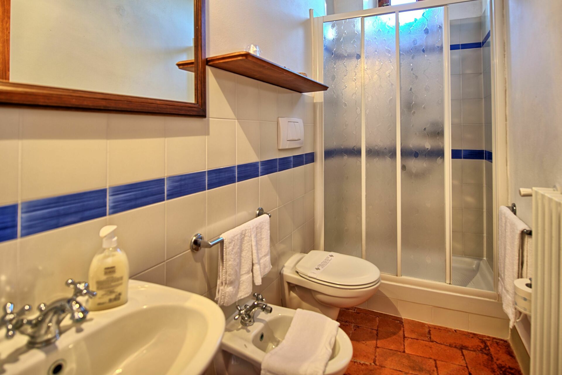 2° verdieping: 3 slaapkamers met tweepersoonsbed met airconditioning en eigen badkamer met douche.