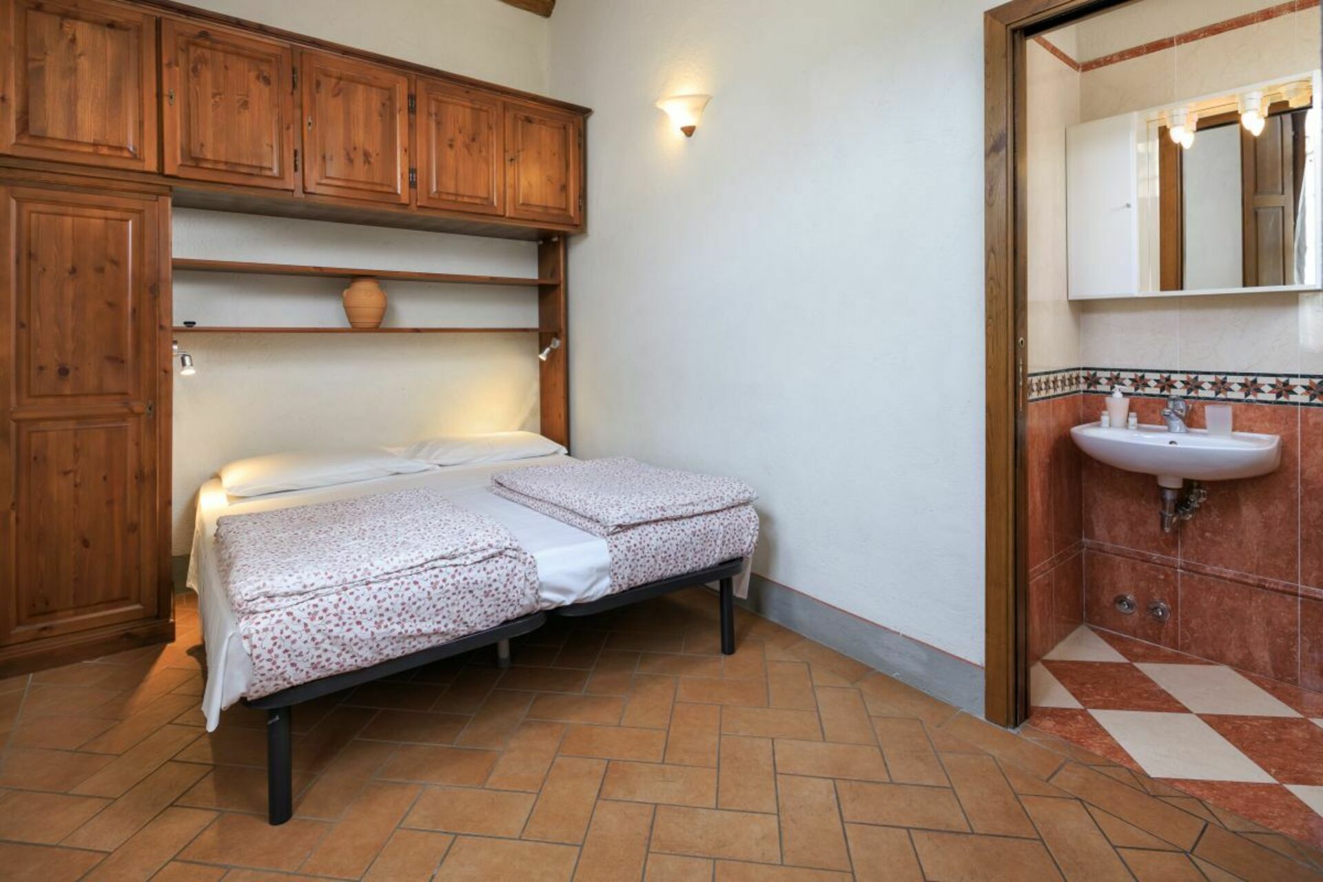 Ground floor: living room with dining area and kitchenette, 2 double bedrooms, 1 bedroom with 2 single beds, 3 bathrooms with shower.