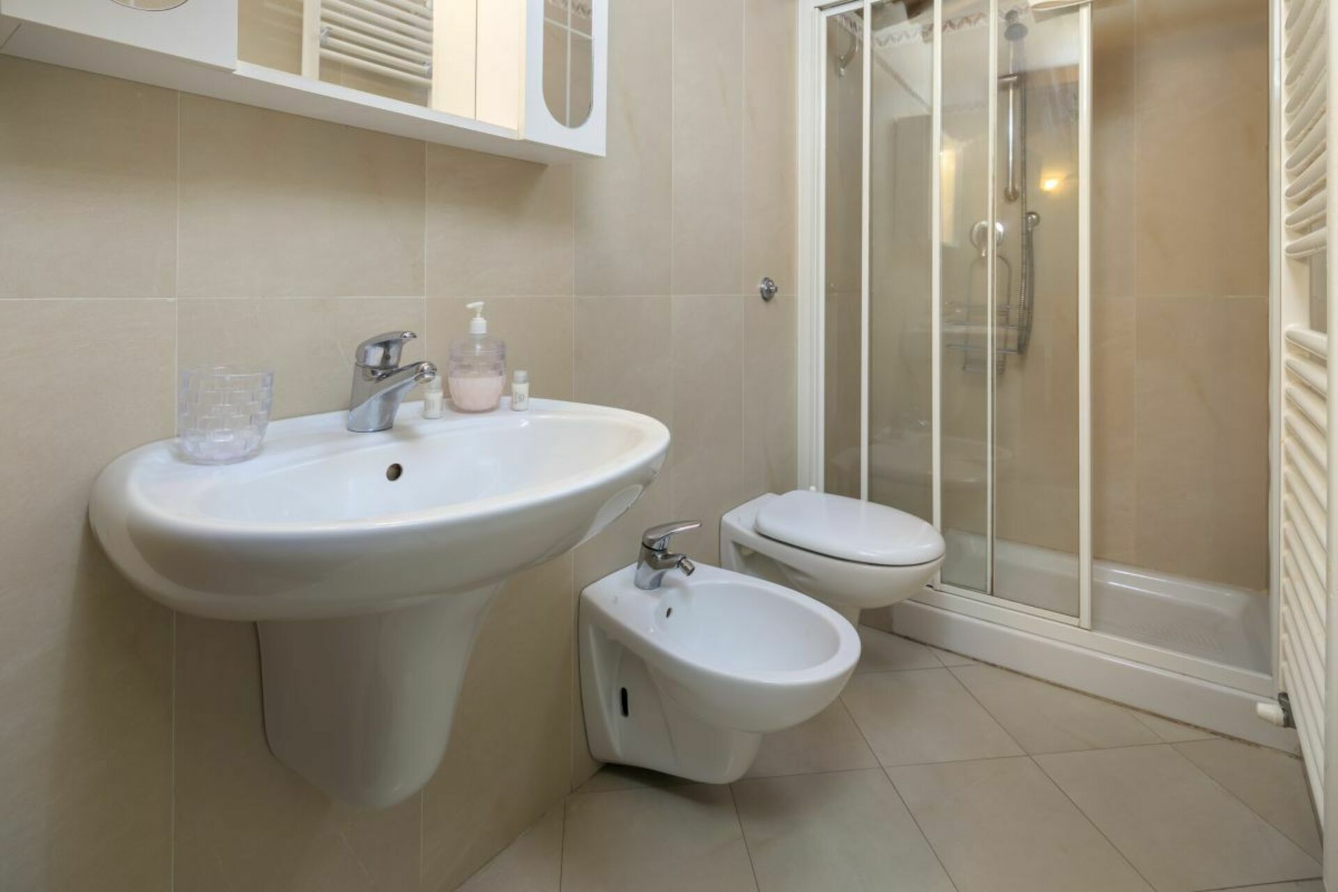 First floor : living room with dining area and kitchenette, 2 double bedrooms, 1 bedroom with 2 single beds, 3 bathrooms with shower.