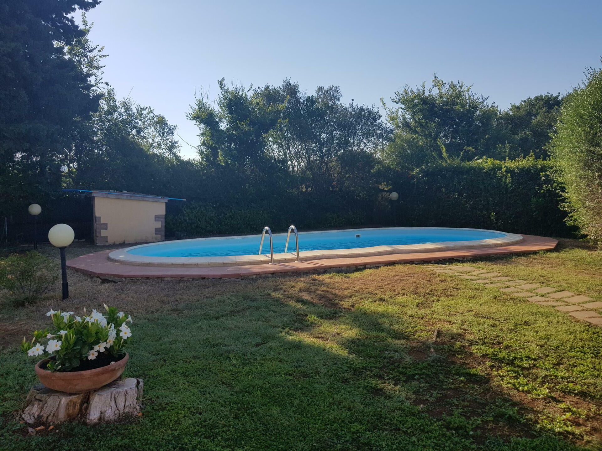 [English translation courtesy of Easy Reserve] We spent a very nice family holiday at Villa Poderino. The house is very clean and well equipped. The garden with the pool is wonderful, nestled among vines and olive trees. The fenced property was excellent for our dog. The location is ideal for excursions and to the beach, yet it is absolutely quiet. There are good shopping opportunities in the nearby area and good restaurants.