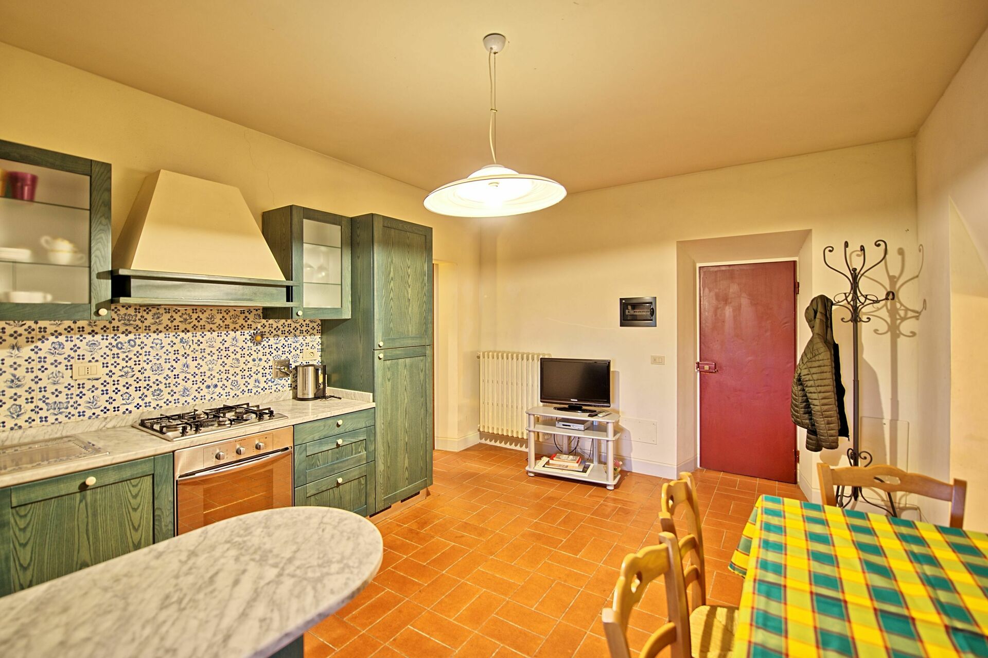 When we arrived, we were overwhelmed by the beauty of the property. It is exactly as you see it on TV, with the stunning views, the cedar tree lanes, the olive tree- and vineyards....it is all there. Anna knocked on our door and warmly welcomed us. Anna and Stefano are very helpful, friendly and make you experience the holidays the Italian way. Like we knew them for a long time. We were asked to join the wine tasting at the big villa. When we arrived there, we were pleasantly surprised by the long layed table and enjoyed a dinner with the other family renting an apartment on the property. In one word: perfect!