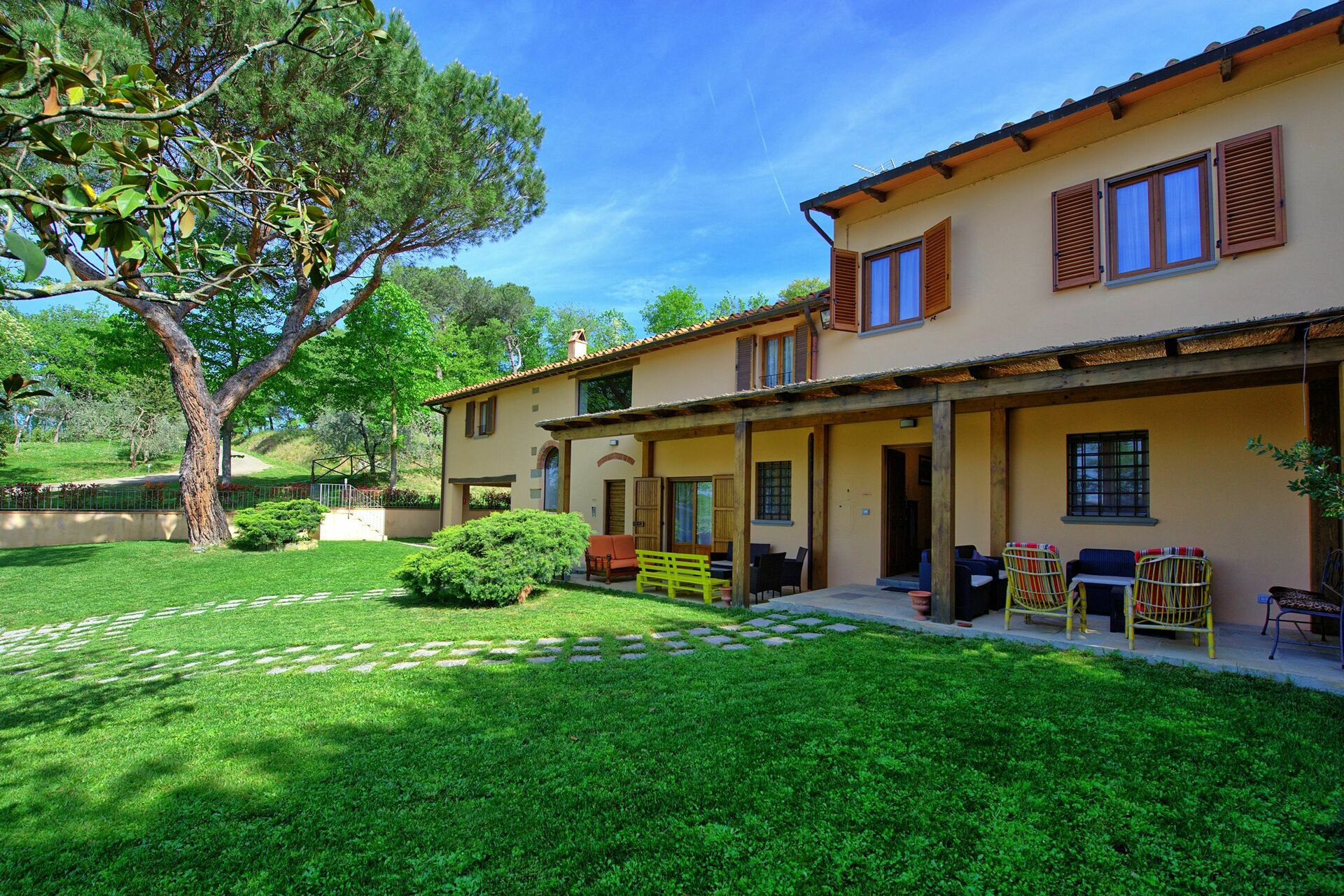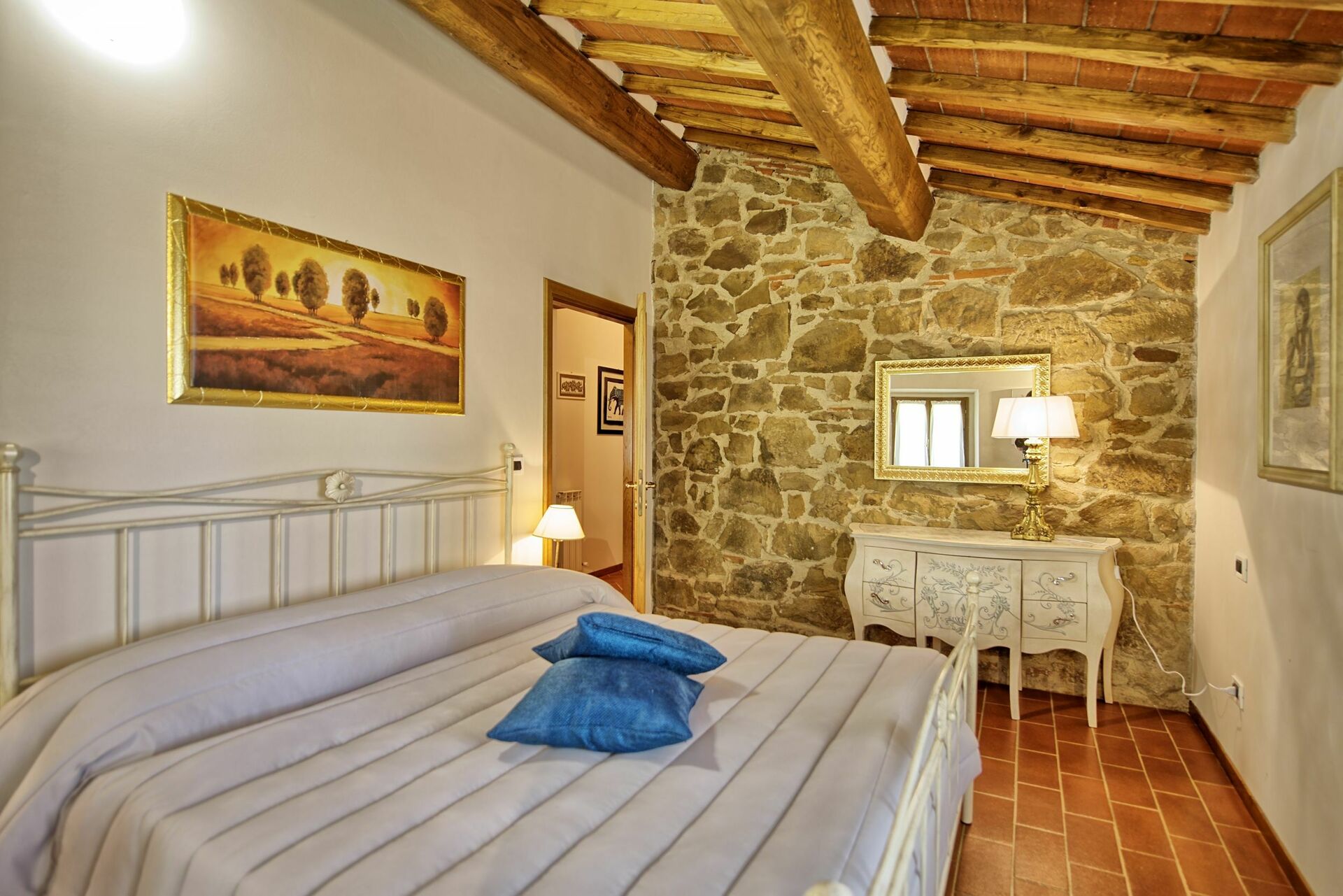 Het grote vakantiehuis in Toscane kan makkelijk 14 gasten in 7 slaapkamers huisvesten.