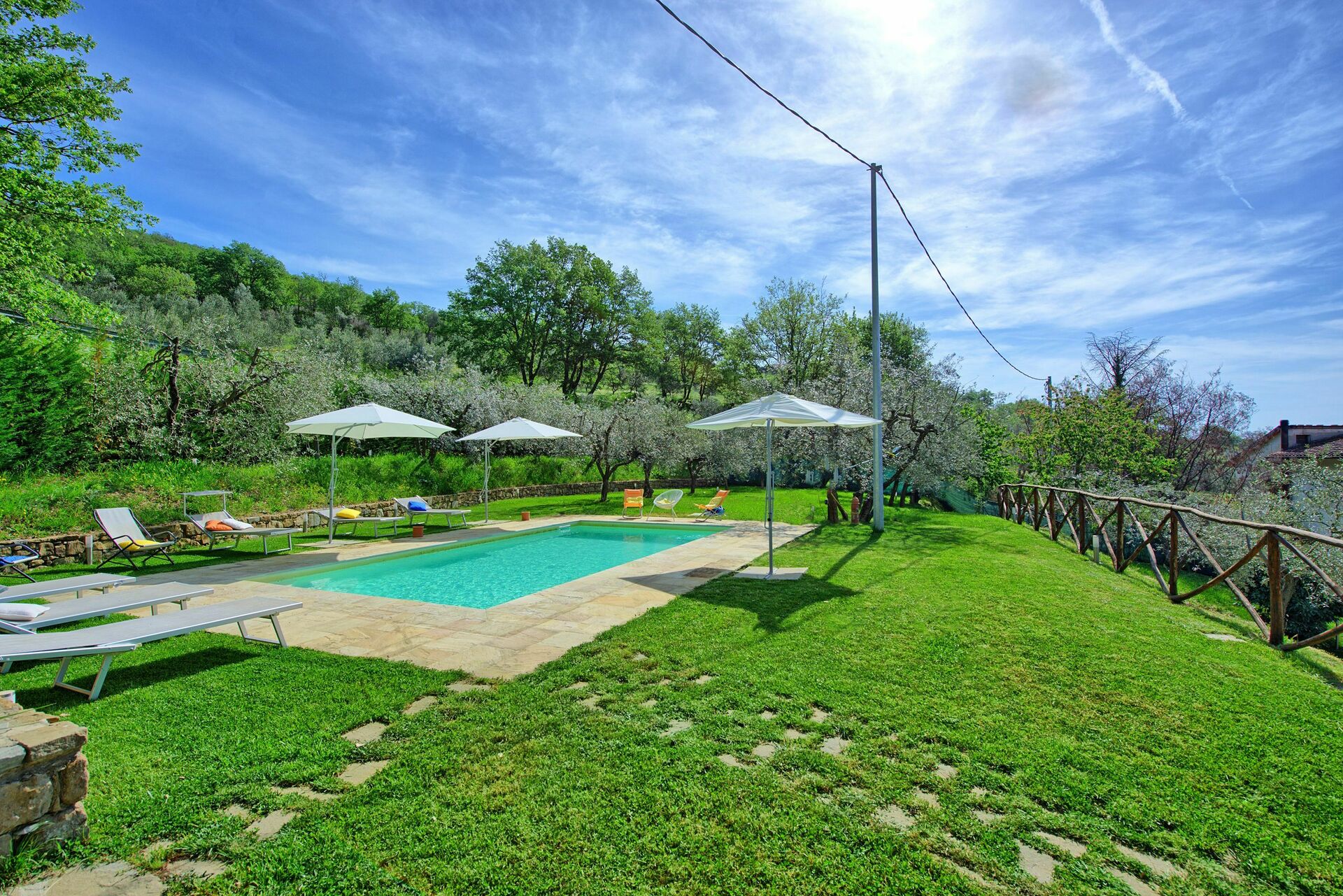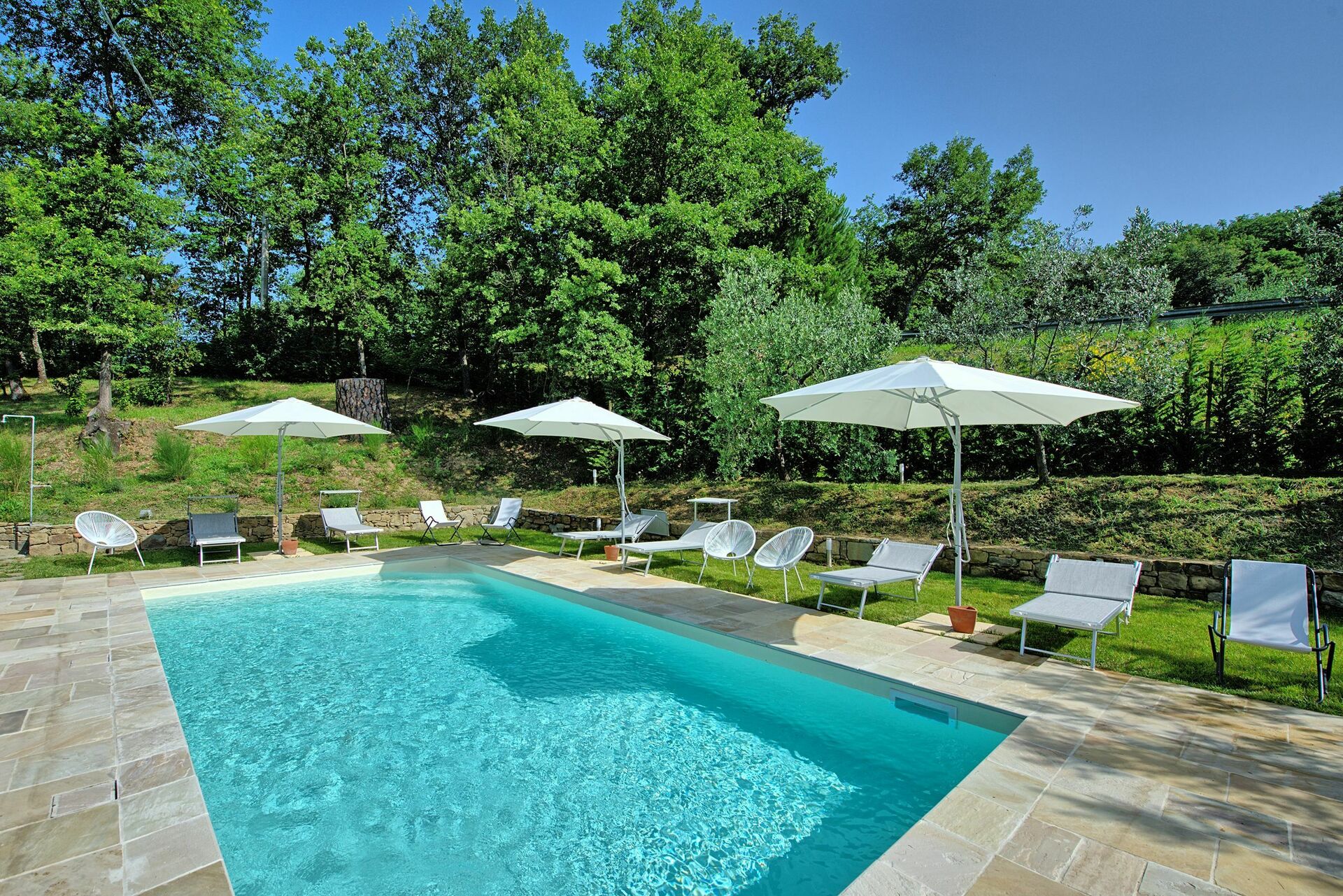 Het huis is recent gerestaureerd, smaakvol ingericht, beschikt over alle moderne comfort. In de grote ingerichte privé buitenruimtes bevindt zich het privé zwembad, exclusief voor de gasten, met stoelen, tafels en banken om zich op ieder uur van de dag heerlijk te kunnen ontspannen. Het vakantiehuis met privé zwembad in Toscane heeft een rustige ligging en is slechts 5 km verwijderd van het schilderachtige dorp Loro Ciuffenna en 1 km van de Pieve di Gropina, een kerk van een grote historische en artistieke betekenis.