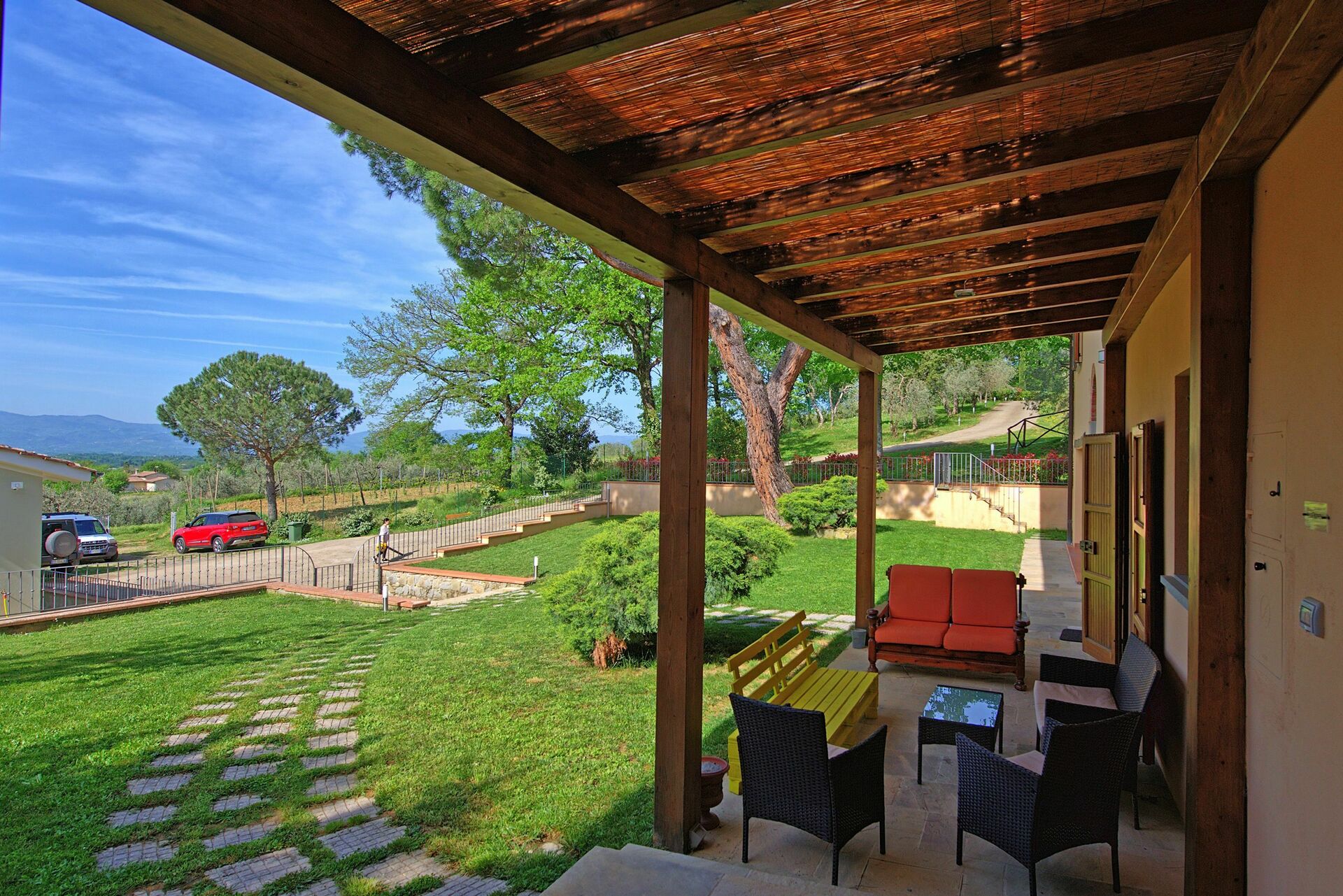 What a magnificent house and property! The owner greeted us very well and even though she could not speak English she had a great app that translated what she way saying. The house itself was very well decorated and well equipped in the kitchen. Kids enjoyed the swimming pool and we enjoyed the outdoor BBQ area. it was very easy to get groceries from Coop which was about 6km away. The owner also showed us her fields and got us some fresh tomatoes every morning. The house itself was very comfortable and I will highly recommend it. We had a car that we rented and did day trips to Pisa, Gereve, Sienna, San Gemignano and Florence