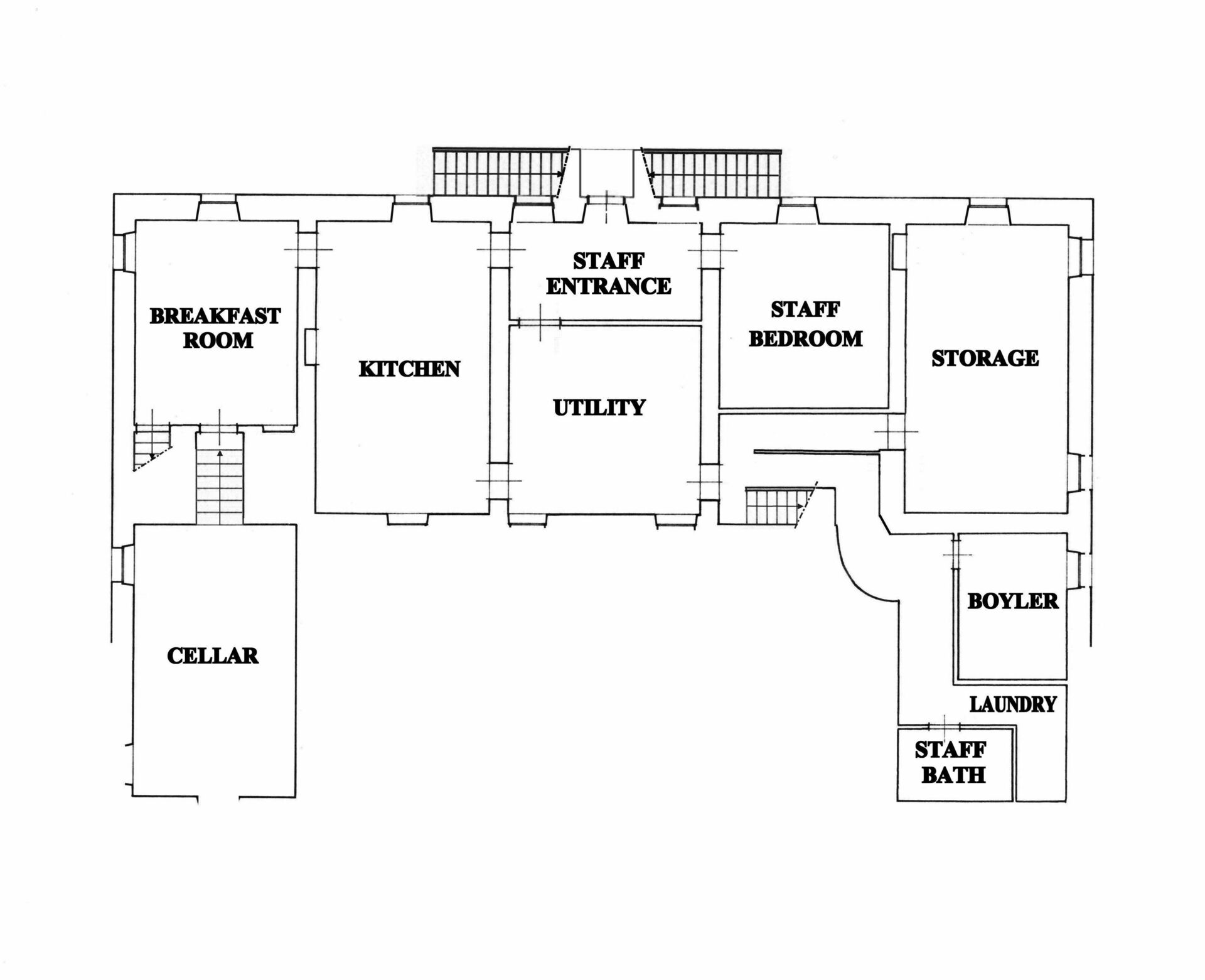 Op de begane grond zijn twee tweepersoonsslaapkamers: de eerste heeft een queensize hemelbed met een eigen badkamer en de tweede, de zogenaamde "eerste tweepersoonskamer", heeft een queensize bed met een eigen badkamer met een douchecabine en een tv met Sky-sat.