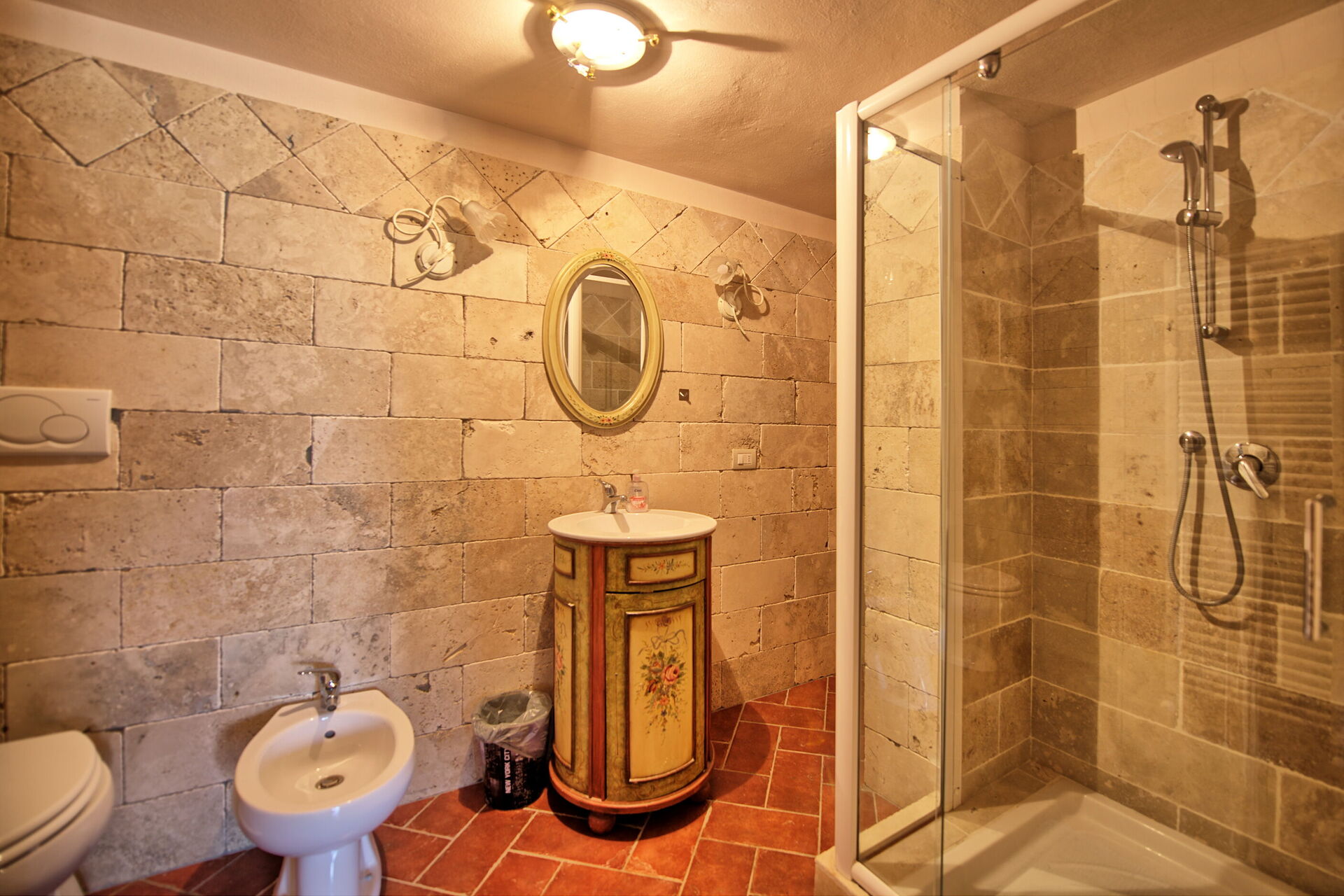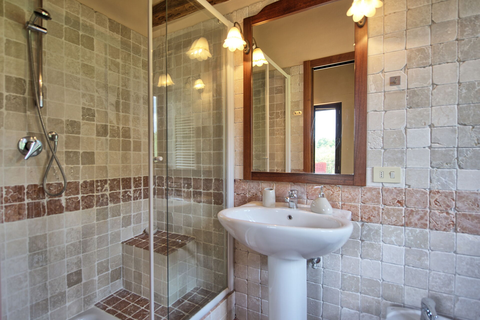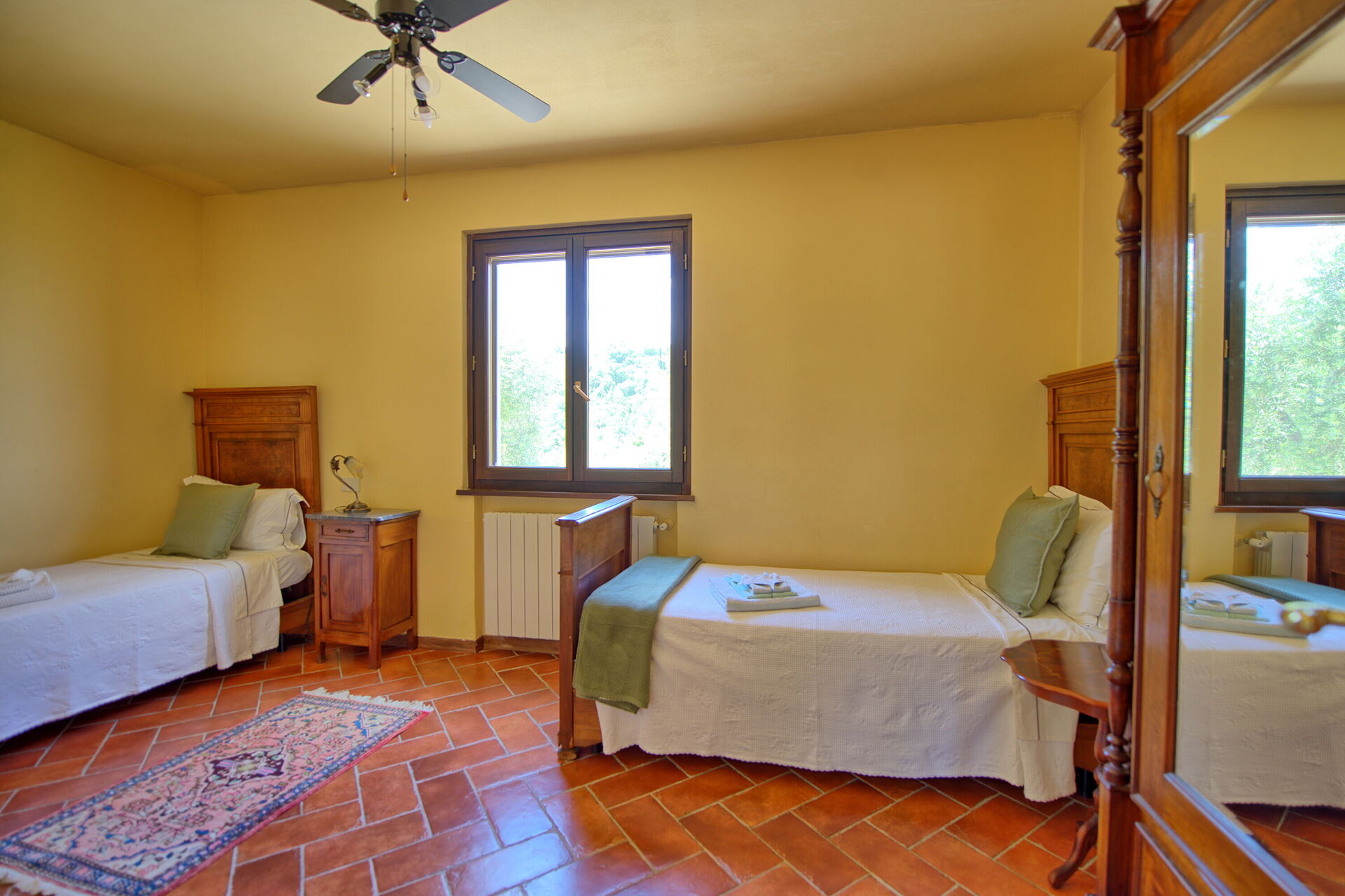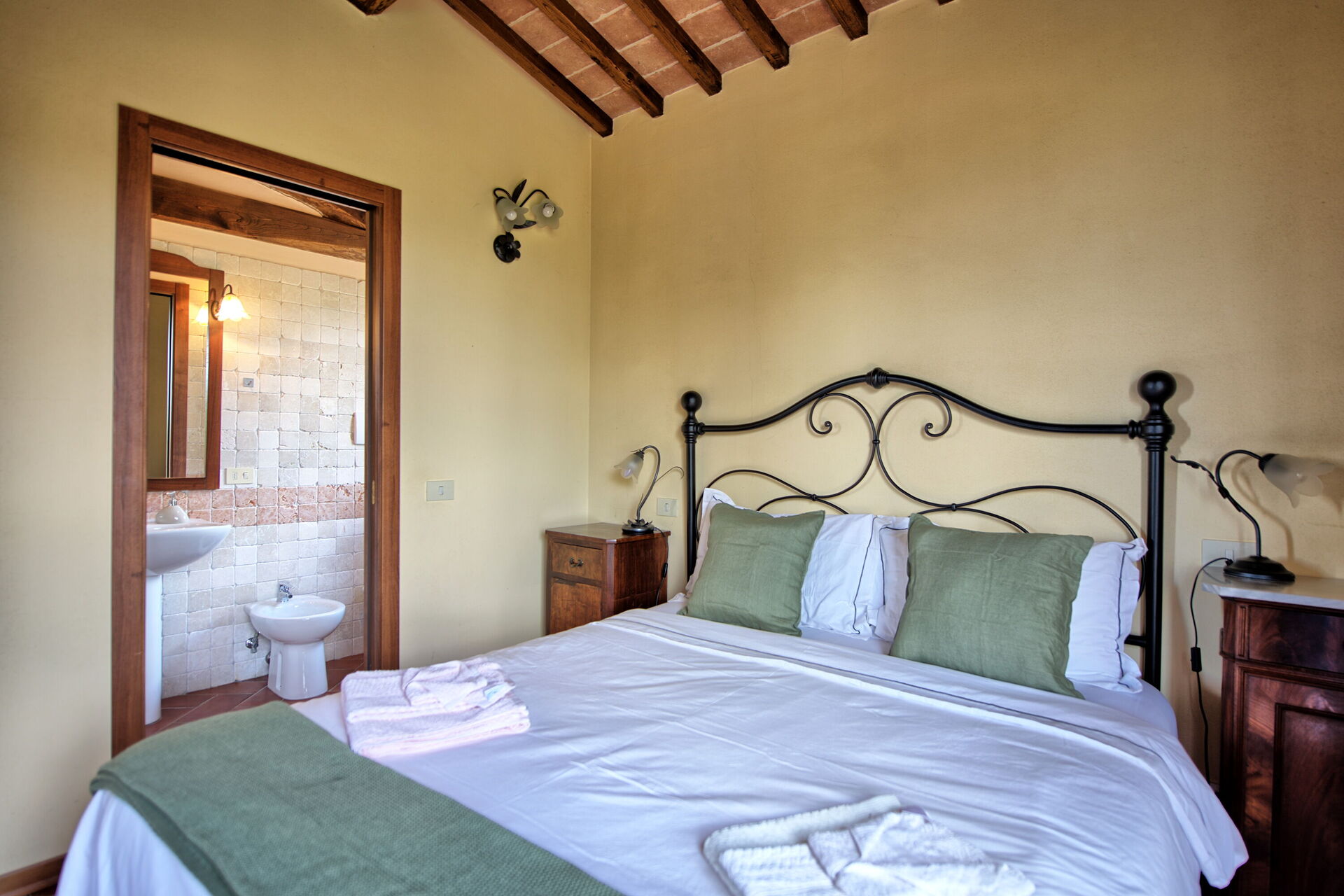 Begane grond: slaapkamer met queensize bed en en-suite badkamer met douche, slaapkamer met twee eenpersoonsbedden en eigen badkamer met douche. Beide slaapkamers hebben een spectaculair uitzicht op de prachtige Valdichiana-vallei en de stad Lucignano.