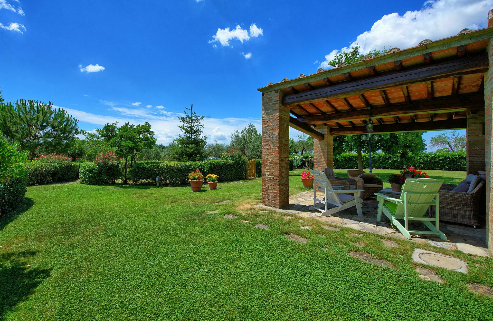 Het huis is volledig gerenoveerd en vanuit de prachtige tuin geniet men van een schitterend uitzicht op het typisch Toscaanse landschap, rijk aan wijngaarden, olijfgaarden en bossen.
