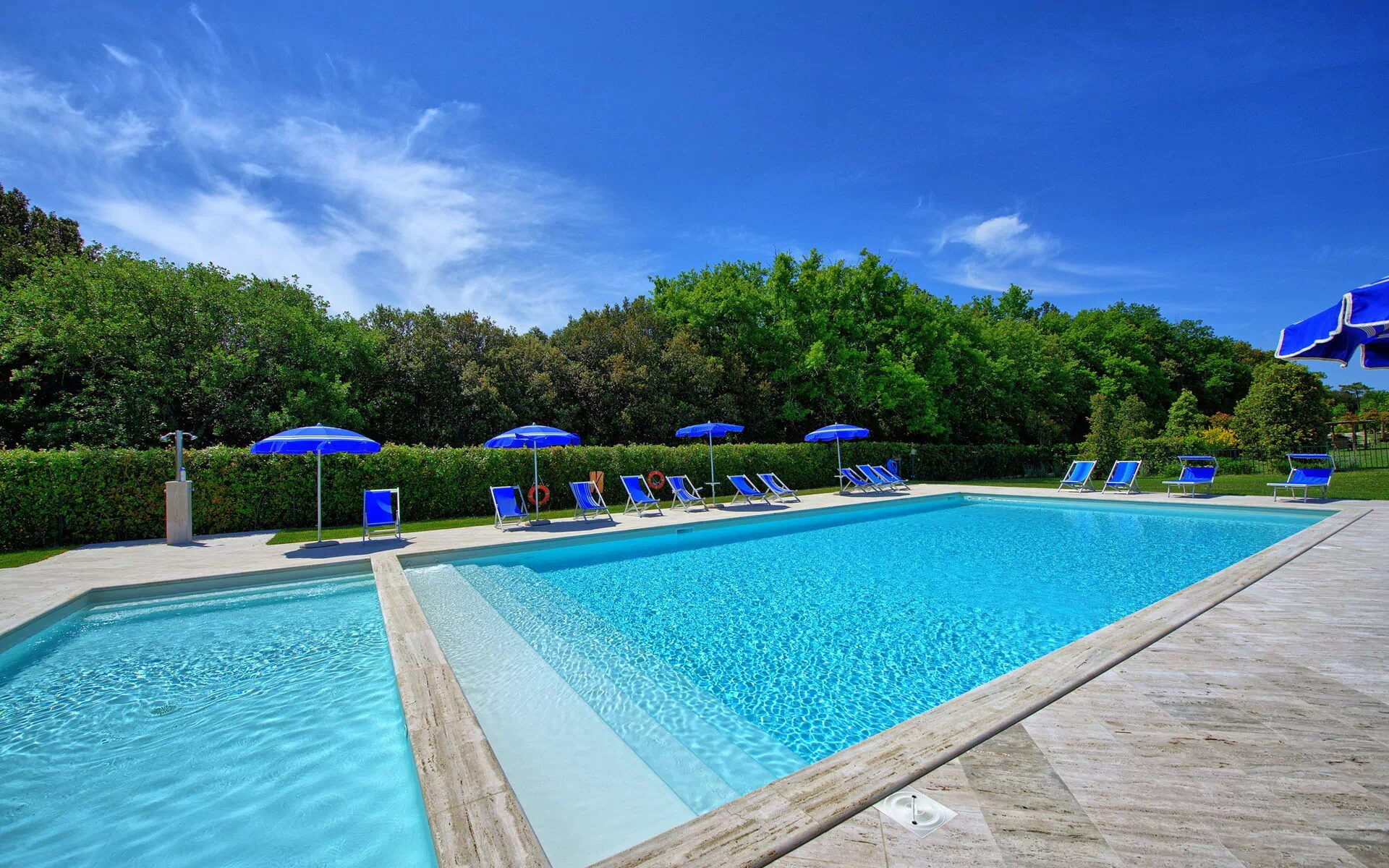 Een mooi zwembad met een groot zonneterras is beschikbaar voor de gasten.