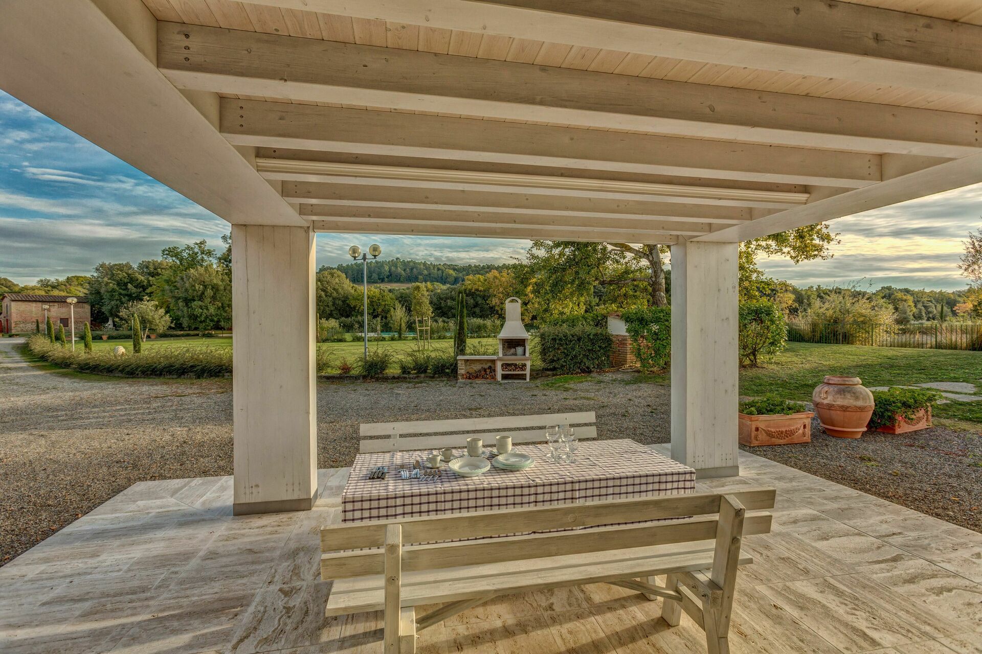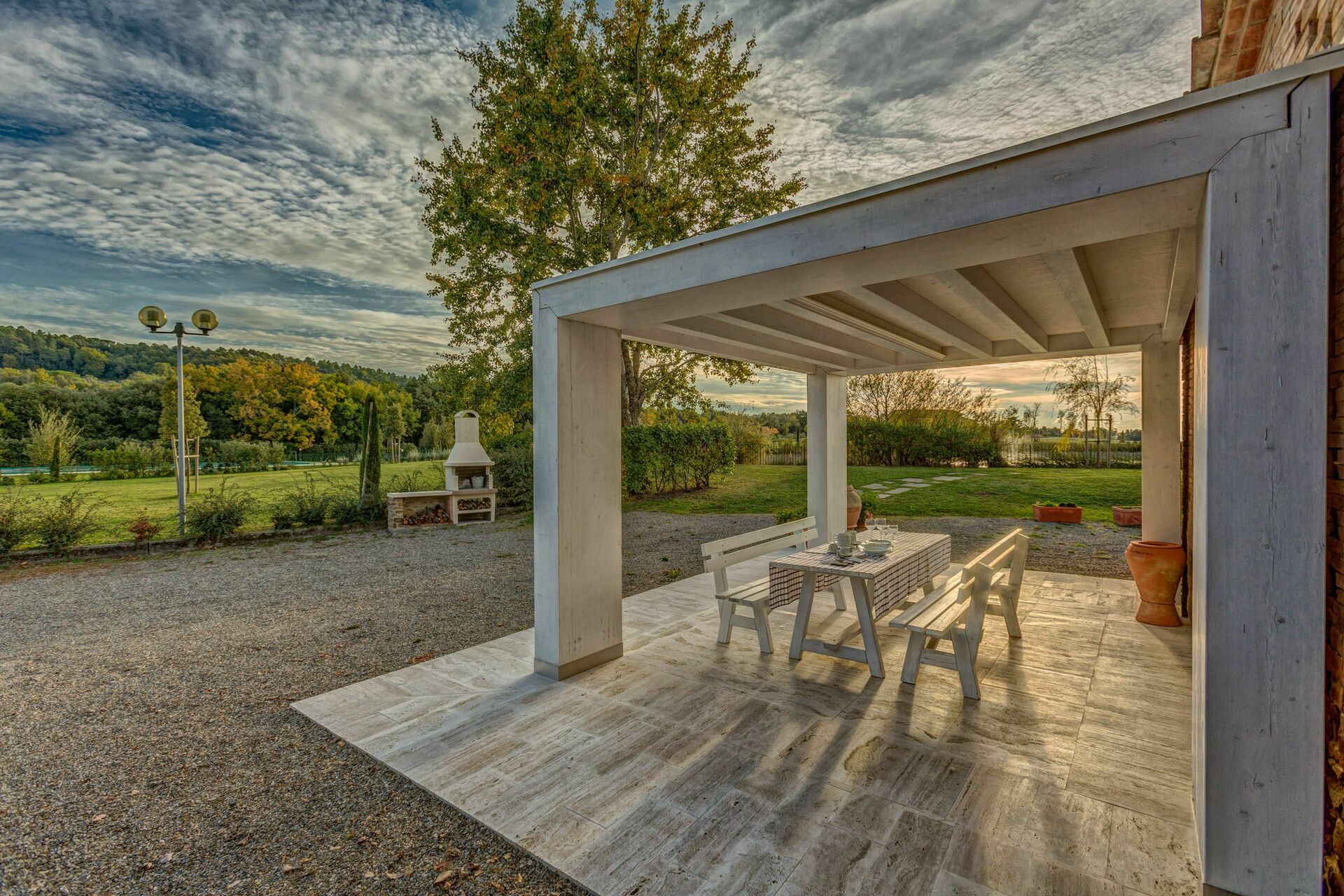 There are nice touches with the hanging chairs, football table, big pond with a swan on it - which the kids loved looking at. Also enjoyed the most gorgeous sunsets over a stunning Tuscan hill view.
