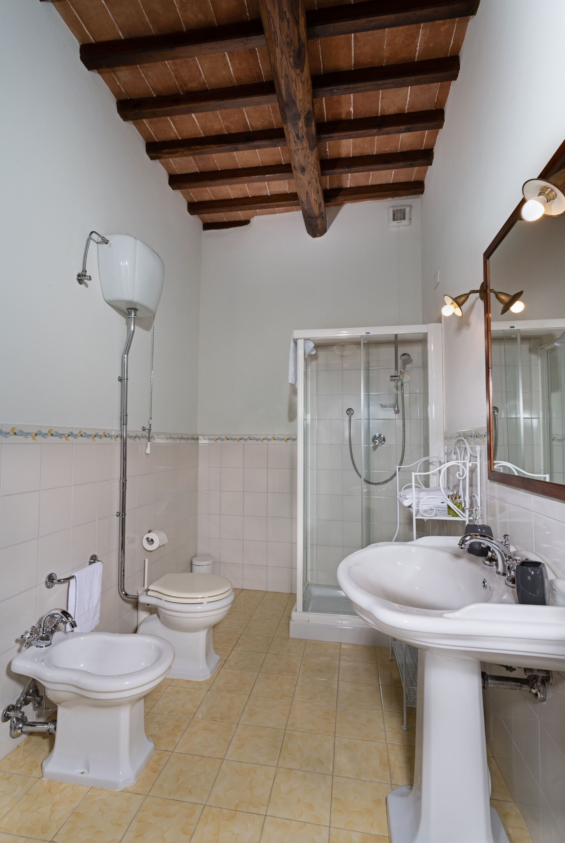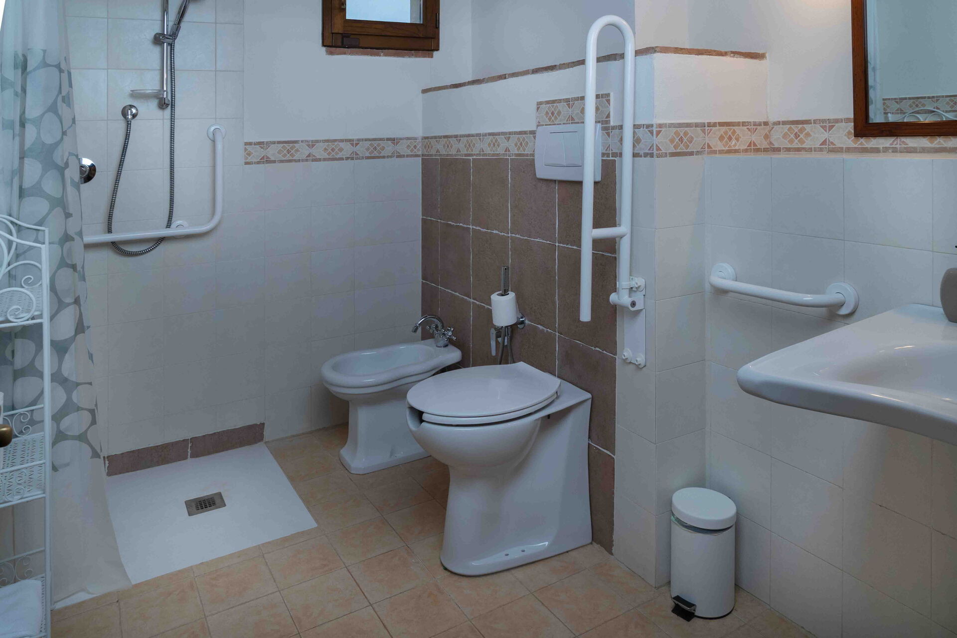 Begane grond: eigen ingang en tuin, woonkamer met eethoek en keuken (vaatwasser, oven, koelkast, magnetron, koffiezetapparaat, broodrooster, waterkoker); 2 dubbele slaapkamers; 2 badkamers, elk met douche.