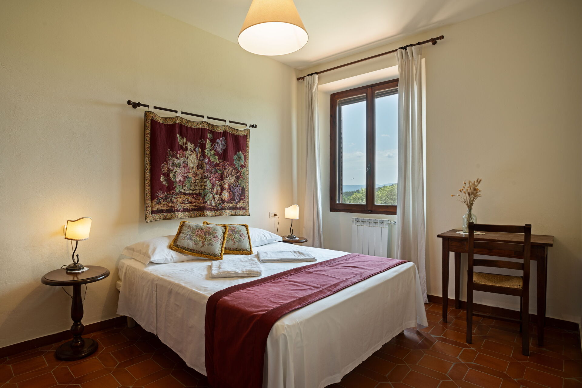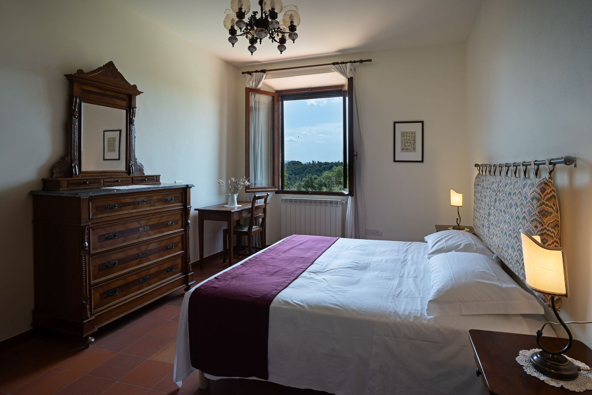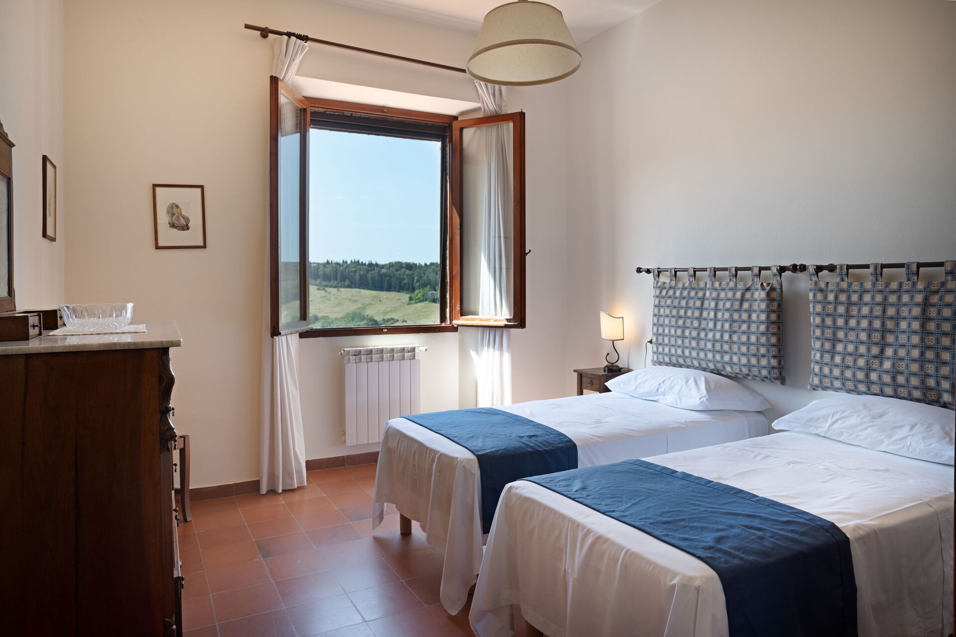 Eerste verdieping: slaapkamer met tweepersoonsbed met eigen badkamer met douche, slaapkamer met 2 eenpersoonsbedden.