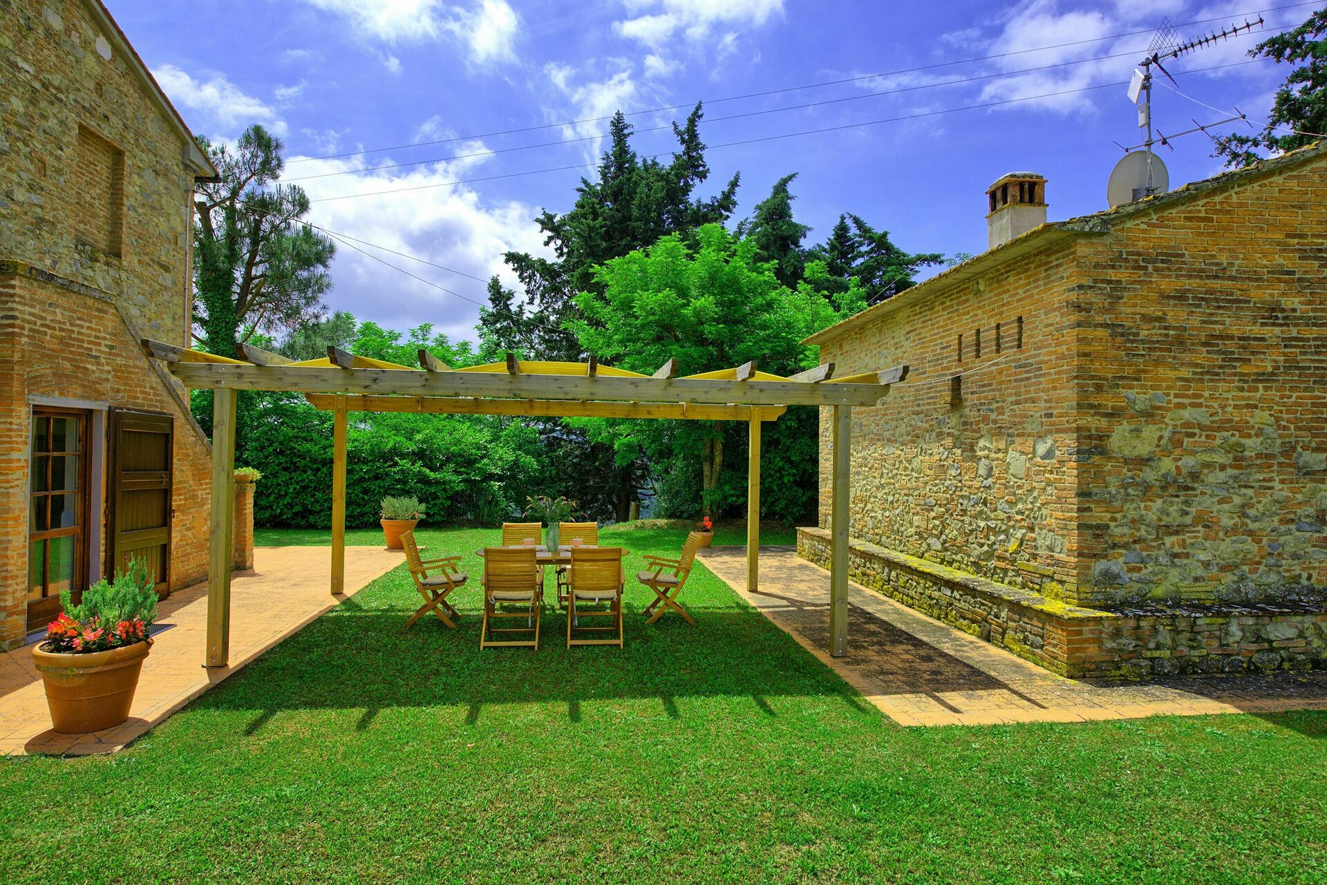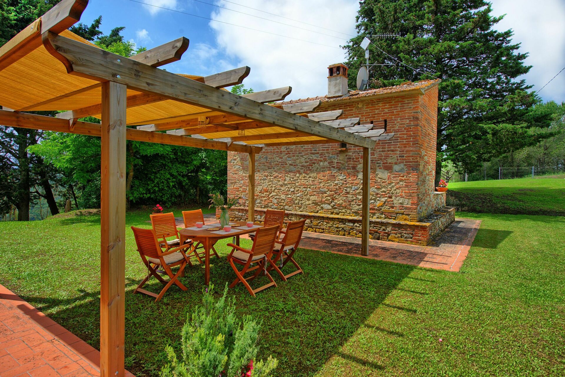 Om het huis ligt een grote en goed onderhouden tuin met een privé zwembad dat volledig beschikbaar is voor de gasten. Vanbinnen heeft het huis een inrichting in een rustieke Toscaanse stijl en het kan makkelijk 8 personen huisvesten.