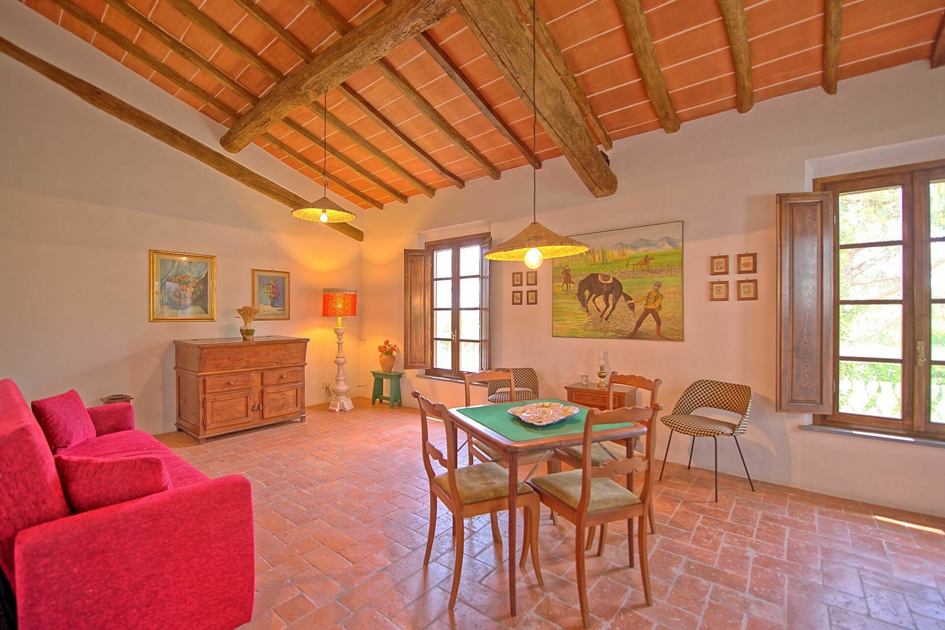 Dit comfortabele vakantiehuis in Toscane heeft een mooie panoramische ligging met uitzicht op de heuvels en het lieflijke dorp Montefoscoli, op circa 30 km van Volterra en op 45 km van Pisa gelegen.