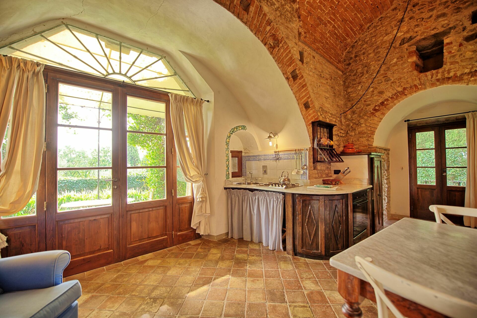 Gracieus appartement verkregen uit de restauratie van een van de torens daterend uit de 13de eeuw en gelegen binnen de muren van het Kasteel van Montegufoni. Het appartement ligt in een van de meest afgelegen gedeeltes van het kasteel en beschikt over een gedeelte van een tuin en privé toegang.
