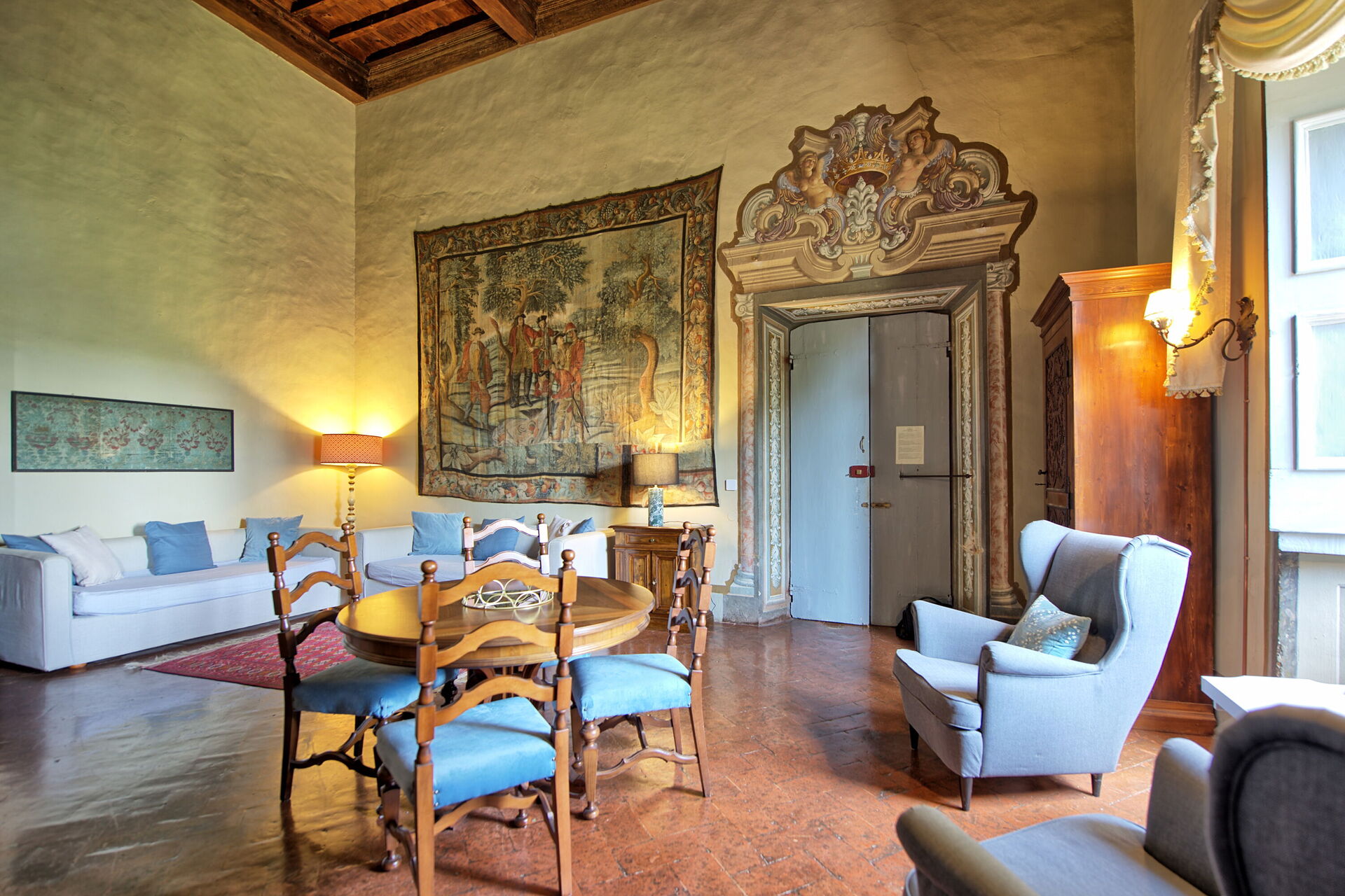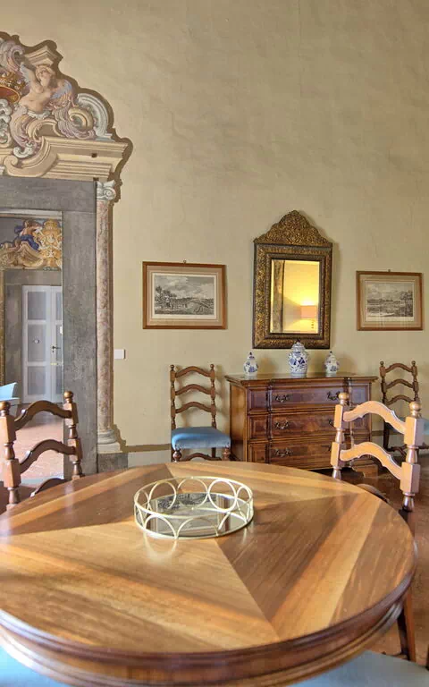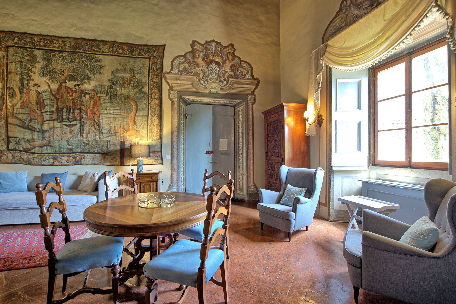 Appartement in het adellijke gedeelte van het kasteel met grote ramen met uitzicht over de tuin.
