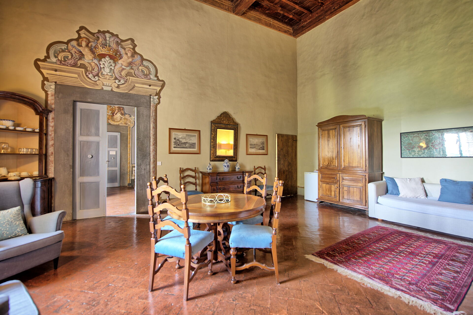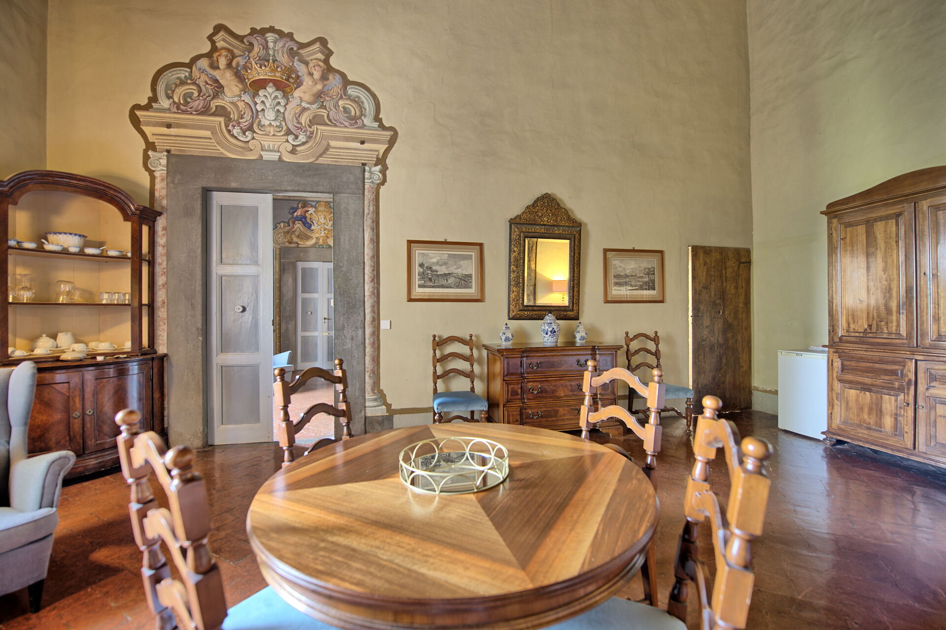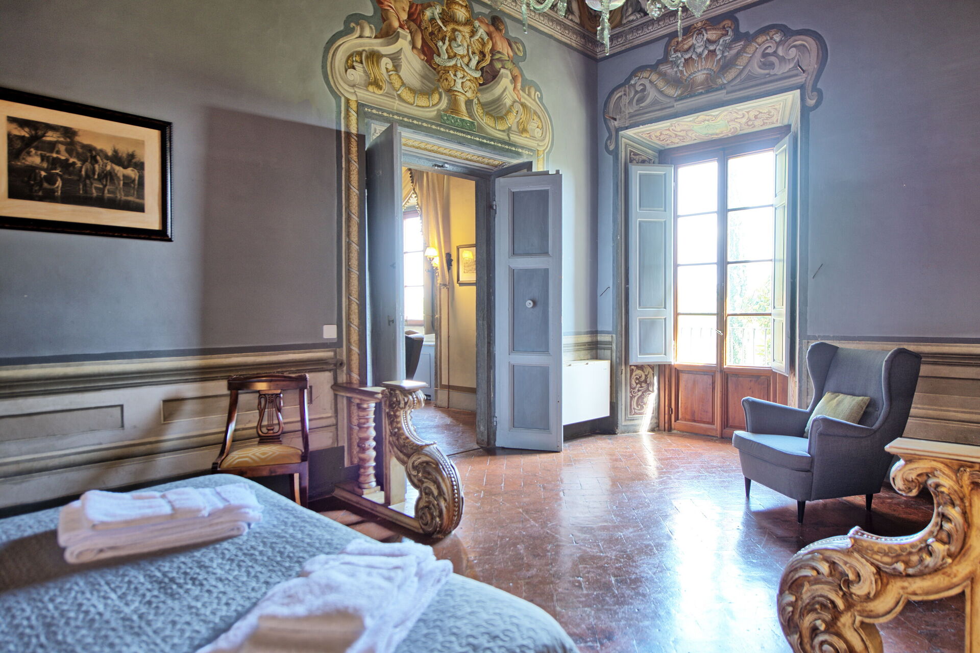 Appartement in het adellijke gedeelte van het kasteel met grote ramen met uitzicht over de tuin.