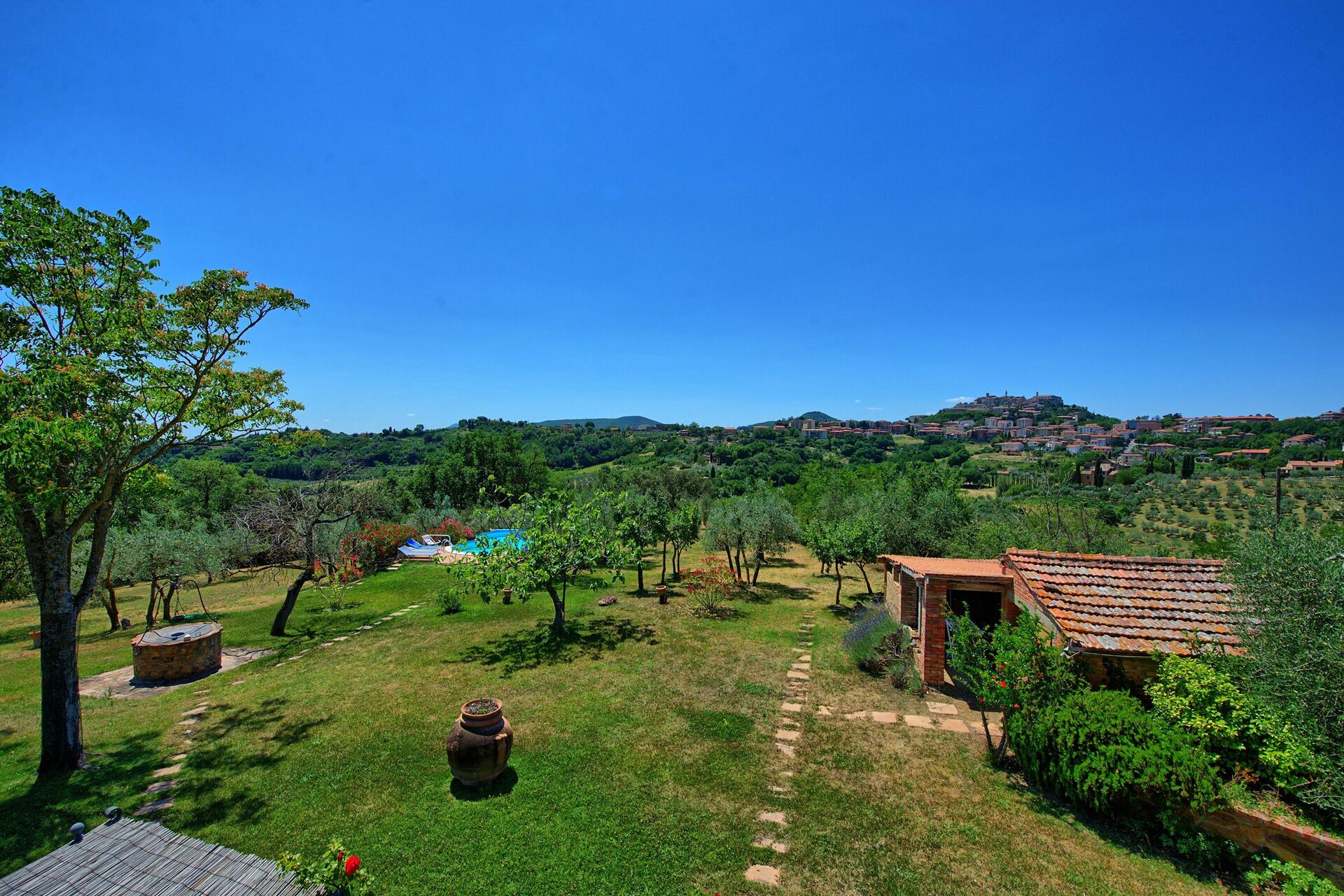 Eines unserer bisher schönsten Ferienhäuser. Wunderschönes Haus, großzügiges Grundstück mit spektakulärem Blick auf Montepulciano, schöner Pool.