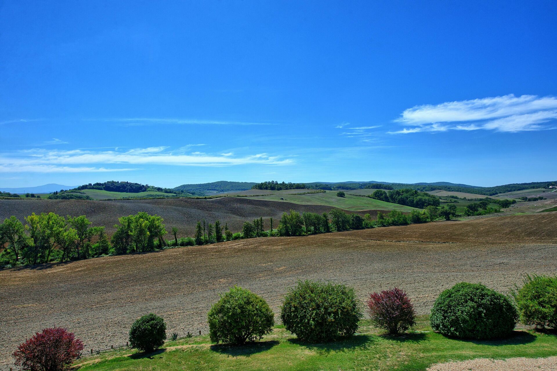 Neben vielem anderen der Blick ueber die Felder nach Siena.