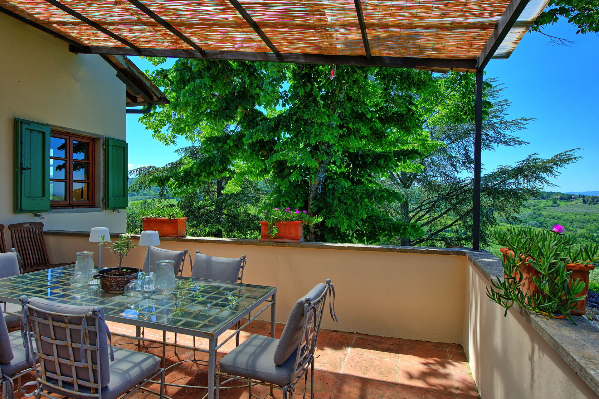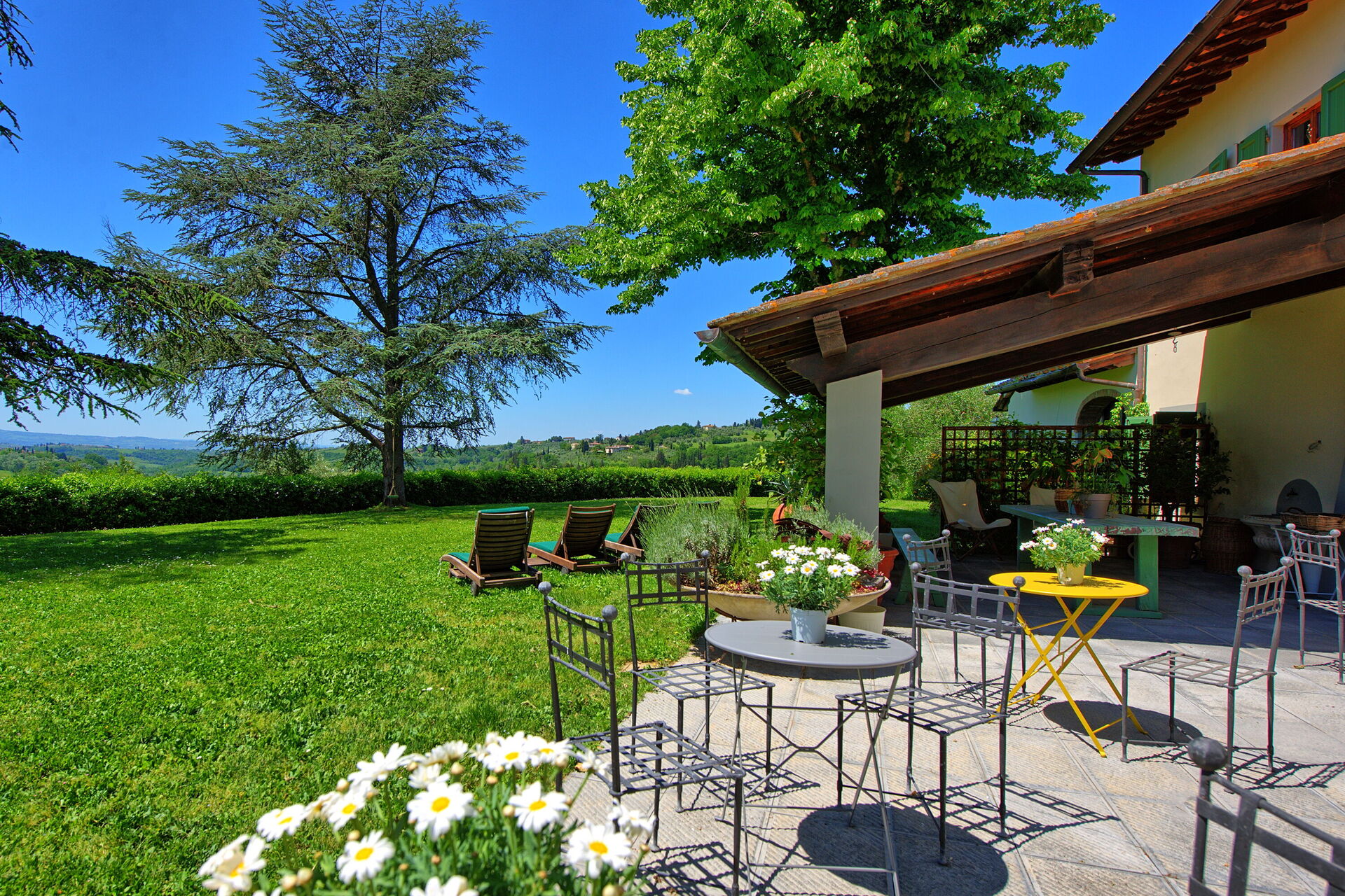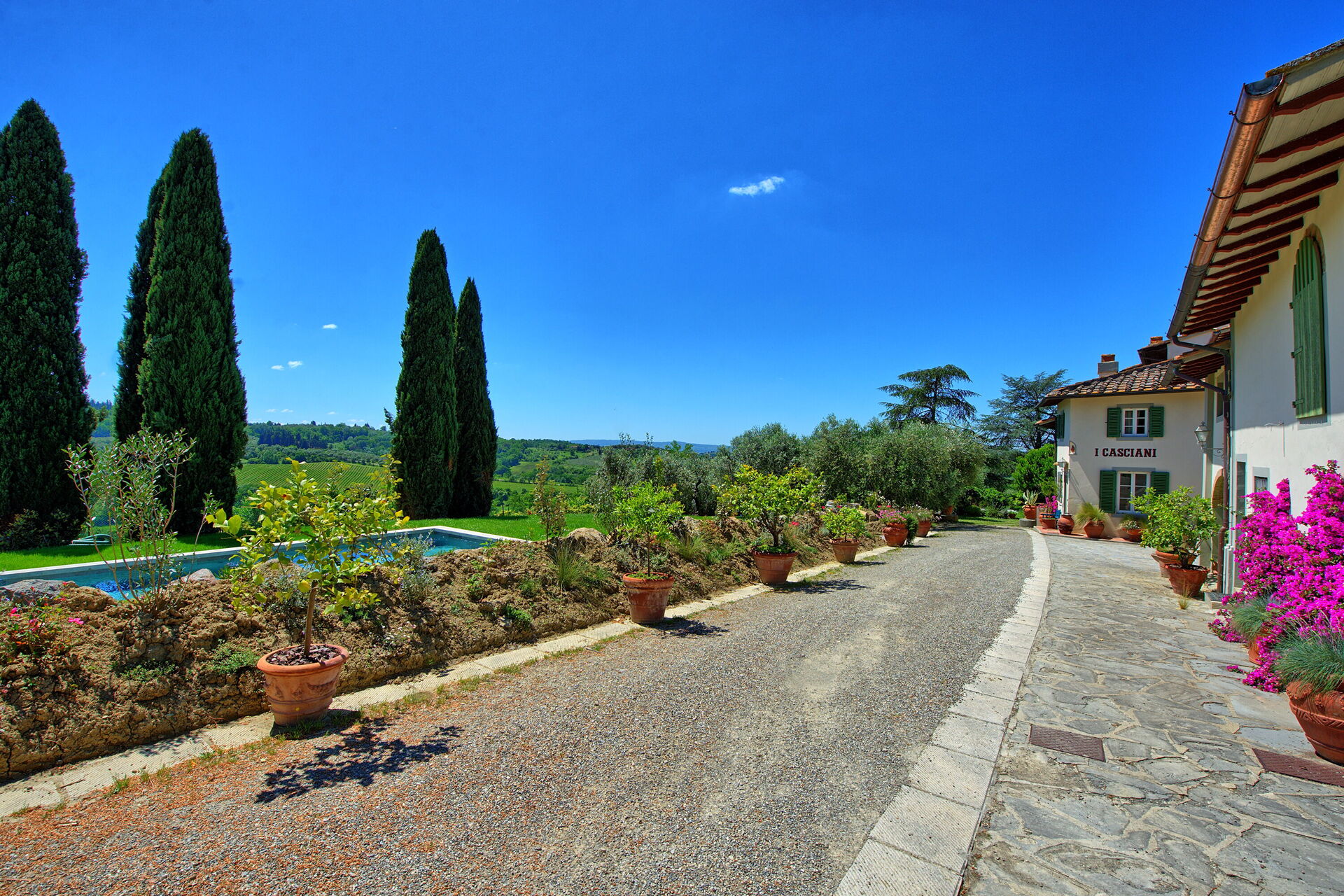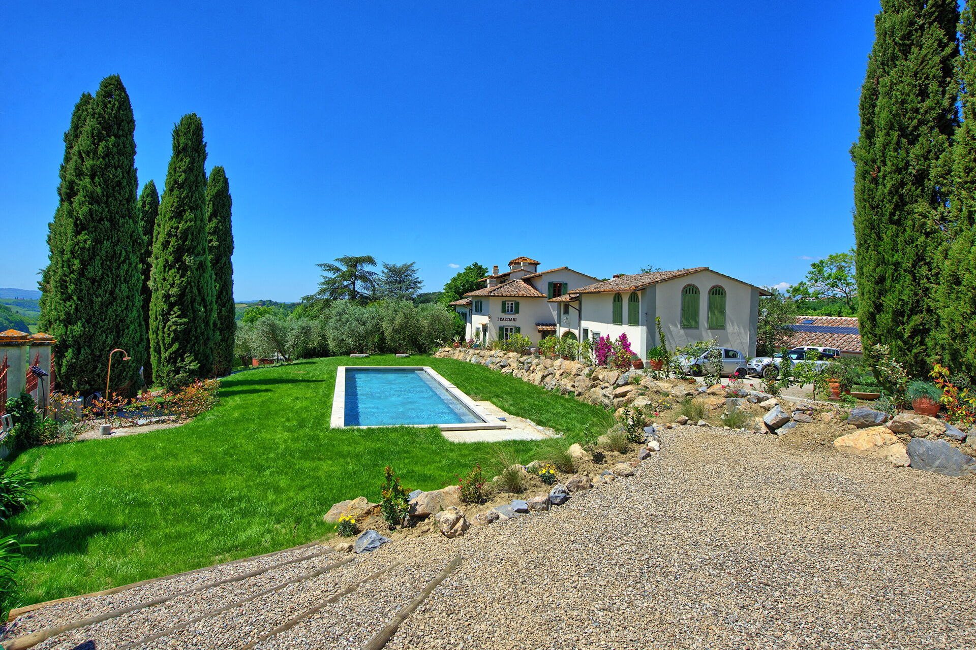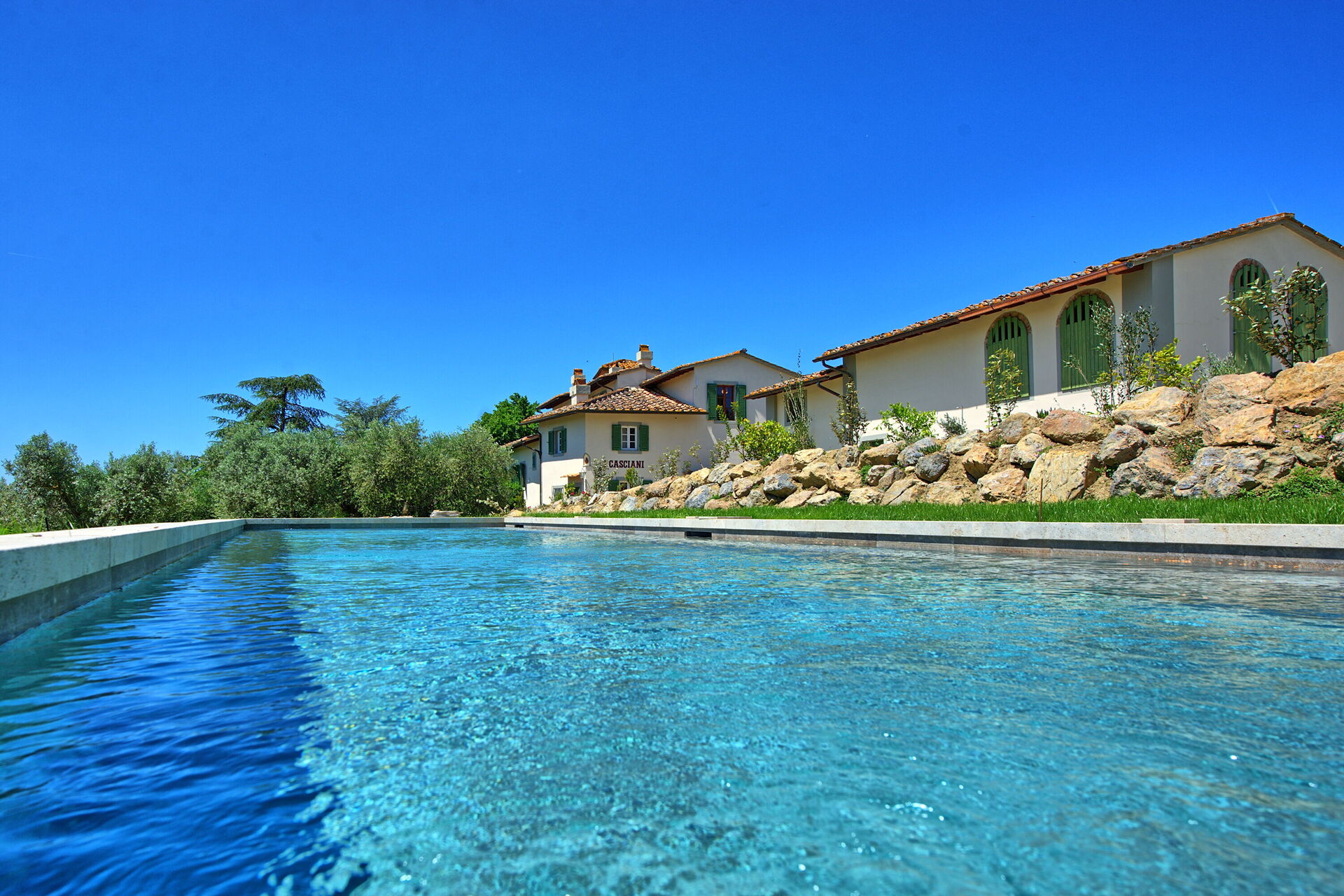 Villa Casciani is a large, independent villa with a private pool and scenic views in the rolling hills near Montespertoli, Tuscany just 35 km from Florence.
