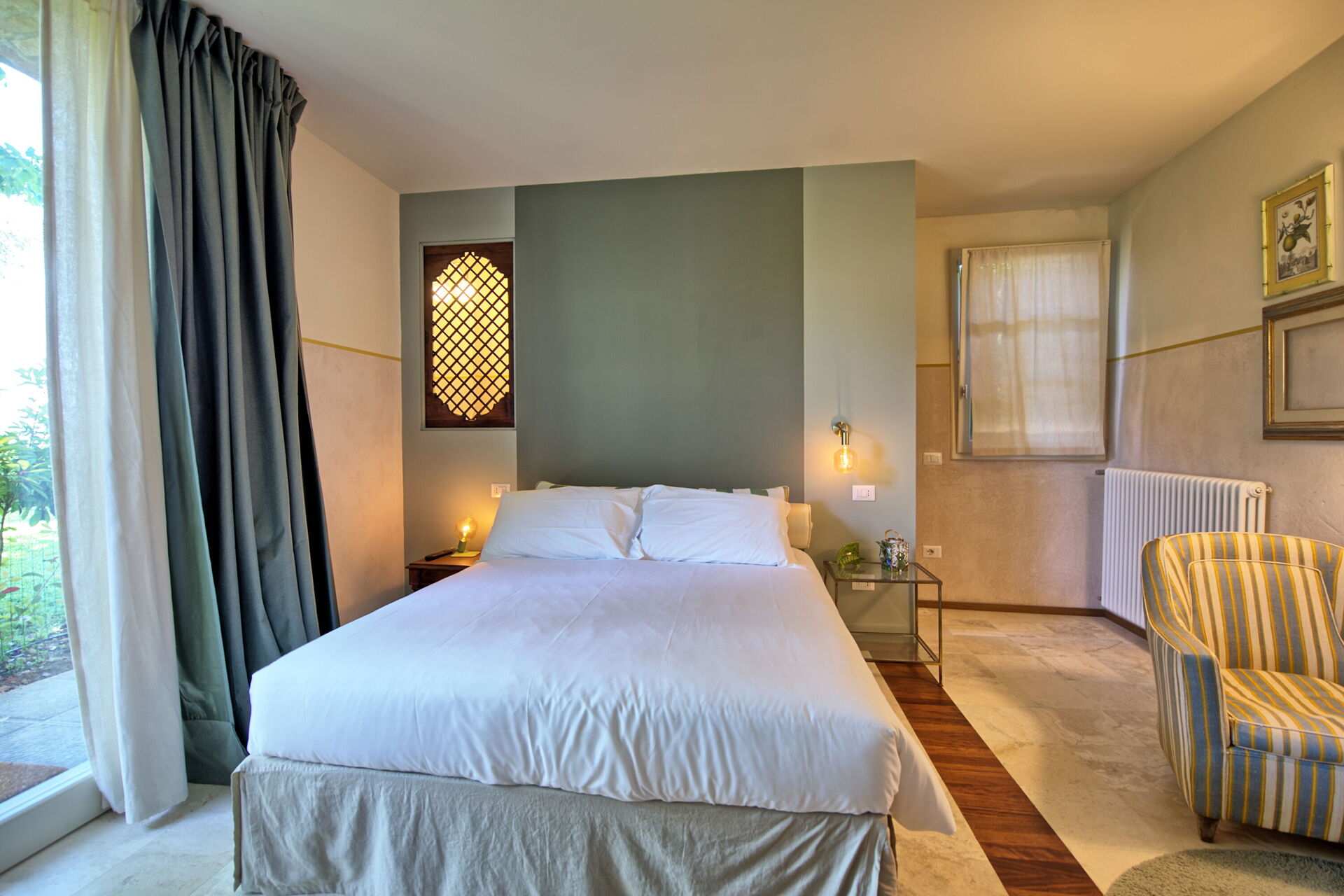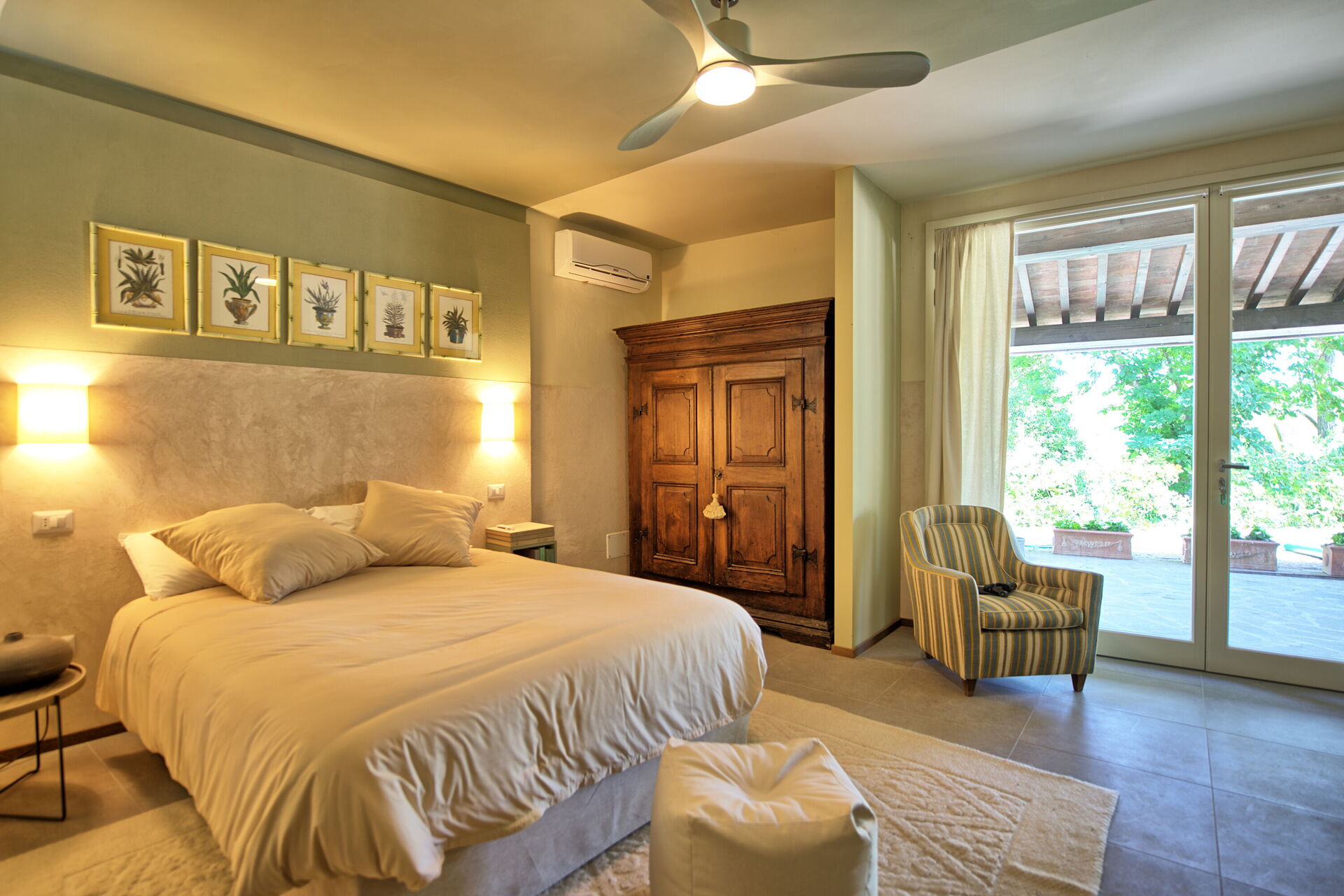 Ground floor (not connected to the rest of the villa on the inside): double bedroom (air conditioning) with private bathroom with shower and private, enclosed outdoor space.