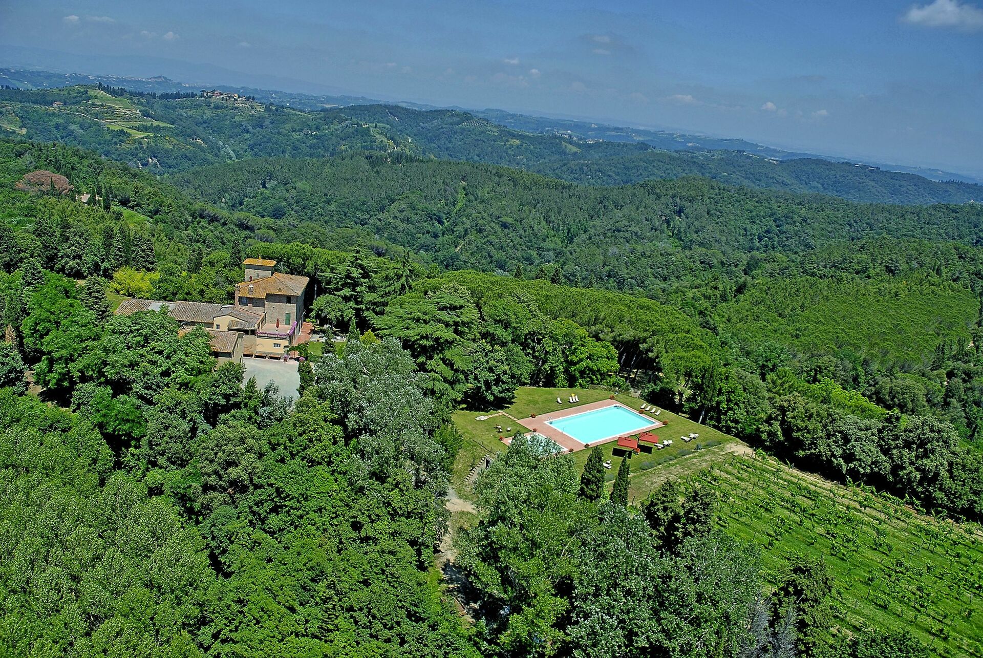 De vakantievilla is een landhuis daterend uit ‘700 en is gelegen op de Toscaanse heuvels, op een groot landgoed met prachtige bossen, olijfgaarden en wijngaarden die uitstekende wijn en olijven produceren. Het is een prachtige woning die de gasten alle lokale schoonheden biedt: een ongerept landschap, de natuurlijke hulpbronnen en de gastronomische specialiteiten.